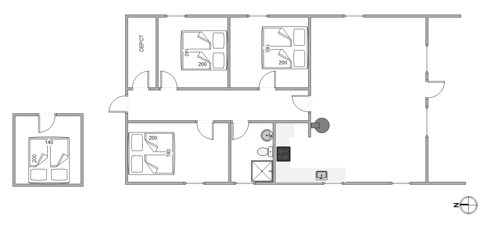 Insgesamt 3 Schlafzimmer bieten euch jeweils ein Doppelbett als Rückzugsort für die Nacht. 2 zusätzliche Schlafplätze stehen im Nebengebäude zur Verfügung, was besonders flexibel für Familien oder eine kleine Freundesgruppe ist.