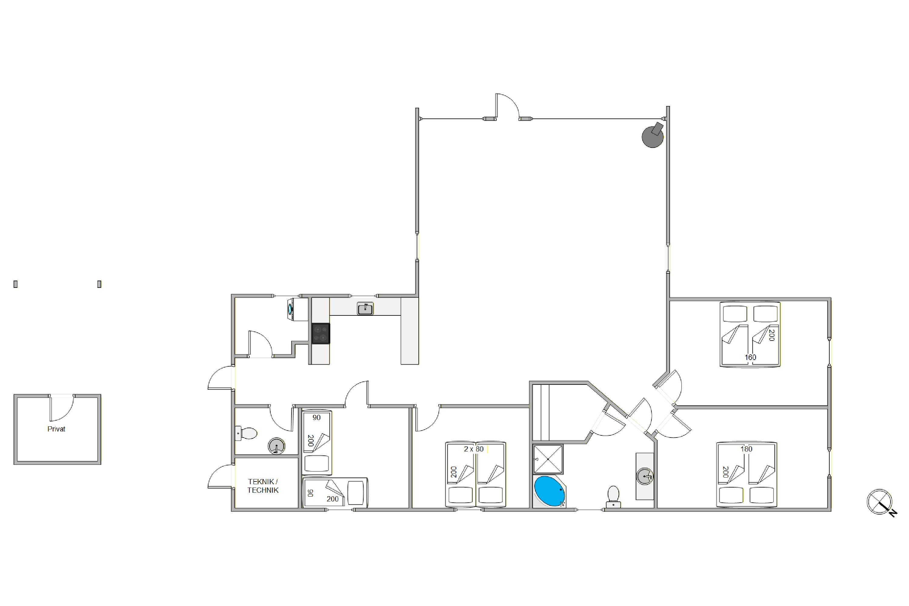 Mit einer Wohnfläche von 104 qm auf einer Ebene bietet das Ferienhaus viel Platz für gemeinsame hyggelige Momente und schöne Erlebnisse – ganz gleich, ob ihr als Familie oder mit Freunden anreist. Für die Extraportion Entspannung sorgen Whirlpool und Sauna, in denen ihr den Alltagsstress hinter euch lassen könnt.