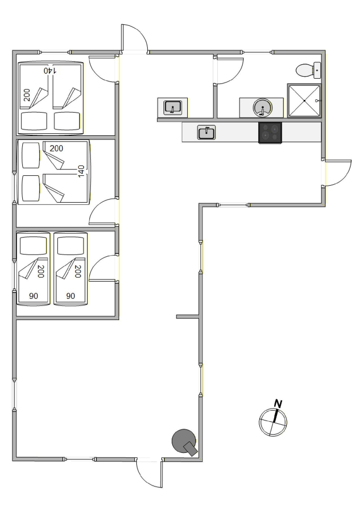 Das Wohnzimmer geht offen in die gut ausgestattete Küche über, die mit modernen Annehmlichkeiten wie einer Spülmaschine und Mikrowelle ausgestattet ist. Eine energiesparende Wärmepumpe im Wohnzimmer sorgt zudem für ein angenehmes Raumklima. Hier könnt ihr gemeinsam kochen und euch auf spannende Tage voller Abenteuer und unvergesslicher Erlebnisse vorbereiten. Das Ferienhaus verfügt über 3 Schlafzimmer - 2 mit Doppelbetten und 1 mit 2 Einzelbetten.