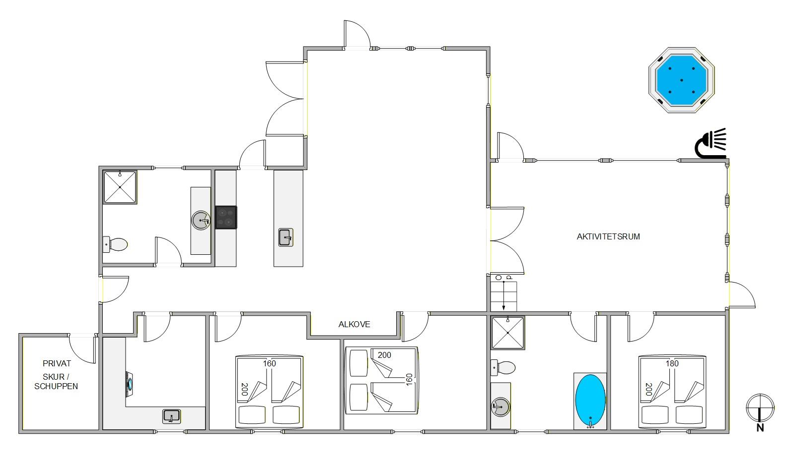 In ruhiger Lage, mitten im schönen Ferienhausgebiet von Houstrup erwartet euch im Jeppesvej 112 dieses in 2022 fertiggestellte Ferienhaus mit Aktivitätsraum, Außenwhirlpool, Außendusche und einem Ladeanschluss für Elektroautos. Die tolle Lage und komfortable Ausstattung sprechen bei diesem Ferienhaus für sich und die Entscheidung, die schönsten Tage des Jahres hier zu verbringen, fällt nicht schwer.