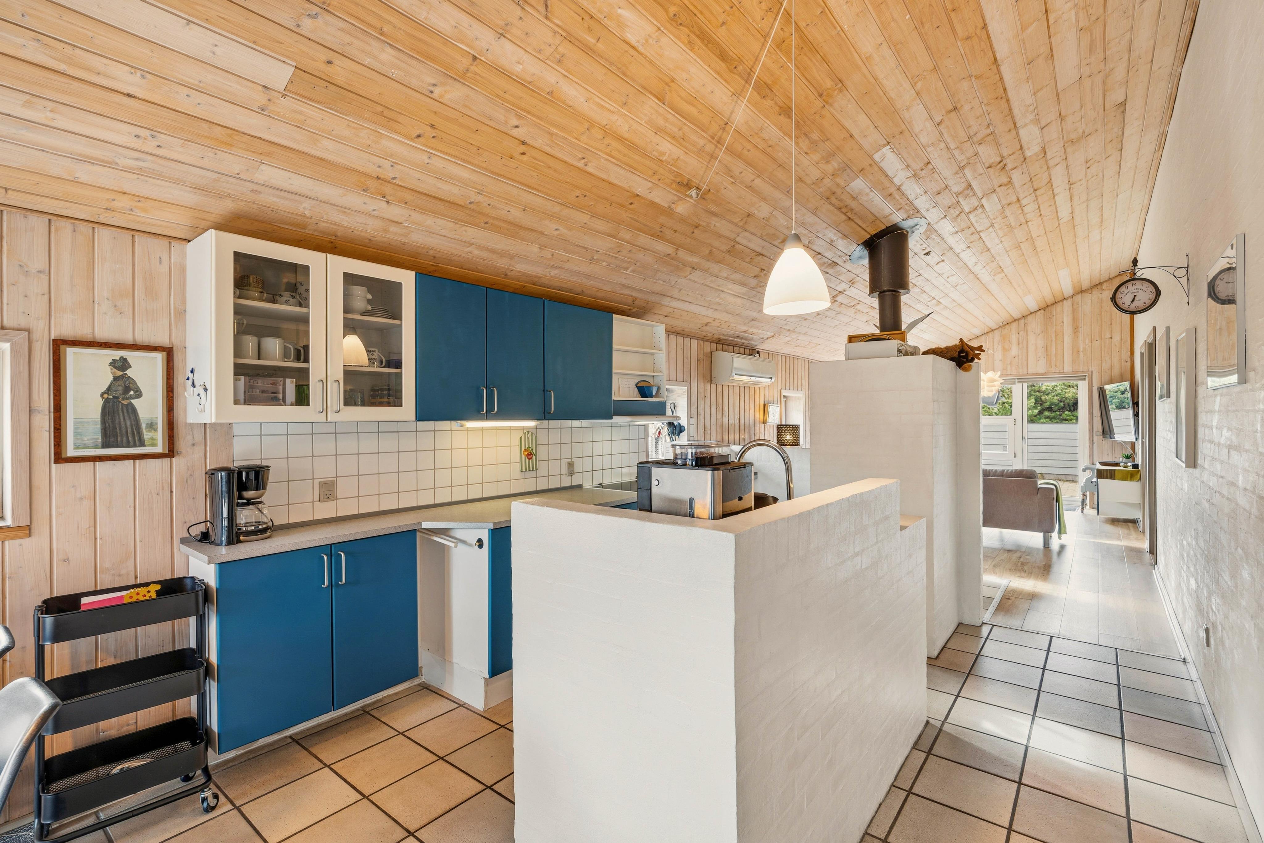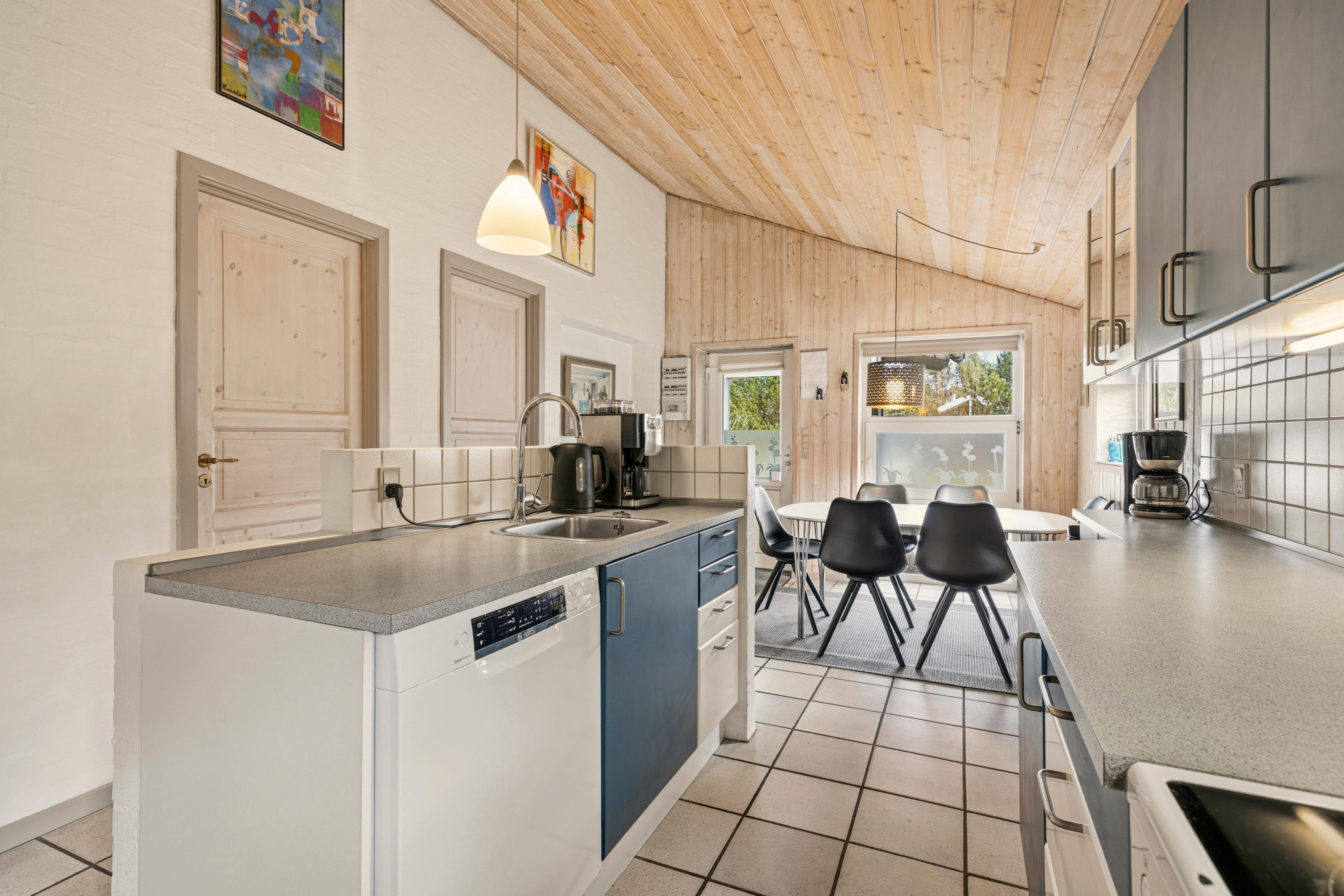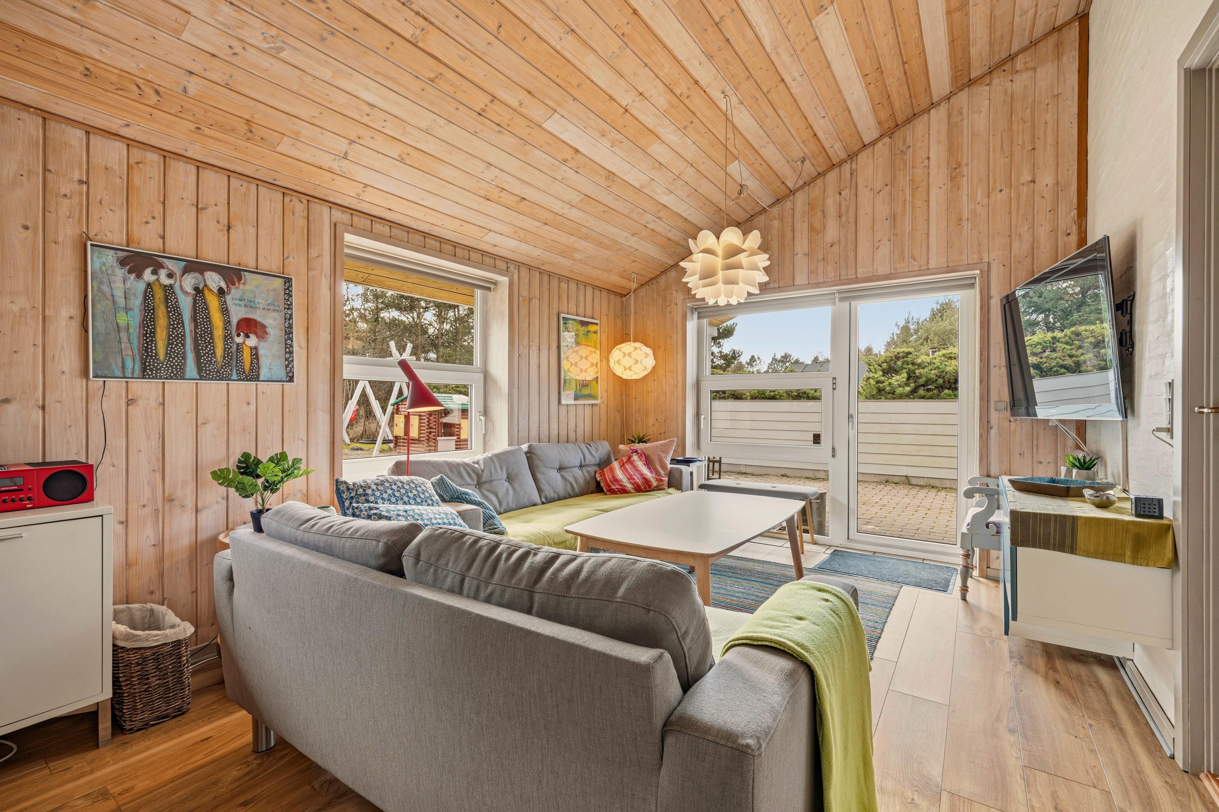 Bereits beim Betreten bemerkt man die Wärme, die dieses Ferienhaus ausstrahlt. Die geschmackvolle Einrichtung wurde gut mit den hellen Holztönen der Decken und Wände kombiniert, so dass eine Wohlfühlatmosphäre entsteht. Im Wohnraum gibt es einen Kaminofen der zusätzlich für Gemütlichkeit sorgt. Kuschelt euch aufs Sofa, schaut eure Lieblings-DVD oder lest ein gutes Buch und lauscht dem Knacken des Kaminholzes. Als alternative Heizmethode steht euch auch eine energiesparende Wärmepumpe zur Verfügung.