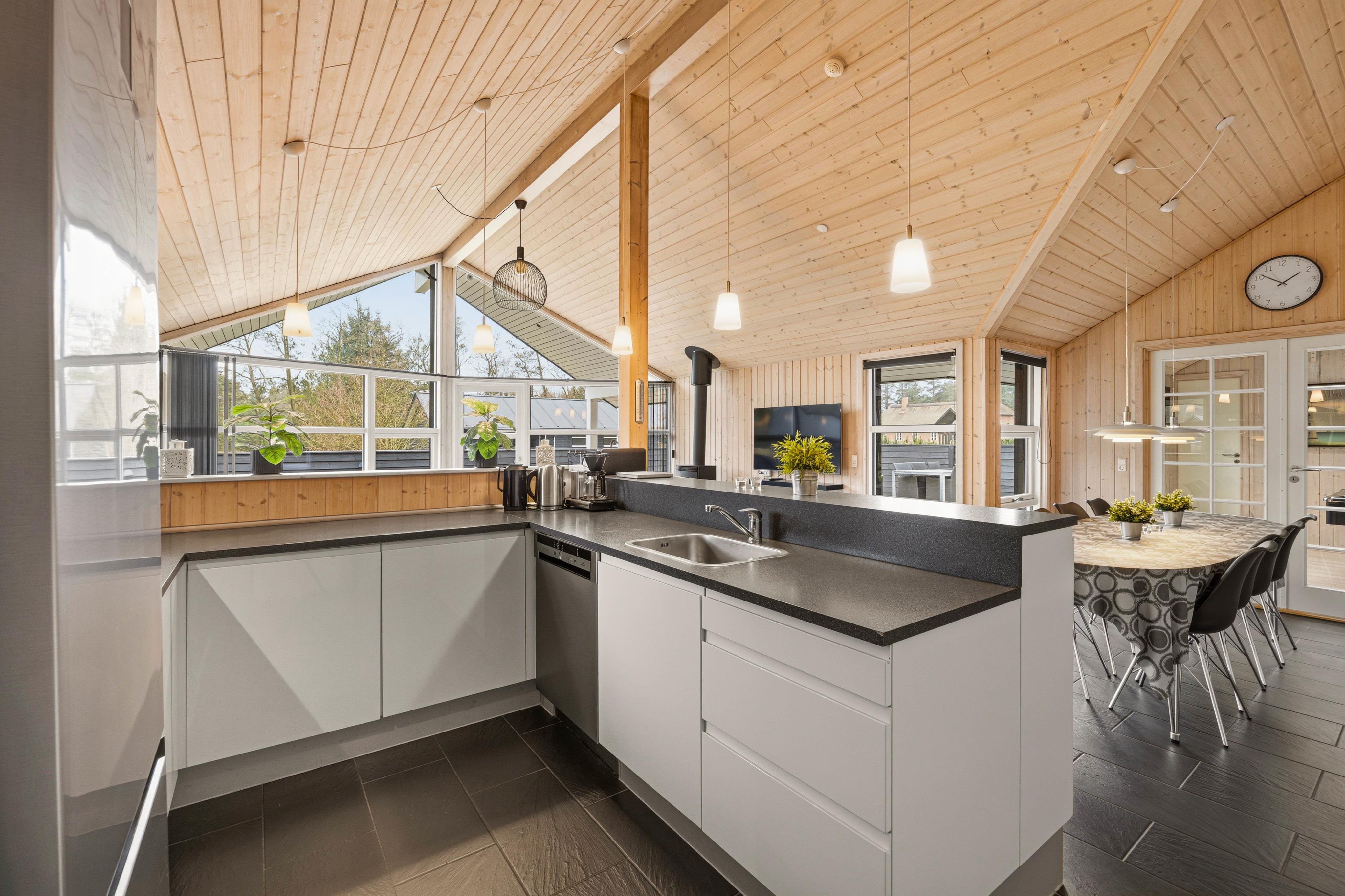 Hier werdet ihr euch wohlfühlen: das in 2012 erbaute Ferienhaus glänzt mit seiner tollen Einrichtung. Im großräumigen Wohnzimmer sorgen die großen Fensterfronten für viel Tageslicht und das Innere des Hauses erscheint in hellen Farben. Sollten die Tage kürzer und kühler werden, sorgt der Kamin das ganze Jahr über für Wärme und komfortable Stimmung.