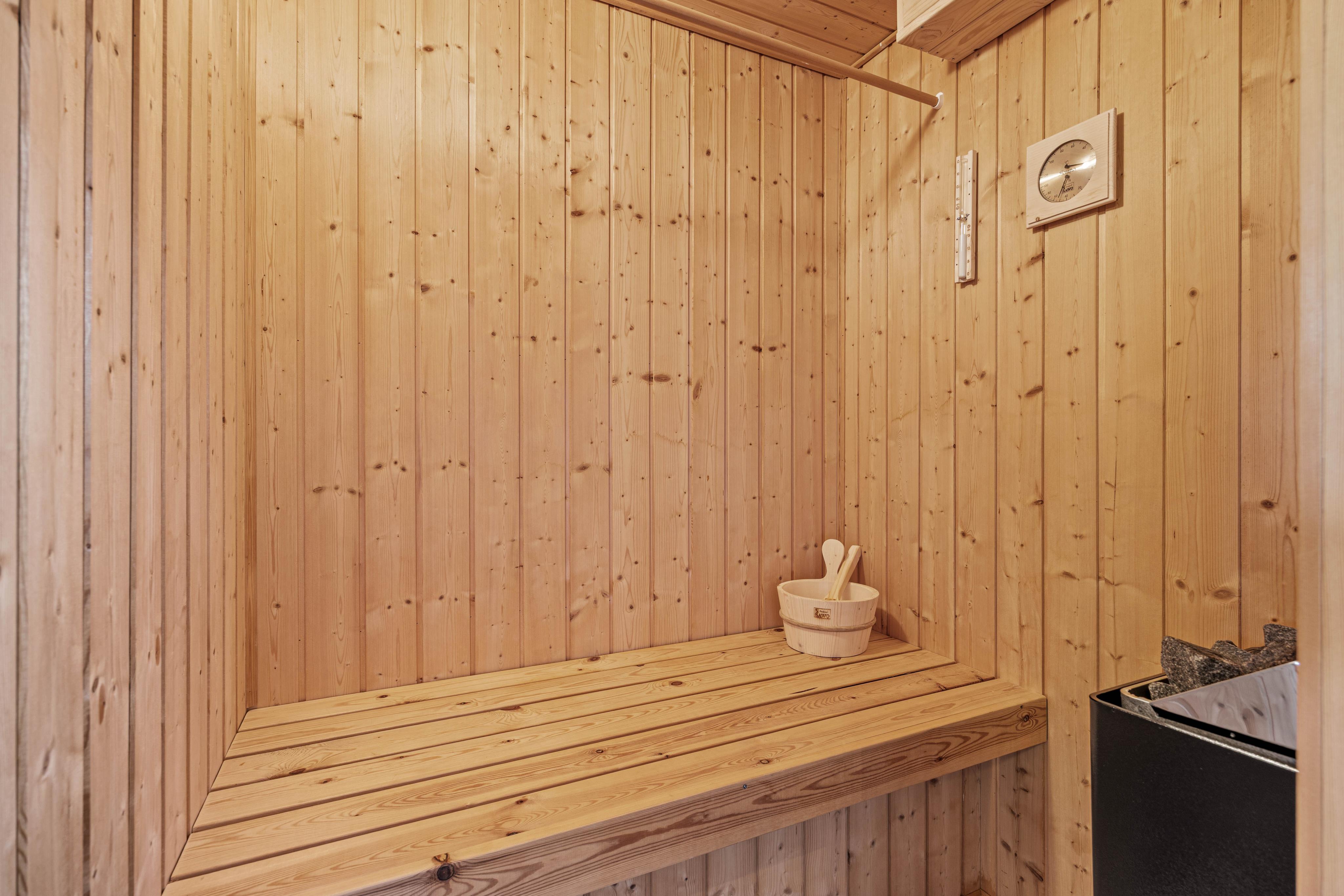 Im Ferienhaus könnt ihr entspannte Momente im Whirlpool genießen und anschließend in der Sauna relaxen. Das gut ausgestattete Badezimmer verfügt über Fußbodenheizung, die besonders an kühleren Tagen zusätzlichen Komfort bietet. Zusätzlich gibt es ein Gäste-WC, was das Ferienhaus ideal für den Empfang von Besuch macht.