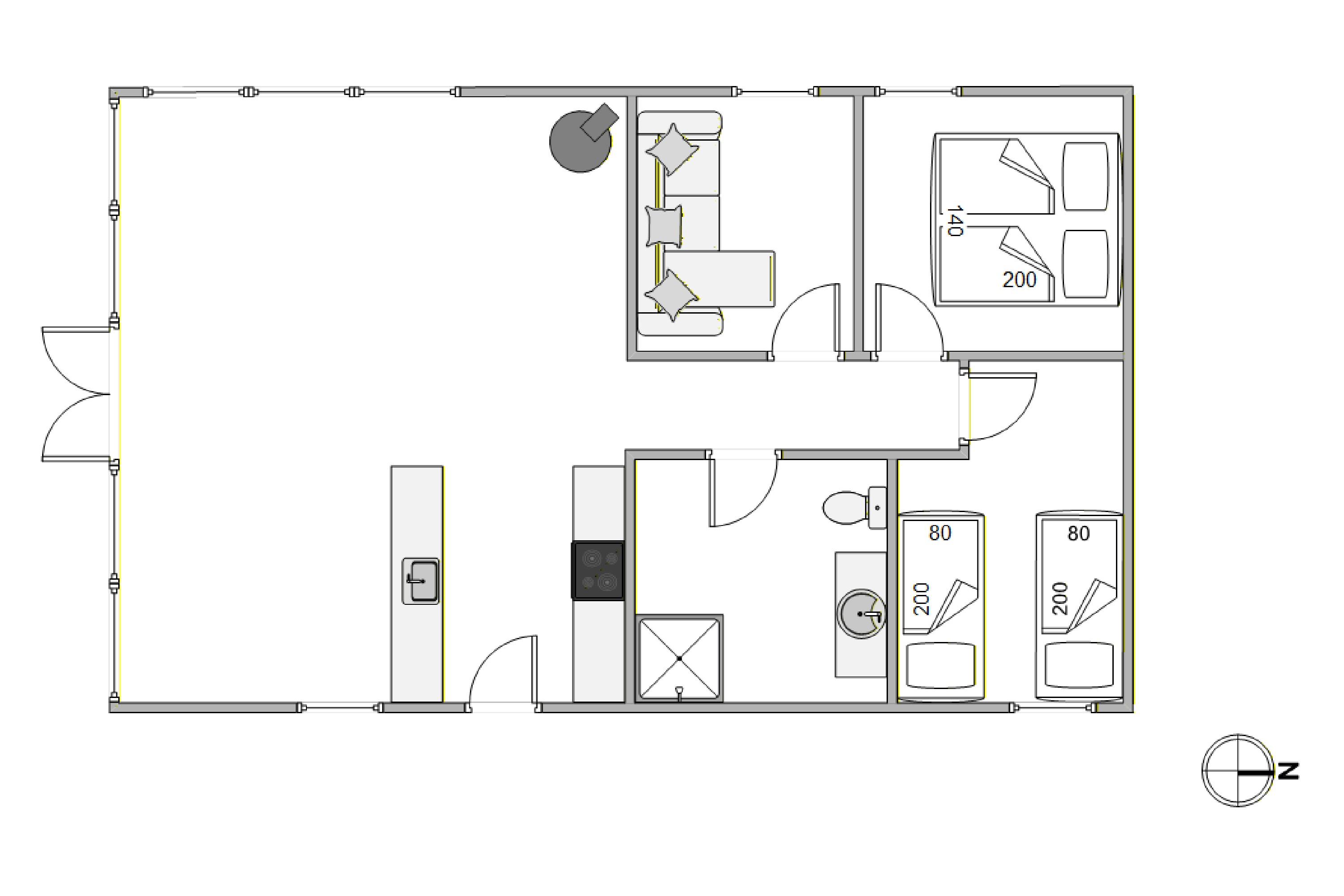 Das kleine Tageslichtbad ist mit Dusche und Fußbodenheizung ausgestattet. Dieses gepflegte Ferienhaus verfügt über 1 Schlafzimmer mit Doppelbett, 1 Sclafzimmer mit Schlafsofa und 1 Schlafzimmer mit 2 Einzelbetten, sodass ihr euch gut aufteilen könnt.