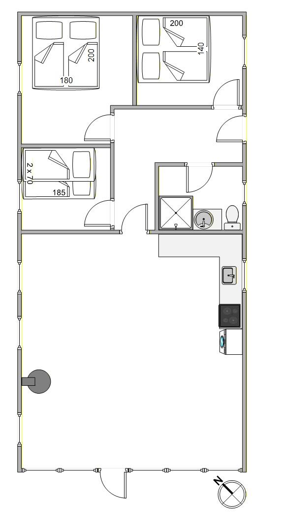 Das kleine Tageslichtbad des Ferienhauses verfügt über eine Dusche und Fußbodenheizung, sodass ihr besonders morgens angenehm warm in den Tag startet. Für erholsamen Schlaf stehen euch 2 Schlafzimmer mit Doppelbett sowie 1 Schlafzimmer mit Hochbett zur Verfügung – eine Aufteilung, die euch Rückzug und gemeinsame Ferien gleichermaßen ermöglicht.