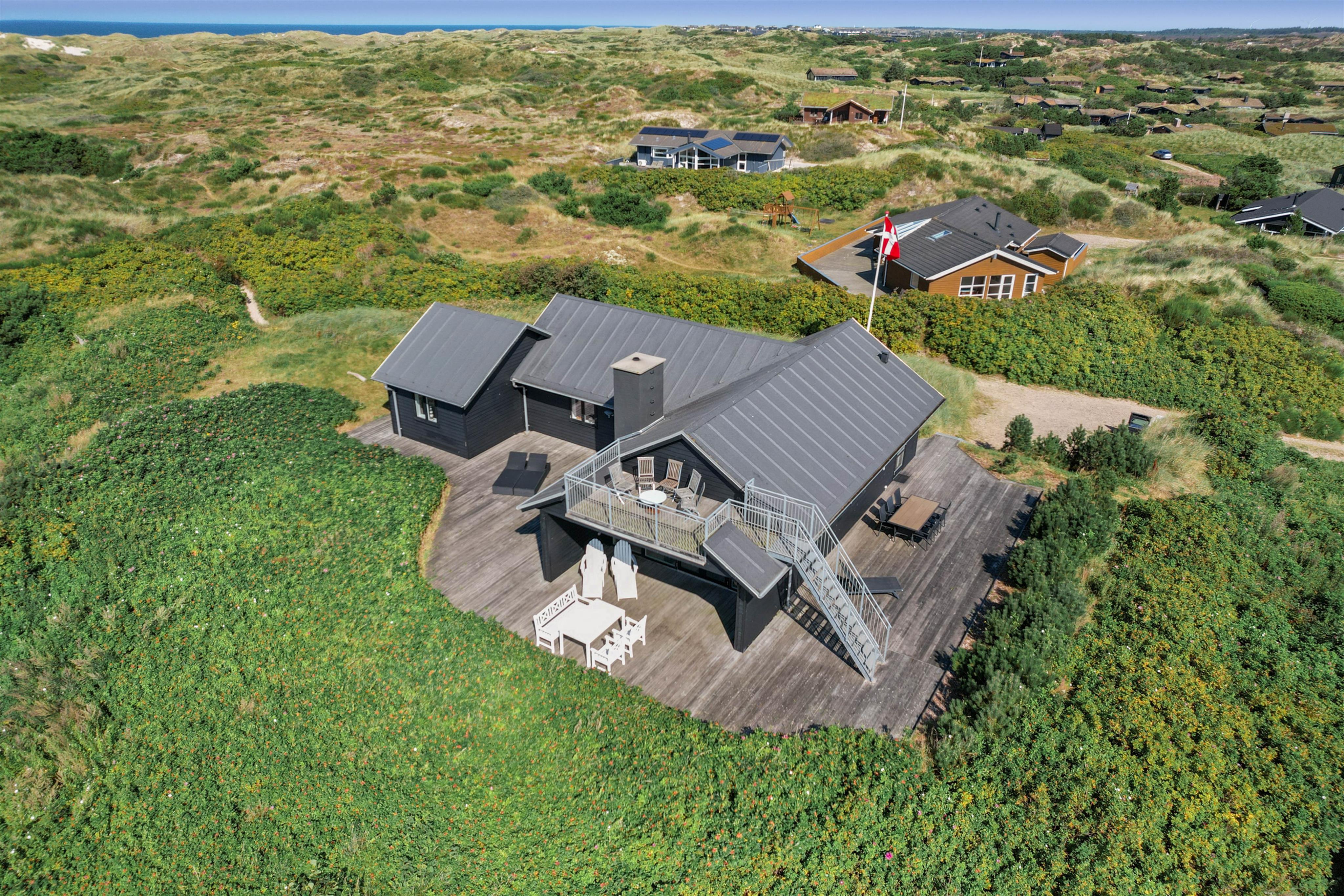 Das Ferienhaus in Henne Strand ist eingebettet in ein beeindruckendes 2060 Quadratmeter großes Dünengrundstück. Auf der abgeschirmten Terrasse könnt Ihr die Ruhe und den Panoramablick ungestört genießen. Zudem laden Gartenmöbel auf der offenen und überdachten Terrasse zum Verweilen und Entspannen ein.