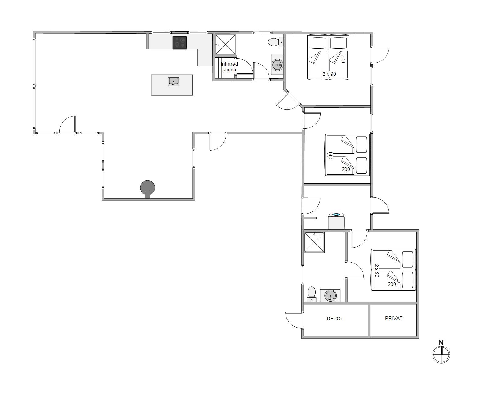 Das Ferienhaus bietet insgesamt 2 Badezimmer, von denen eines mit einer Infrarotsauna und Fußbodenheizung ausgestattet ist – ideal für eine entspannende Auszeit.