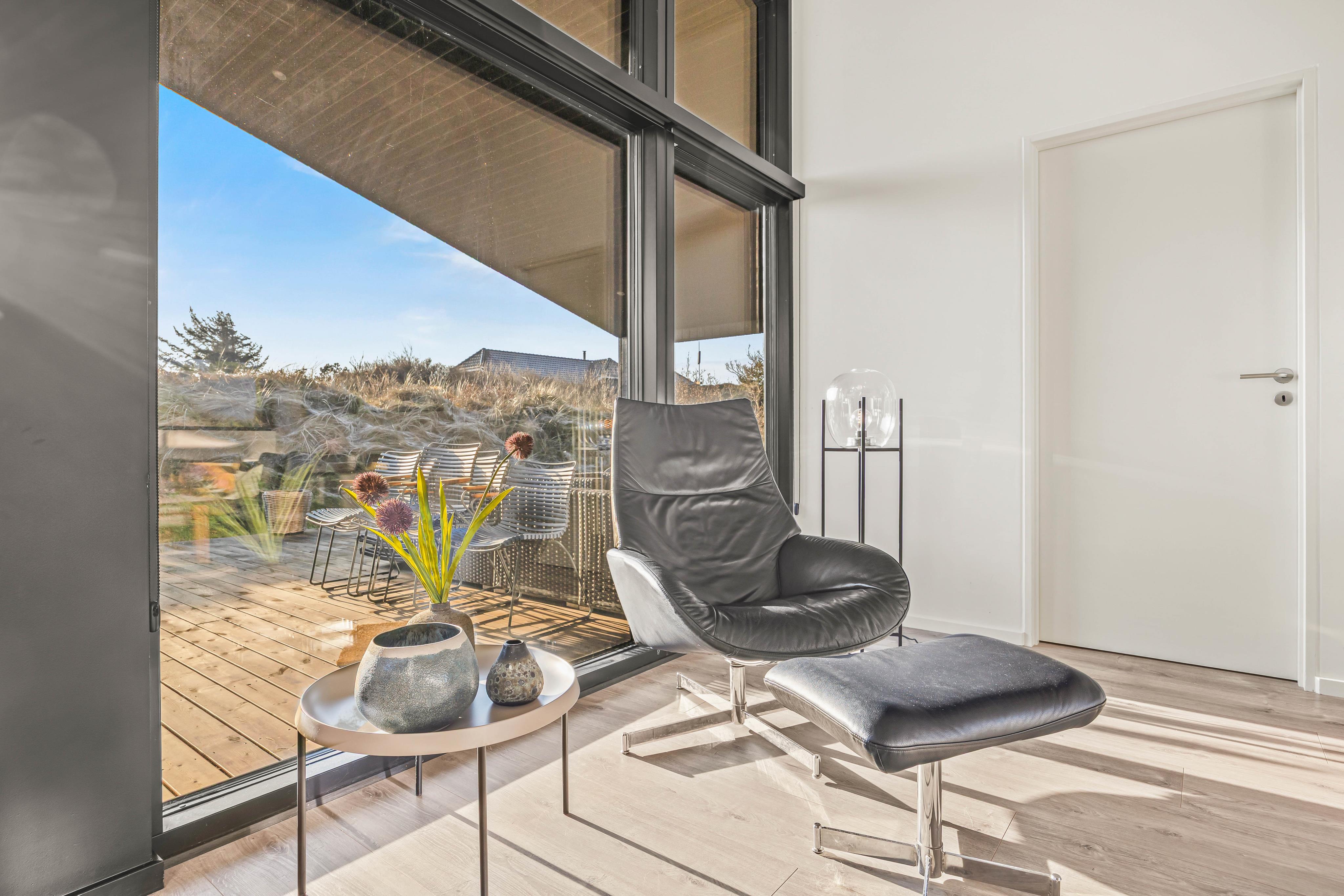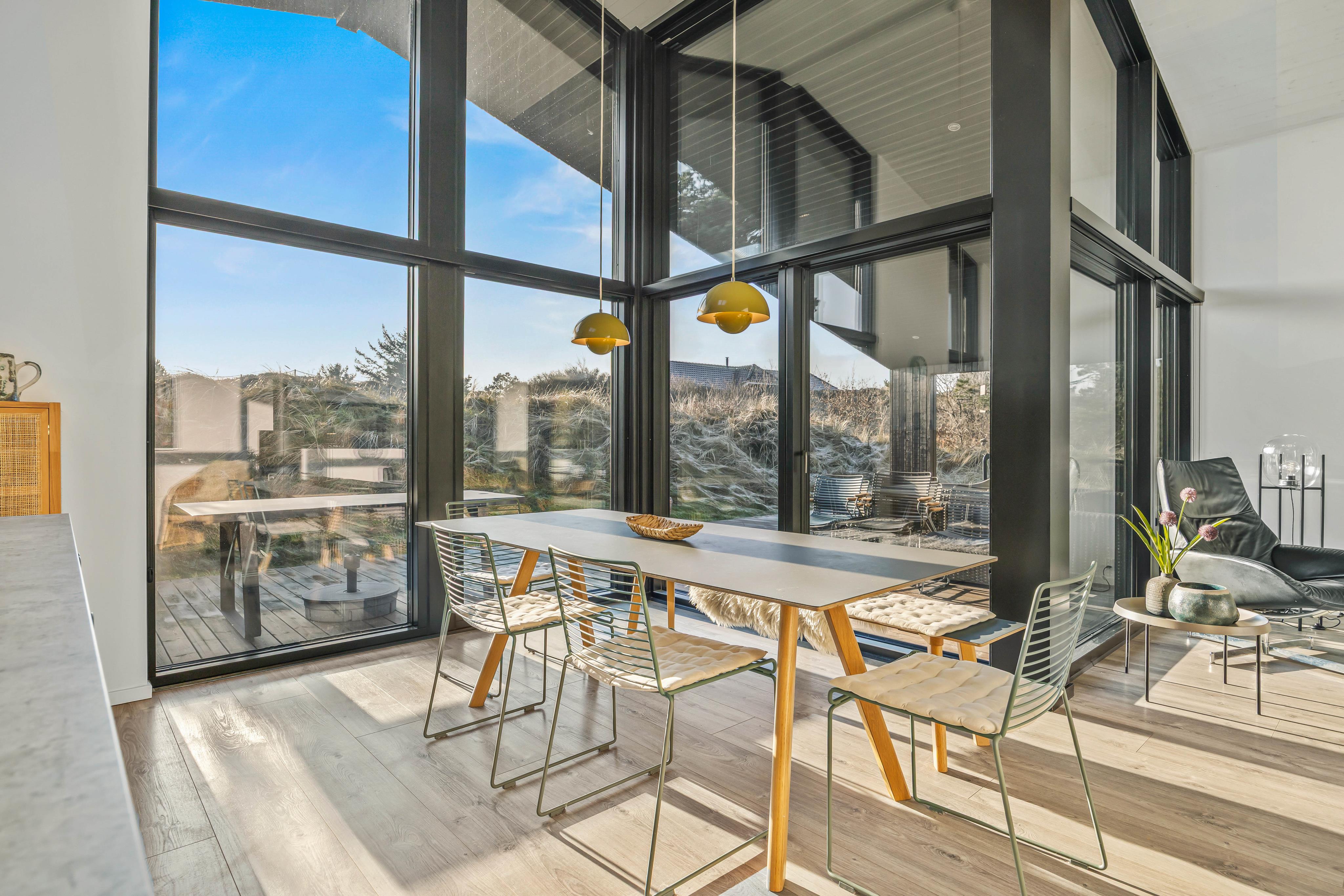 Ein super modernes Ferienhaus. Das Haus liegt sehr ruhig eingekuschelt in den Dünen. Durch die großen Fenster hat man das Gefühl in der Natur zu sein. Durch die tolle Raumaufteilung kann man auch mit mehreren ganz entspannt Urlaub machen. Nach einem langen Spaziergang am Strand kann man sich wunderbar in der Sauna sowie im Whirlpool entspannen. Die Küche ist gut ausgestattet.