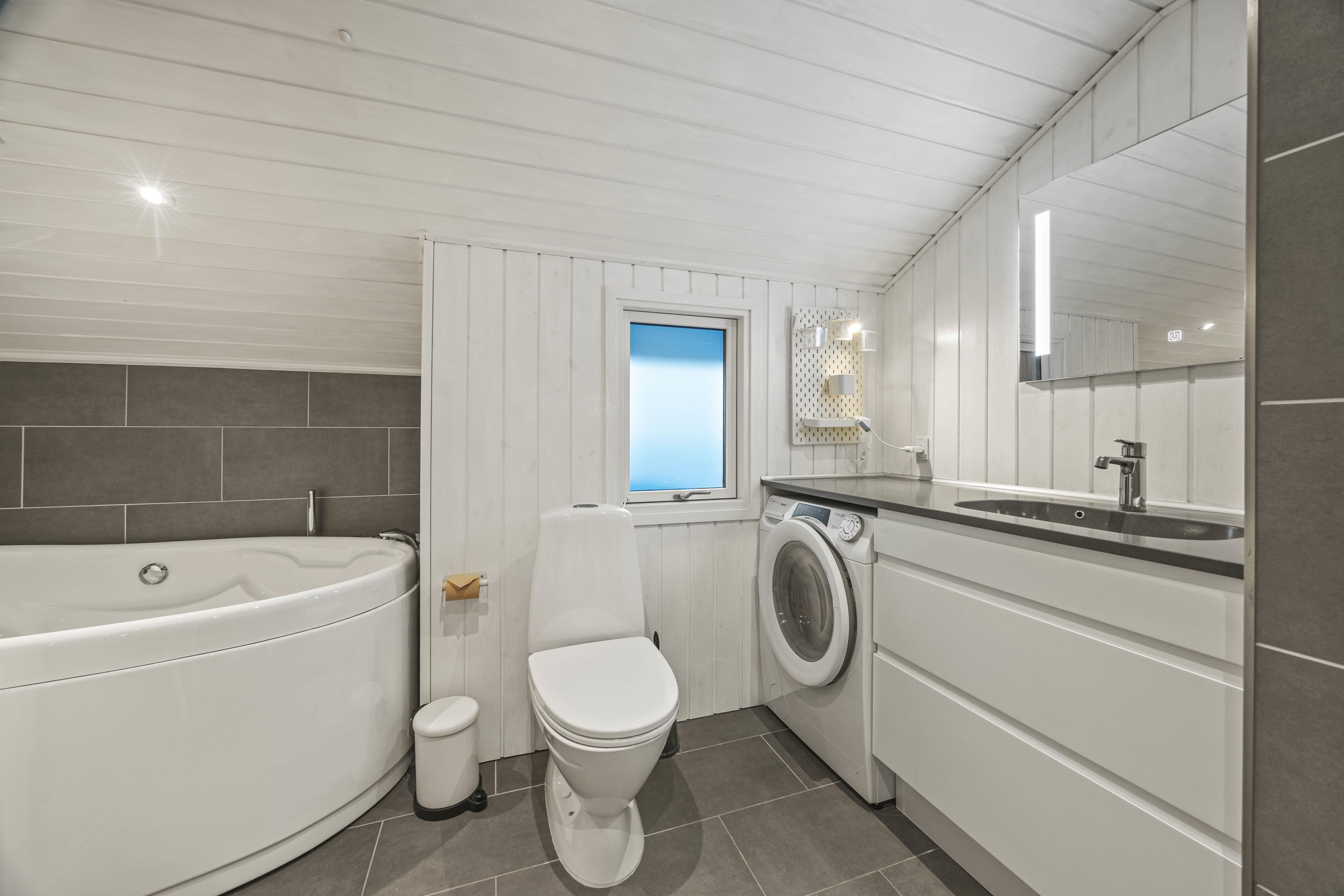 Die gut ausgestattete und moderne Küche lädt zum Experimentieren von neuen Gerichten ein. Vielleicht habt ihr ja selbst Lust, frischen Fisch zu fangen oder aber ihr kauft regional gefangenen Fisch direkt im Ort. Das Wohnzimmer ist mit der offenen, integrierten Küche sowie dem Essbereich der größte Raum, wo sich alle versammeln und gemeinsam kochen oder auch einfach nur entspannen können. Hier könnt Ihr die Wärme des Kamins geniessen. Neben der Kamin, wird eine Wärmepumpe für ein komfortablen Temperatur im Sommerhaus sorgen.