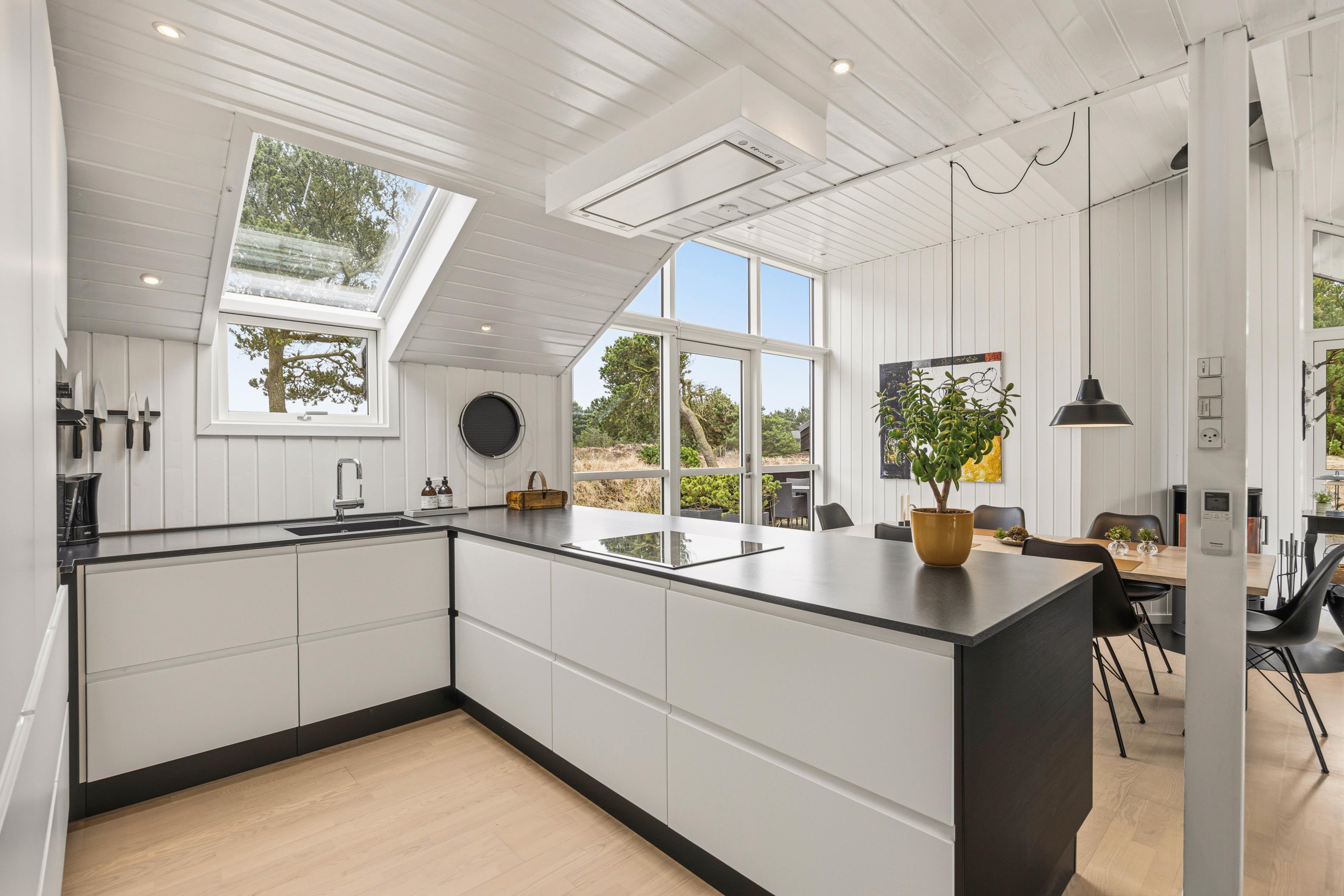 Das Ferienhaus in Henne Strand mit wunderschöner und ruhiger Lage auf Fyrrenålevej 1, bietet einen schönen Blick auf ein riesiges Heidegebiet auf der gegenüberliegenden Straßenseite, was gerade im Spätsommer ein Traum in Rosa und Lila ist. Direkt vom Frühstückstisch könnt ihr diesen fantastischen Ausblick genießen, während ihr die Aktivitäten des Tages plant.