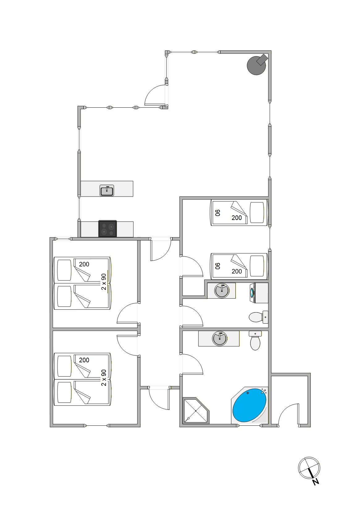 In der malerischen Umgebung nahe der Blåbjergplantage erwartet euch dieses gepflegte, typisch dänisch hyggelige Ferienhaus in Henne Strand, eingebettet in ein tolles Grundstück im Høgevej 11. Der Wohnbereich von insgesamt 97 m² bietet ausreichend Platz für bis zu 6 Personen und ist mit gemütlichen sowie komfortablen Annehmlichkeiten ausgestattet. Mit 3 Schlafzimmern, die alle über ein Doppelbett (180x200) verfügen, steht einem erholsamen Schlaf nichts im Wege. Der Kaminofen im Wohnbereich, eine effiziente Wärmepumpe sowie Fußbodenheizung im in 2026 renovierten Badezimmer sorgen dafür, dass ihr das ganze Jahr über angenehm temperierte Räume genießen könnt. Besonders hervorzuheben ist das Badezimmer, das mit einem entspannenden Whirlpool ausgestattet ist, sowie die zusätzliche Gästetoilette. Eingebettet in einem wunderschön angelegtem Naturgrundstück von 1247 m² und nur 600 Meter vom weichen Sandstrand entfernt, ist dieses Ferienhaus in Henne Strand der perfekte Rückzugsort für Naturliebhaber.