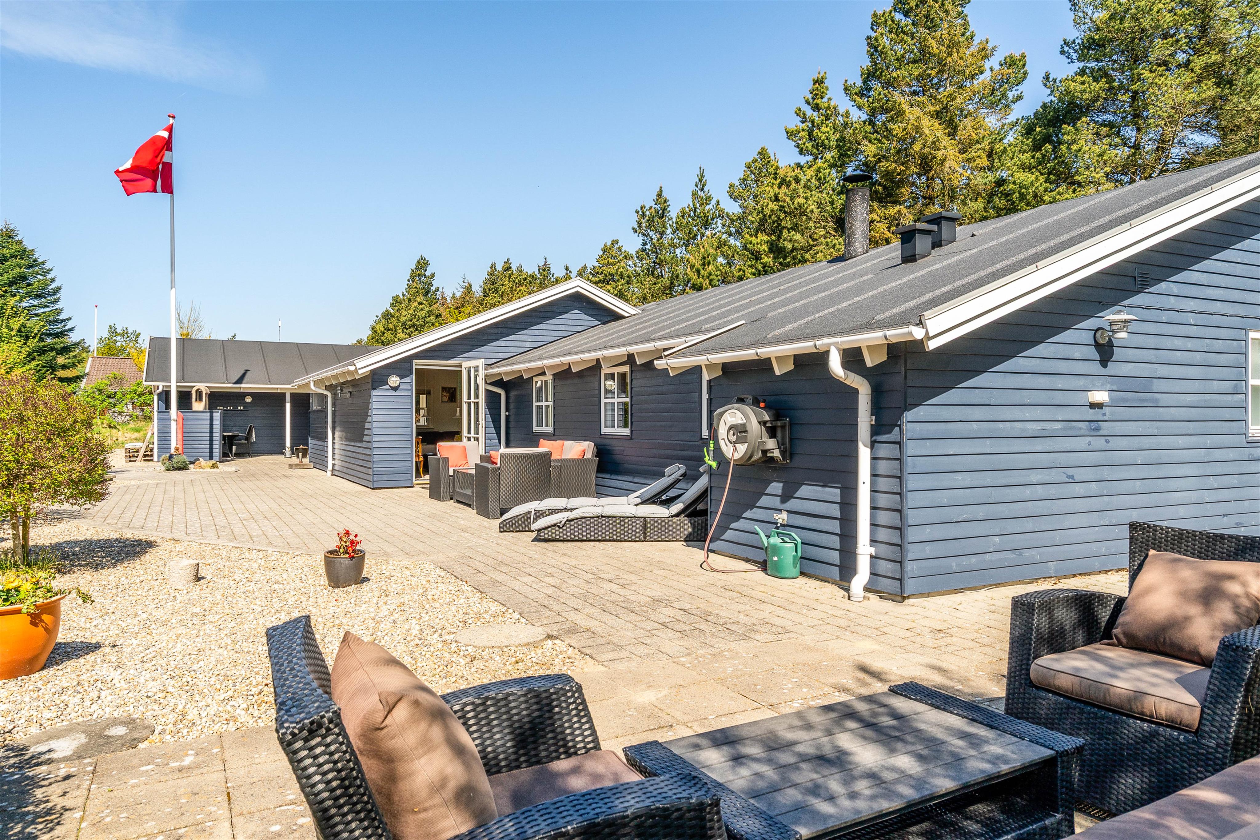 Das Ferienhaus liegt in der beliebten Region Henne Strand, nur 2700 Meter vom Meer entfernt, wo die atemberaubende Nordsee zu entspannten Spaziergängen und Wassersportmöglichkeiten einlädt. Der nächste Supermarkt ist gerade einmal 1800 Meter entfernt, sodass du schnell und bequem deine Einkäufe erledigen kannst.