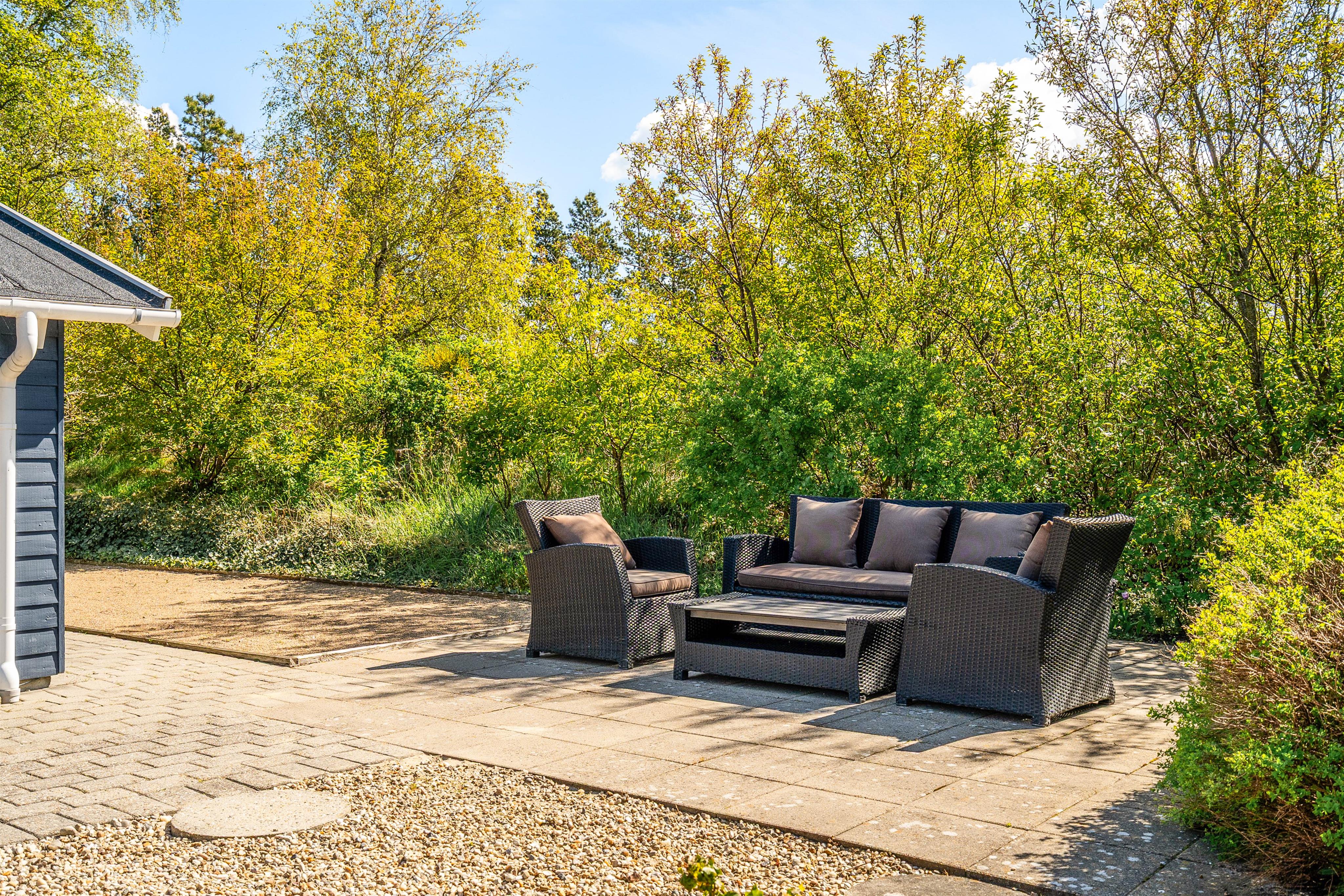 Das Ferienhaus besticht durch ein teils umzäuntes, 1500 qm großes Naturgrundstück, das dir und deinen Vierbeinern viel Raum zur Entfaltung bietet. Entspanne auf den bereitgestellten Gartenmöbeln oder Sonnenliegen und genieße köstliche Mahlzeiten vom Gasgrill.