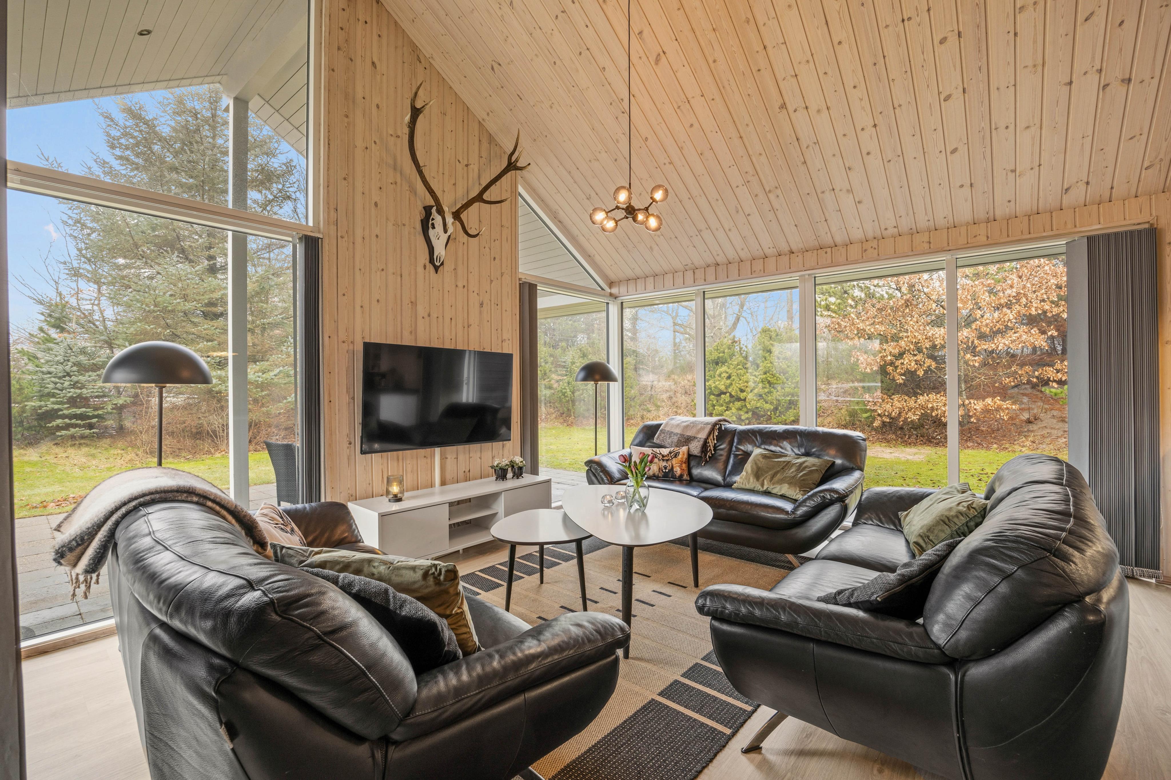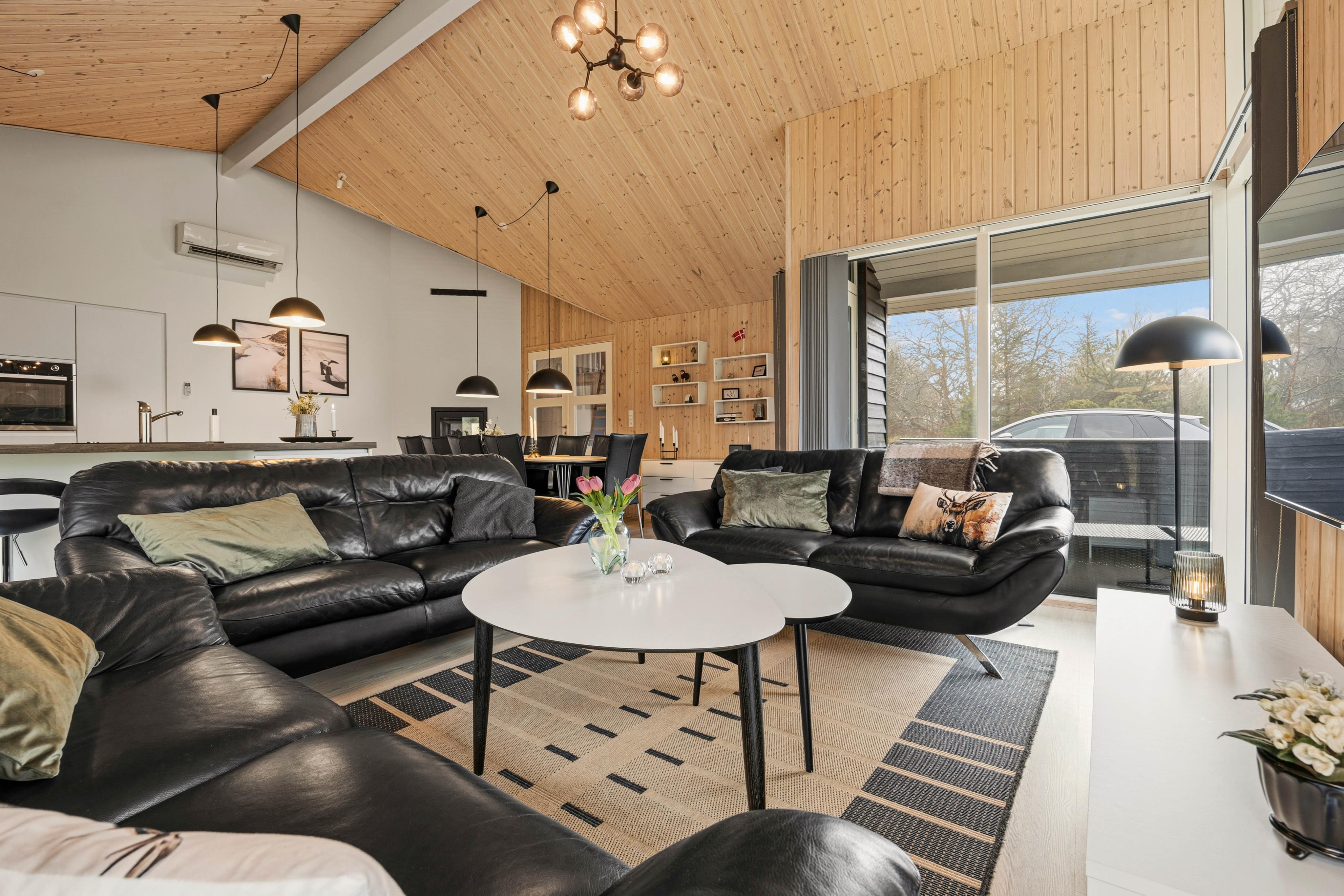 Schönes Ferienhaus mit einer tollen Aufteilung der Räume für zwei Familien. Der Aktivitätsraum bietet eine gute Möglichkeit der Freizeitgestaltung. Der Kamin kann sowohl von dem Essbereich als auch im Aktivitätsraum genutzt werden. Bäder gut; Küche modern; Betten bequem. Das Haus ist in einem guten Zustand