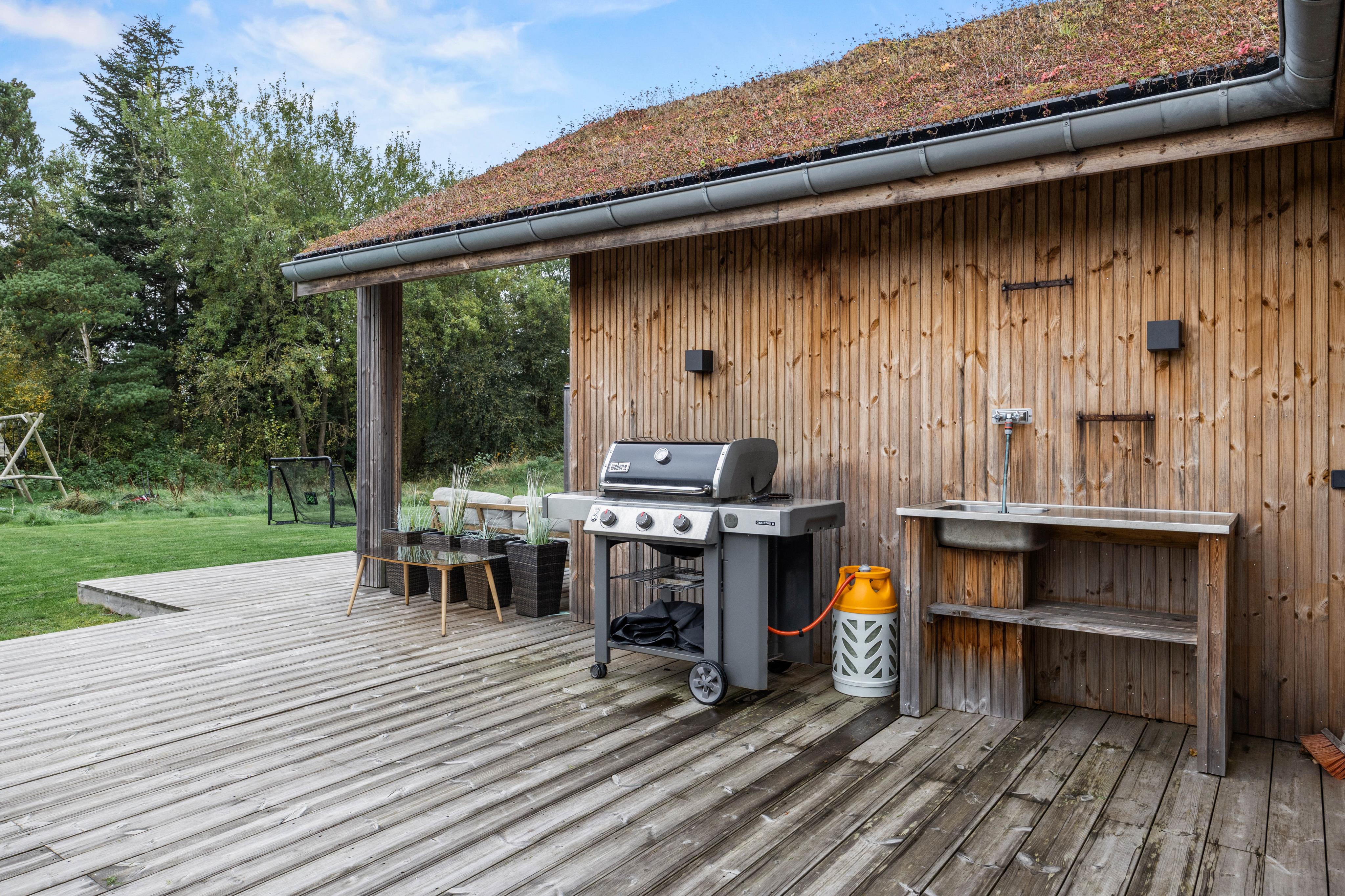 Im eigenen Garten auf Strandgodsvej 15 erwartet euch zudem ein toller Außenbereich mit Terrasse und der praktischen Außenküche. Hier könnt ihr im Freien kochen und auch den Grill des Ferienhauses nutzen. Es stehen auch Gartenmöbel und Sonnenliegen zur Verfügung, sodass ihr an warmen und sonnigen Tagen in der Sonne entspannen und die herrliche Umgebung so richtig genießen könnt.