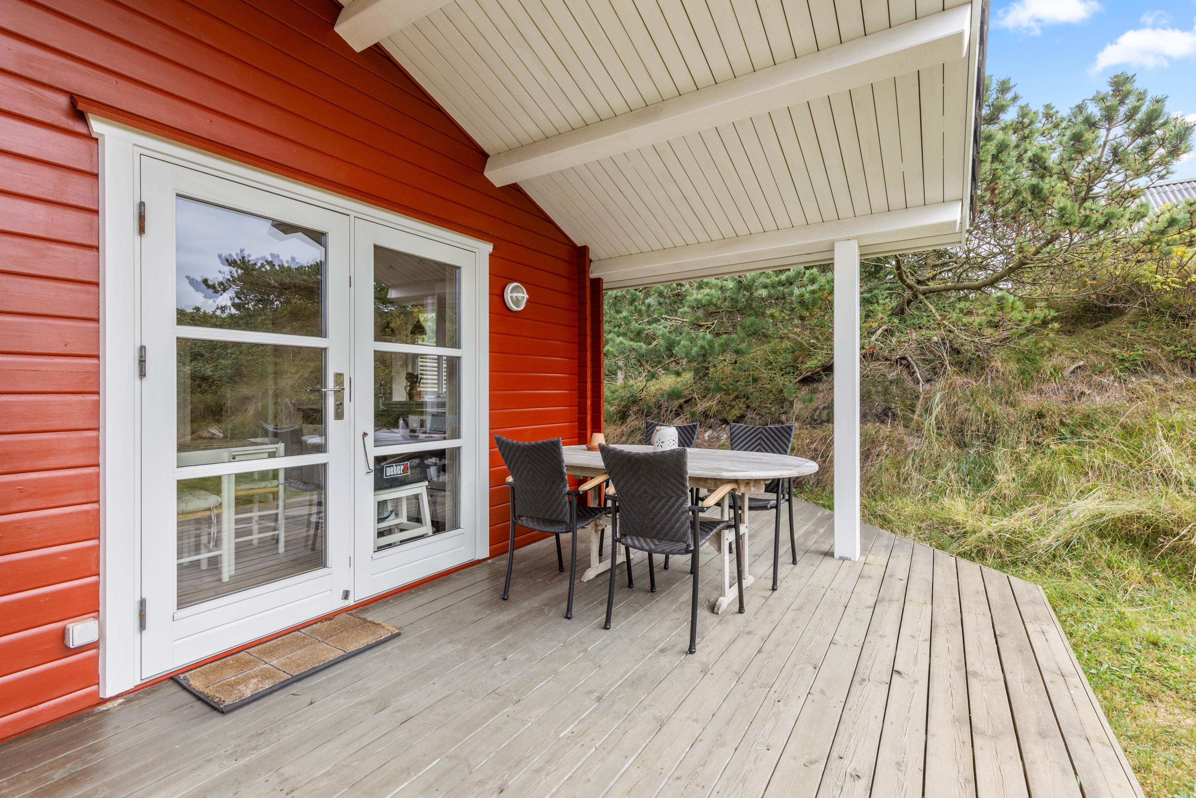 Die Lage des Sommerhauses ist sowohl ruhig als auch geschützt und mit nur 300 Metern bis zum Strand könnt ihr gerade an etwas stürmischeren Tagen das Rauschen der Brandung vernehmen. Sucht euch einfach einen windgeschützten Platz auf der teilweise überdachten Terrasse und legt entspannt die Beine hoch.