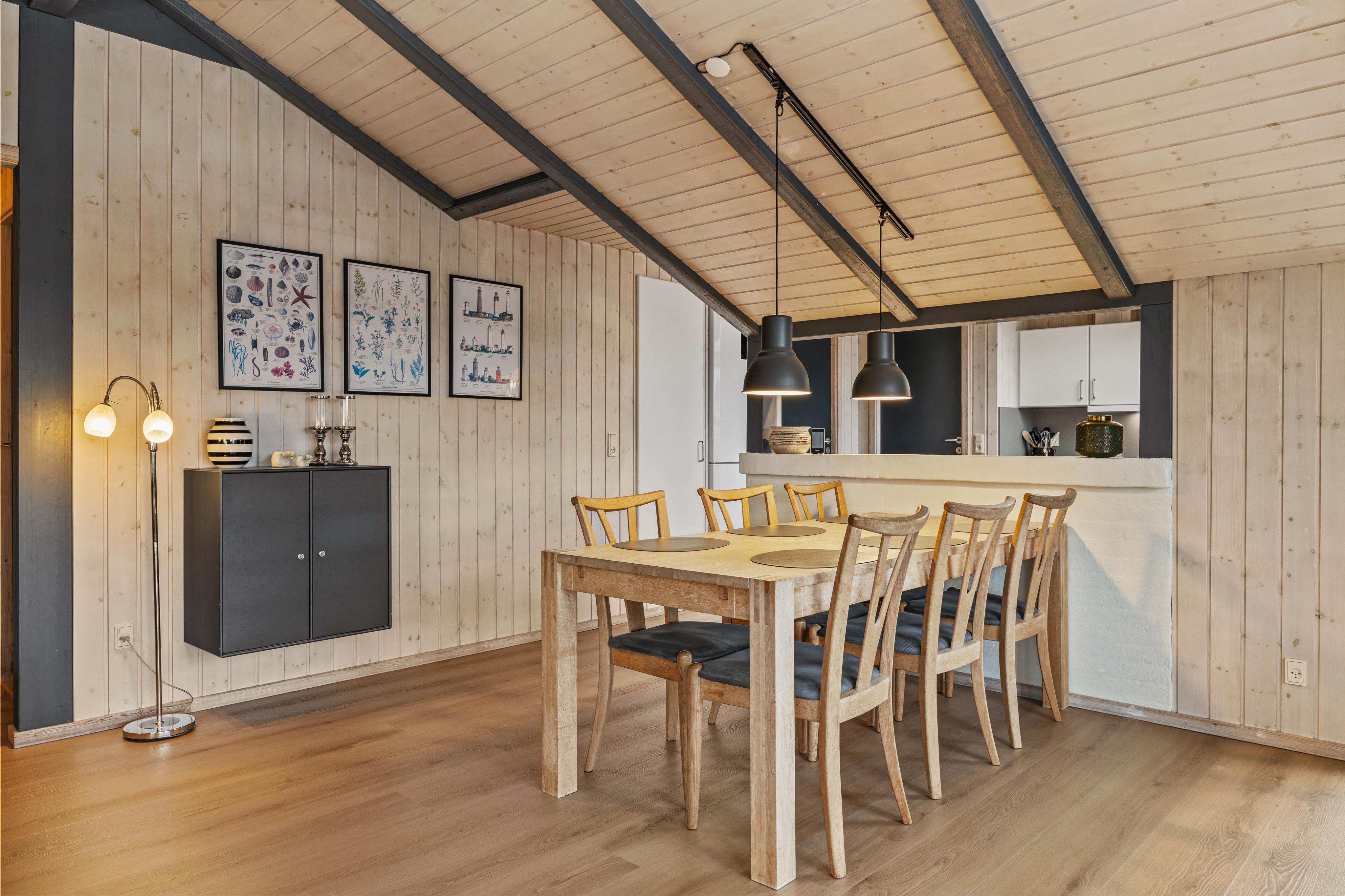 Im Jafdalvej 77 könnt ihr die typisch, dänische Ferienhaus Gemütlichkeit erleben. Der großzügige Wohnbereich, mit den hohen ausgebauten Decken, der Mischung aus Holz und warmen Farben sind ein Ort zum Wohlfühlen. Hier steht absolute Entschleunigung und gemeinsame Zeit auf dem Programm. Verbringt „hyggelige“ Stunden auf dem Sofa, legt die Füße hoch und genießt die Wärme des Kaminfeuers. Oder ihr setzt euch in einen der bequemen Sessel, und lest mal wieder in aller Ruhe ein gutes Buch.