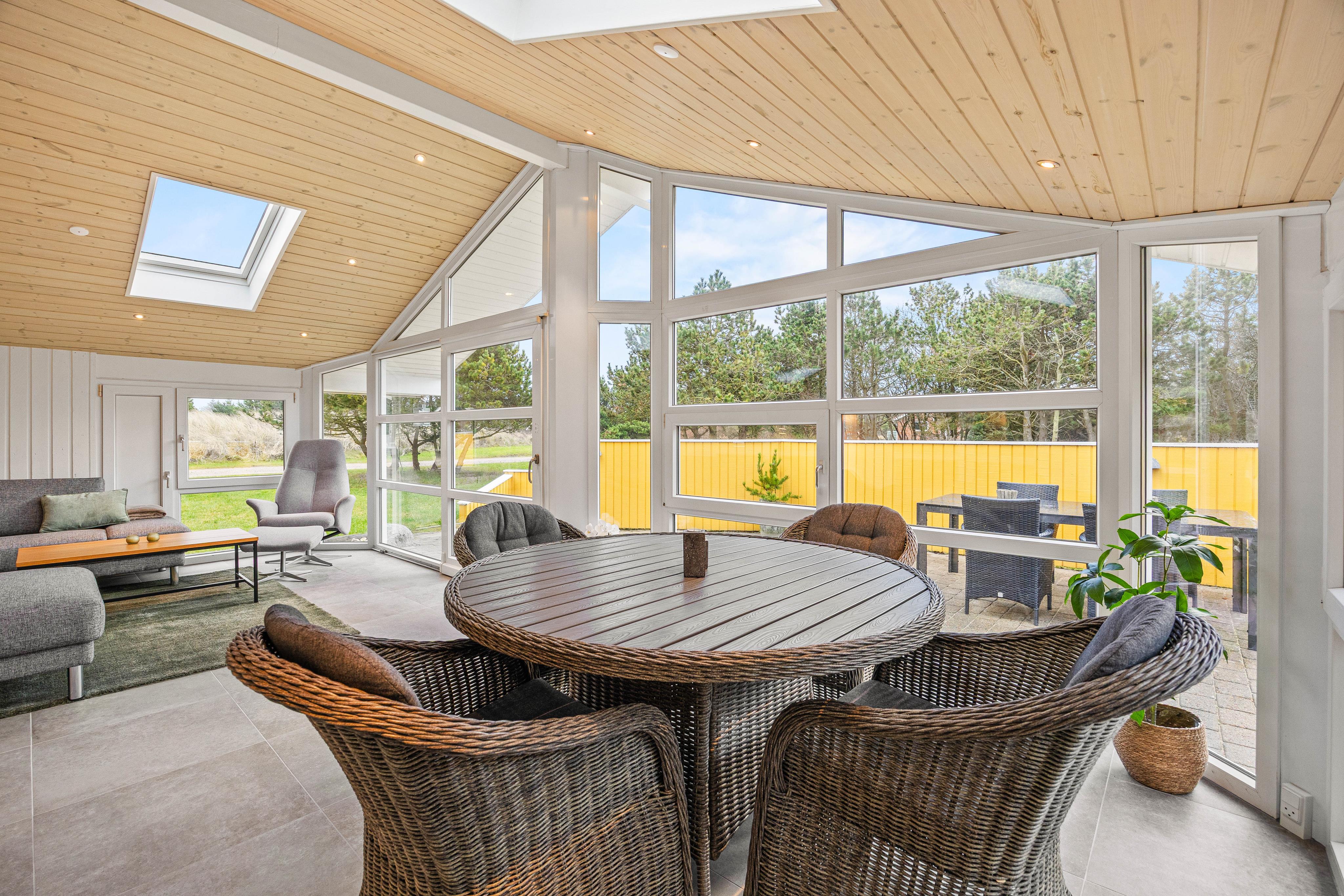 Das Ferienhaus in Vejers erstreckt sich über eine Wohnfläche von 134m2, die mit viel Liebe zum Detail im Jahr 2025 renoviert wurde. Vier Schlafzimmer mit jeweils einem Doppelbett bieten euch eine komfortable Schlafgelegenheit nach einem Tag voller Erlebnisse. Der gemütliche Kaminofen im Wohnbereich sorgt für eine behagliche Atmosphäre, während ihr im Wintergarten den Tag ausklingen lassen könnt. Erlebt die Wärme der Fußbodenheizung im Badezimmer oder entspannt euch im Whirlpool – purer Luxus erwartet euch hier.