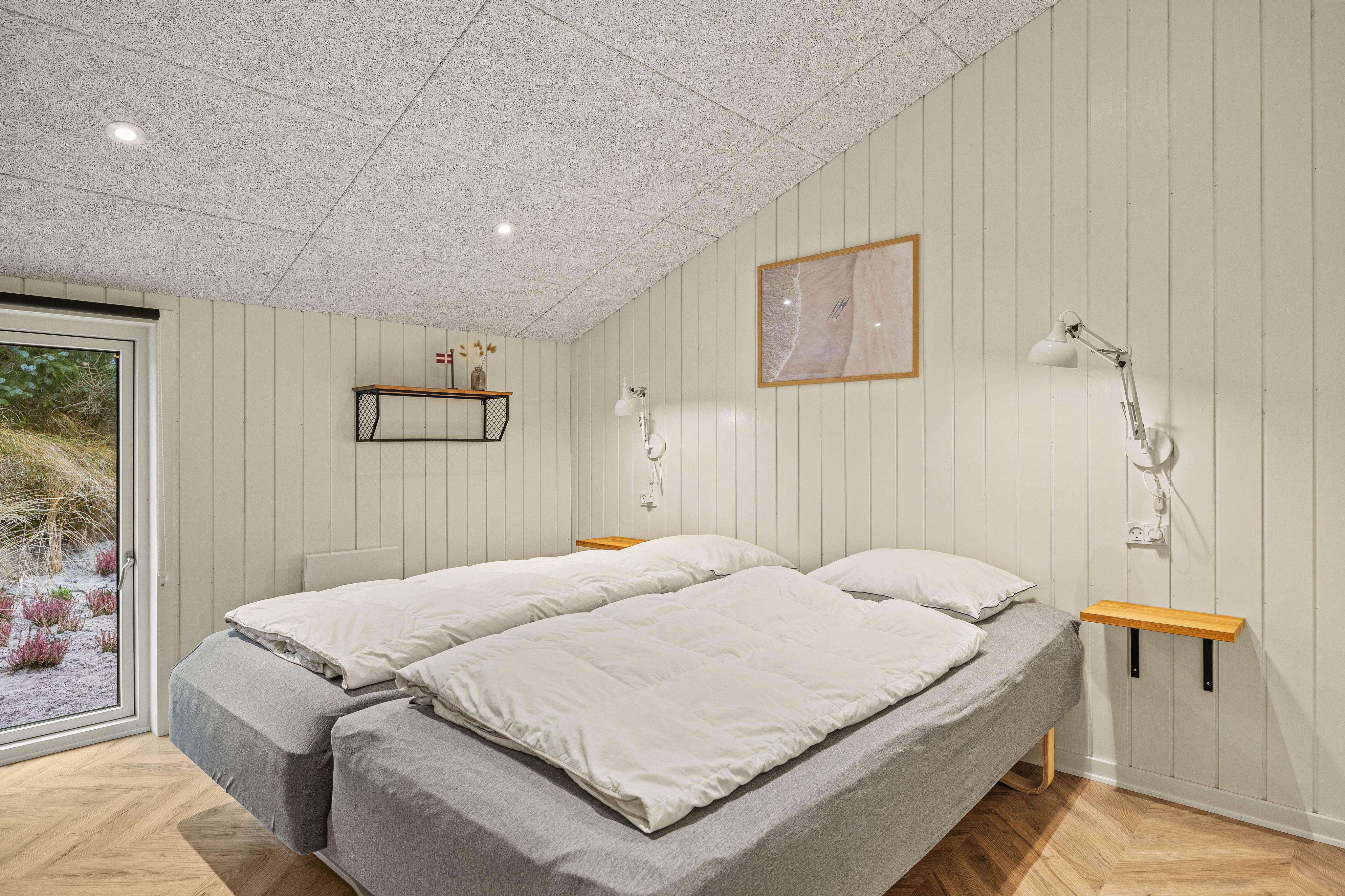 Genieße die kühleren Abende vor einem behaglichen Brennofen, der für eine wohlige Atmosphäre sorgt. Im geräumigen Wohnzimmer erwarten dich luxuriöse Einrichtungen, darunter ein Poolbillard-Tisch und ein Aktivitätshaus, ideal für gesellige Stunden mit deinen Liebsten. Sobald die dänische Sonne untergeht, kannst du dich in einem der 4 behaglichen Schlafzimmer mit Doppelbetten zur Ruhe legen.