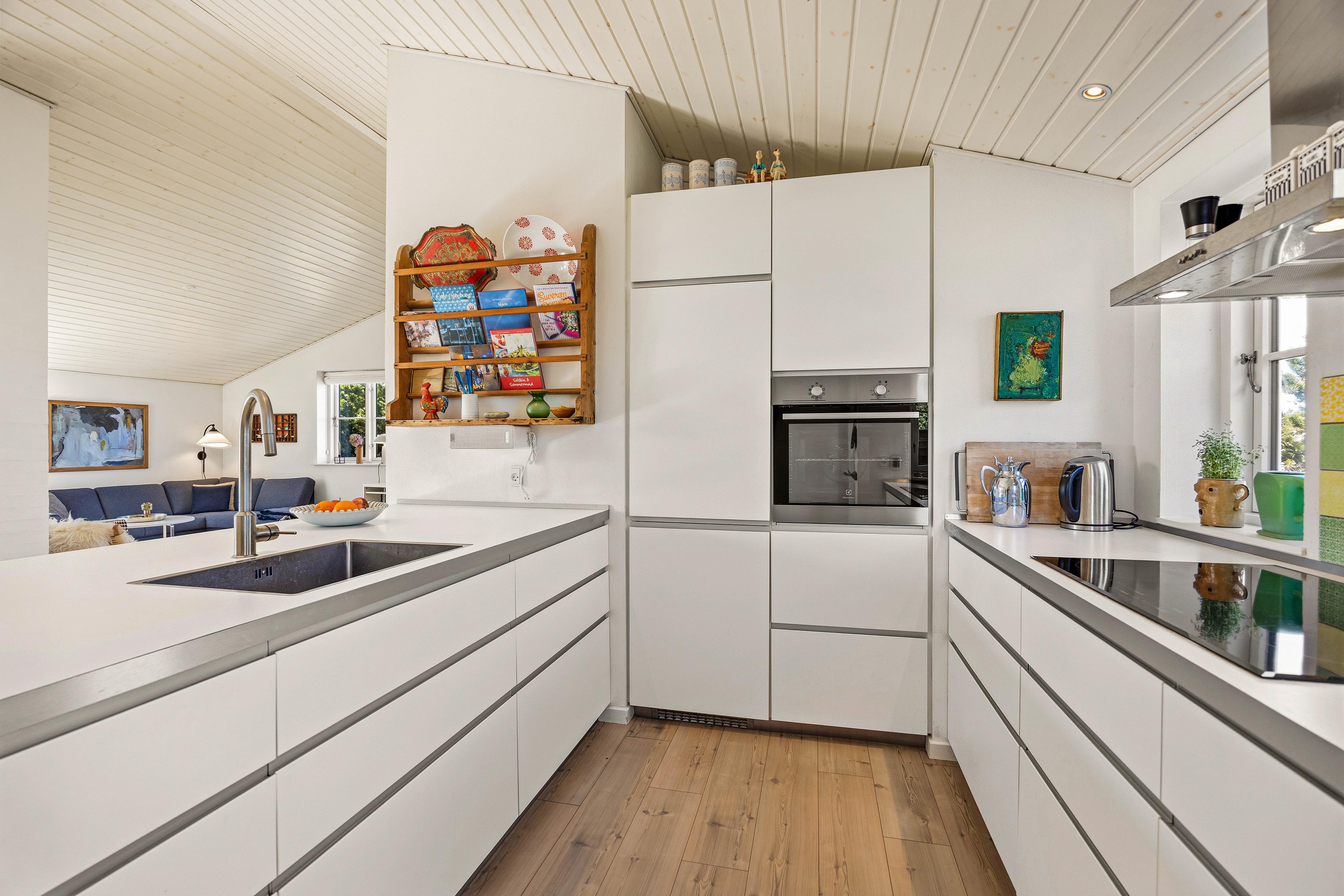 Draußen erwartet euch ein großes Klitgrundstück von 2500 m2, und die abgeschirmte Lage inmitten der Dünen vermittelt ein besonderes Gefühl der Nähe zur Natur. Hier könnt ihr das Leben im Freien auf der offenen Terrasse genießen, wenn die Sonne hoch steht, oder sich auf die überdachte Terrasse zurückziehen, wenn der Tau fällt oder der Wind auffrischt. Entzündet den Außenkamin an langen Sommerabenden mit gutem Grillessen und entspannter Atmosphäre, während Kinder und Erwachsene Platz zum Spielen, Entspannen und für kleine Pausen im Windschatten finden.