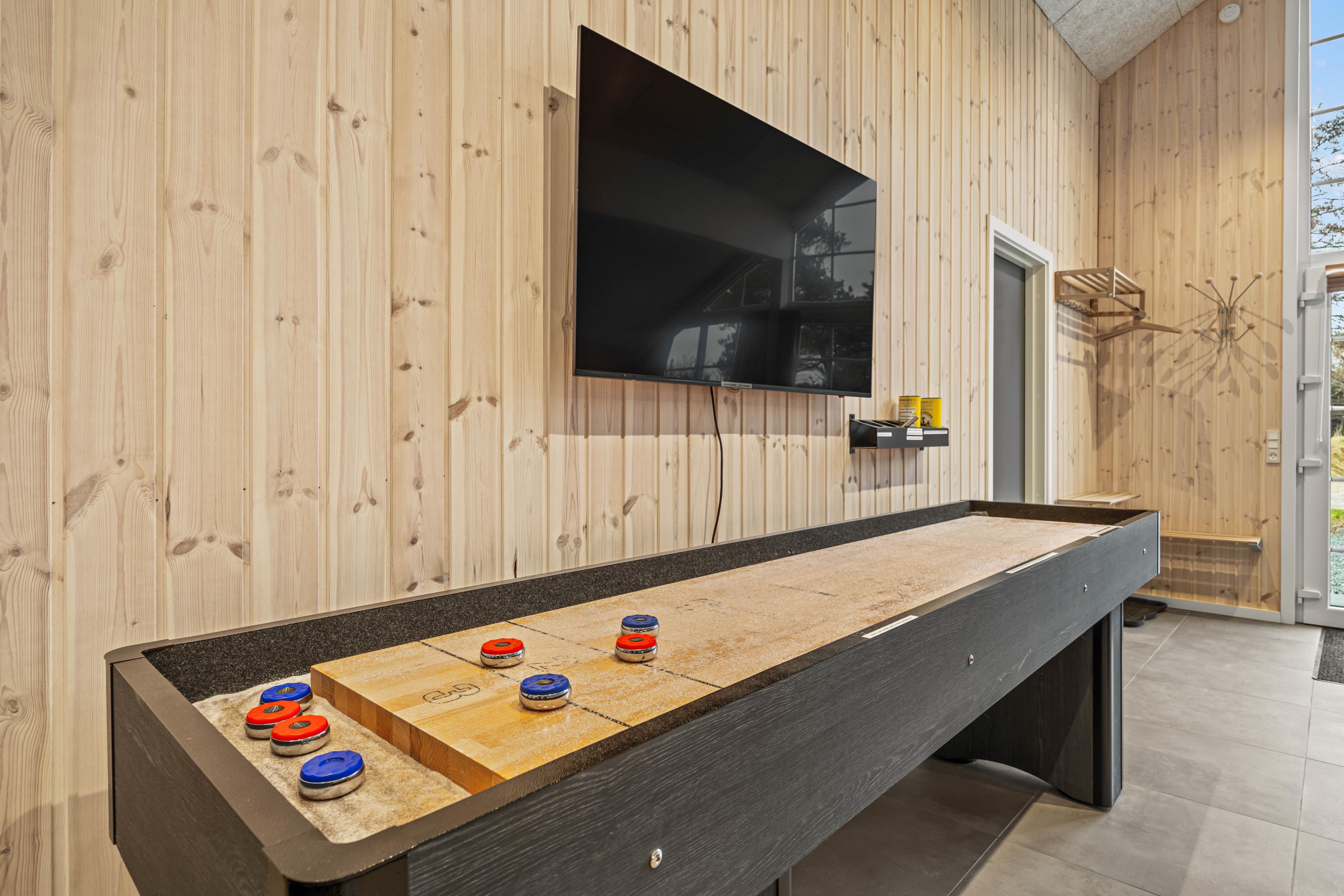 Mitten im Zentrum von Blåvand, aber dennoch in ruhiger Lage, liegt das große, schön renovierte Ferienhaus mit eigenem Schwimmbad. In den großen Räumen mit hohen Decken ist Platz für alle, außerdem gibt es eine Sauna und einen Whirlpool für 6 Personen sowie einen Aktivitätsraum, in dem ihr Billard, Tischtennis, Shuffleboard oder den Spielautomaten nutzen könnt. Egal, ob ihr einen aktiven oder erholsamen Urlaub sucht, im Sønder-Vasevej 86 ist für jeden etwas dabei.