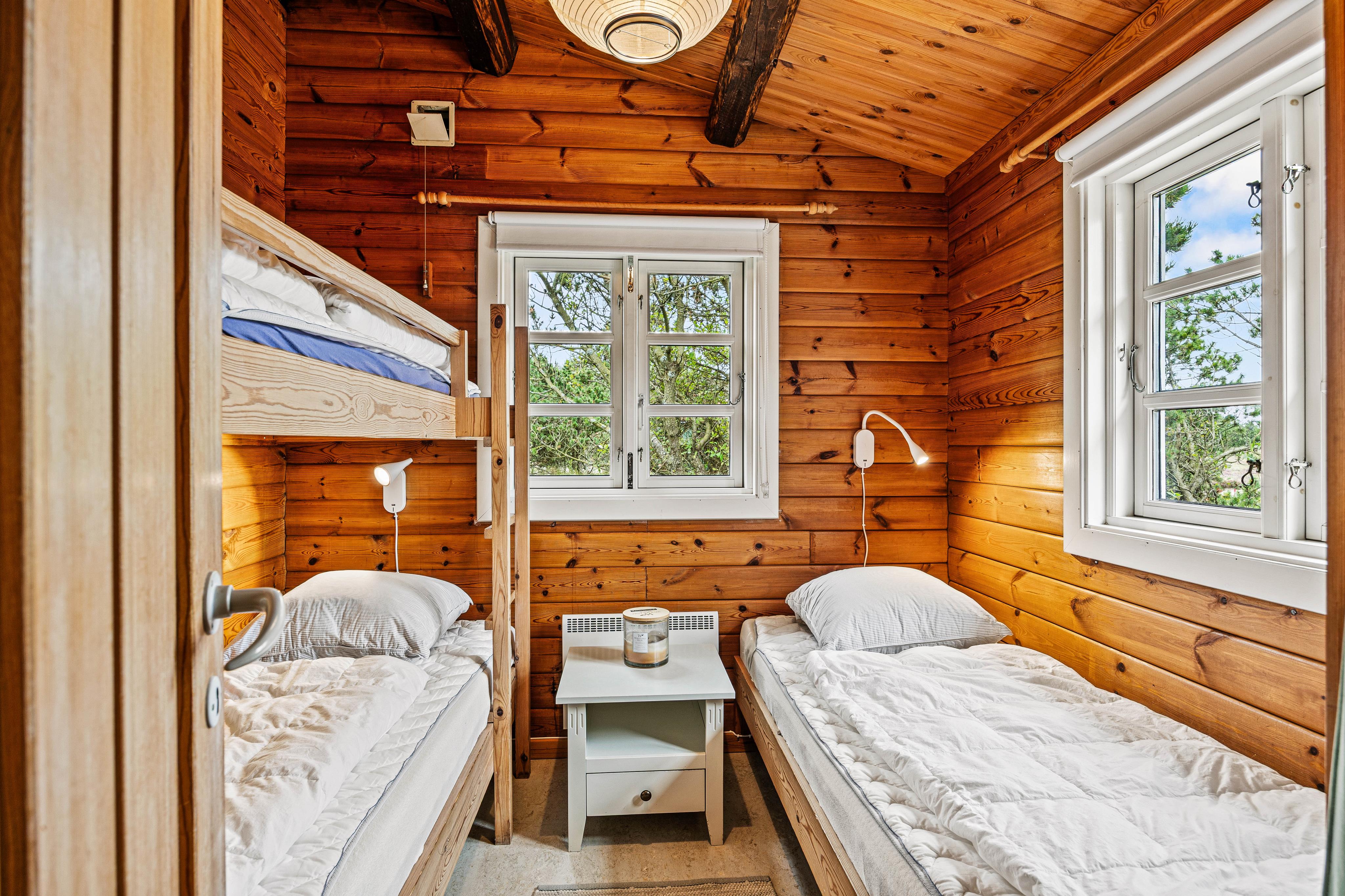 Das gemütliche Holzhaus hält insgesamt 3 Schlafzimmer bereit, wovon eines mit einem Doppelbett (140 × 200) ausgestattet ist. Das Duschbad mit Tageslicht ist mit einer Fußbodenheizung versehen, sodass ihr gerade an kühleren Tagen keine kalten Füße befürchten braucht.