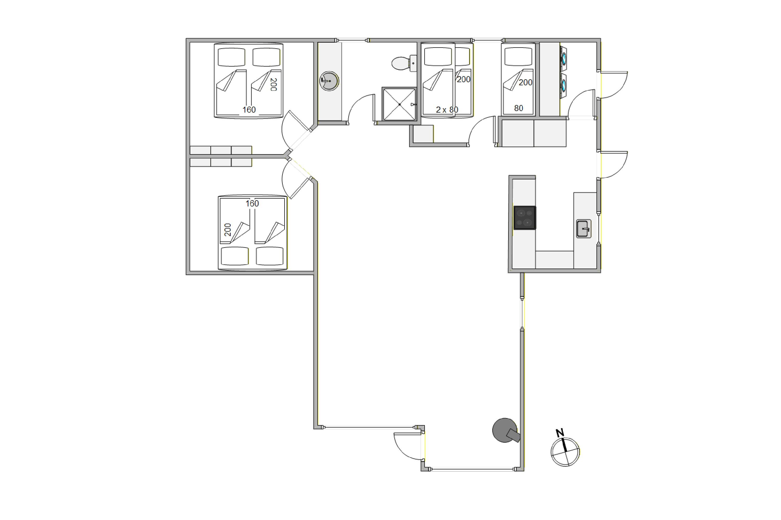 Im Badezimmer des Ferienhauses ist eine angenehme Fußbodenheizung installiert. Auch eine Waschmaschine und ein Wäschetrockner stehen euch zur Verfügung. In diesem Ferienhaus sind 3 Schlafräume mit insgesamt 7 Schlafplätzen inklusive einem Etagenbett.