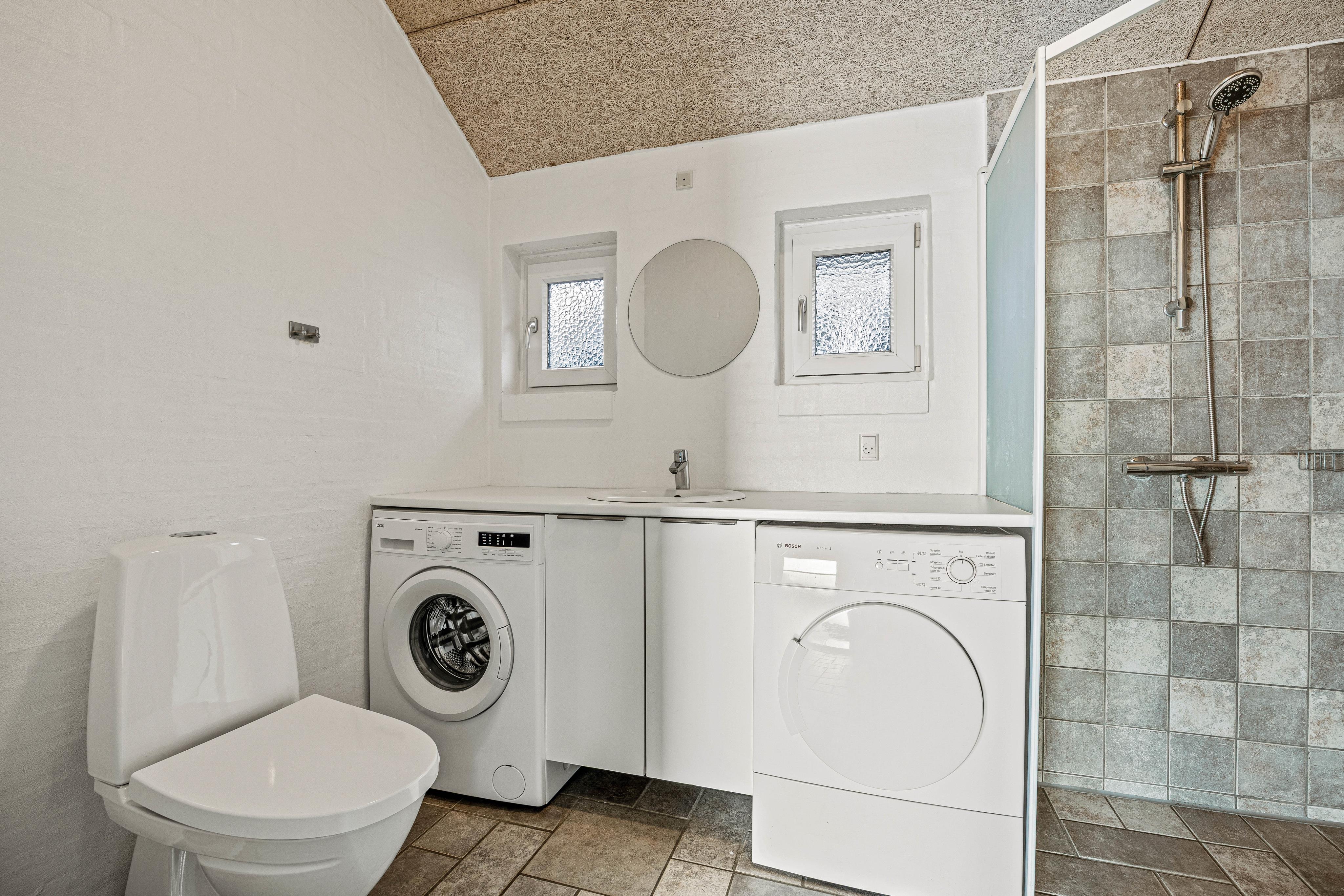 Um alltägliche Aufgaben einfach und schnell zu bewältigen, verfügt das Ferienhaus auch über einen Geschirrspüler, eine Waschmaschine und einen Trockner.