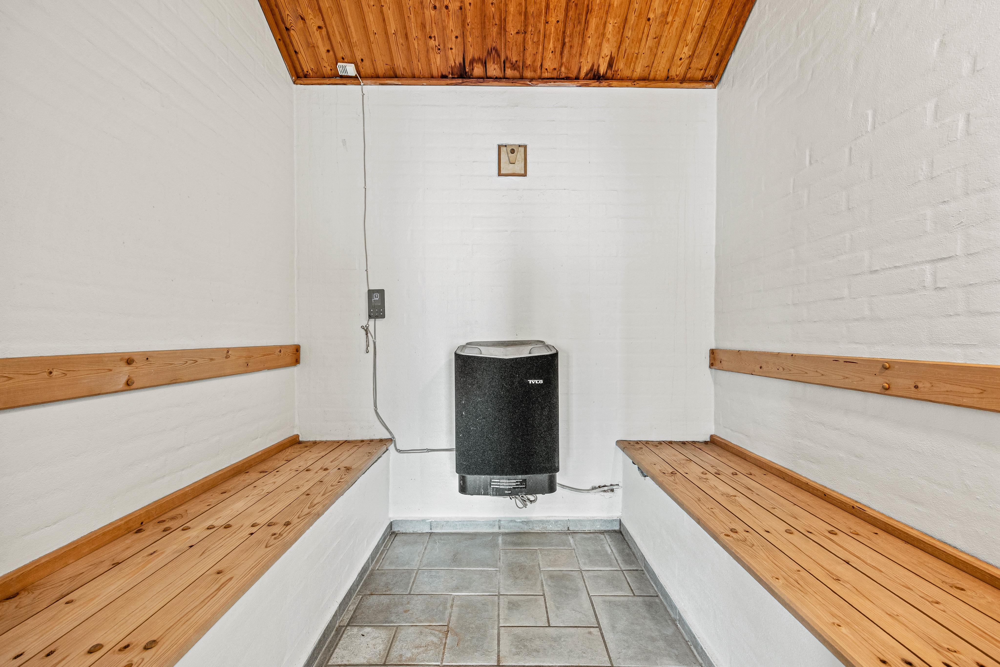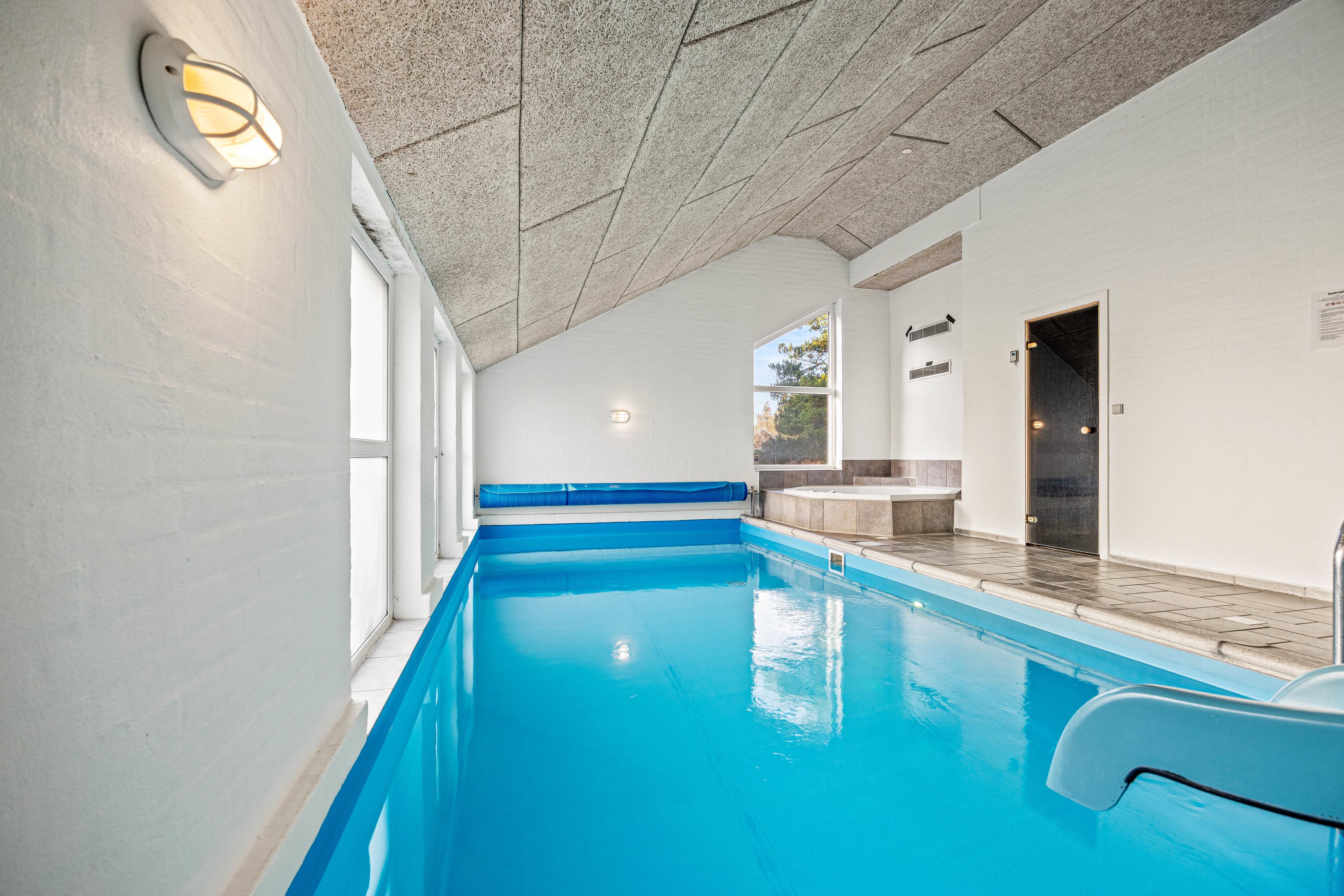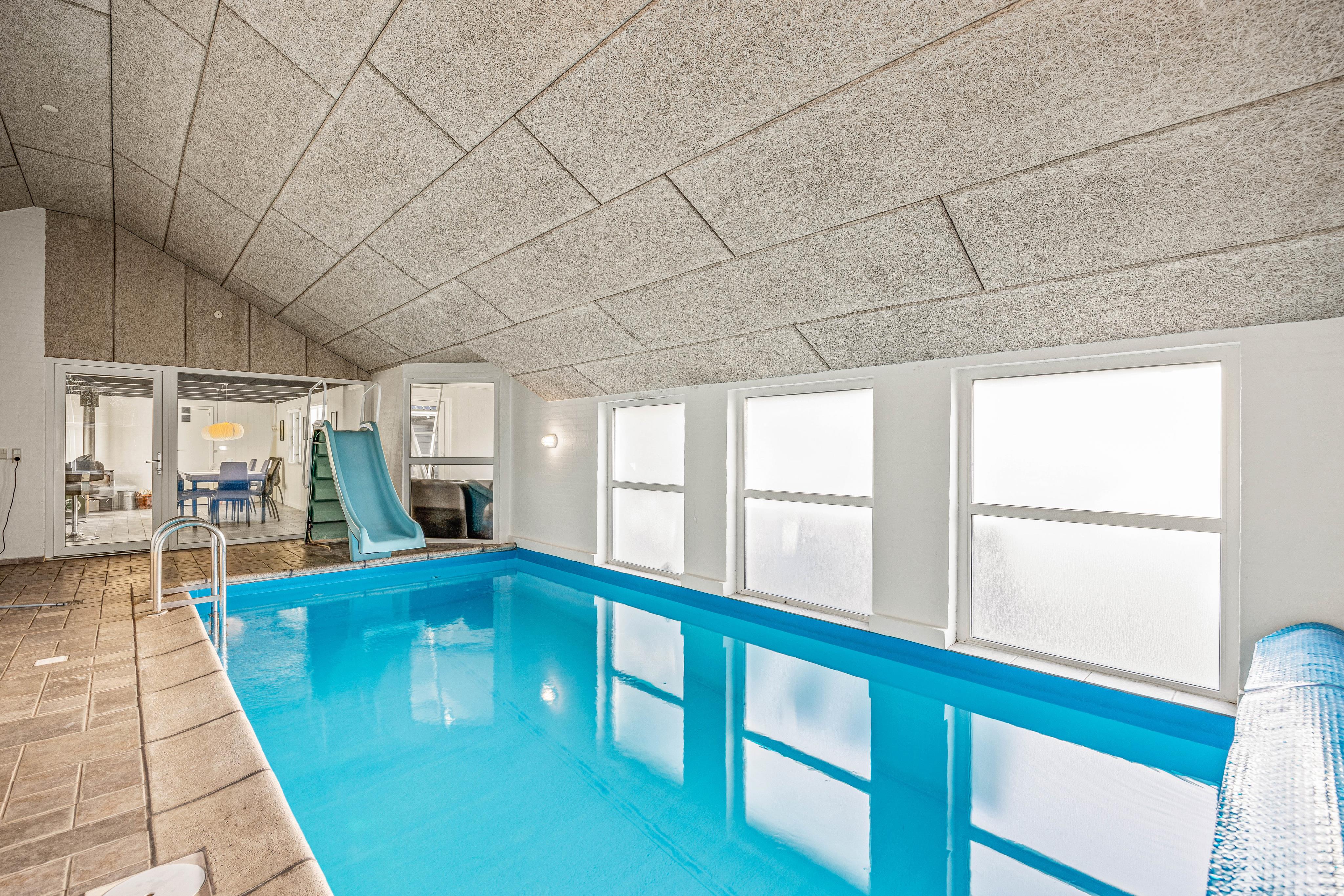 Ein weiteres Highlight des Ferienhauses ist die Poolabteilung, wo der 19 qm große Schwimmingpool mit Rutsche und einem Whirlpool auf euch wartet. Vom Poolraum gelangt ihr direkt in die Sauna, die auch über eine Dampffunktion verfügt.