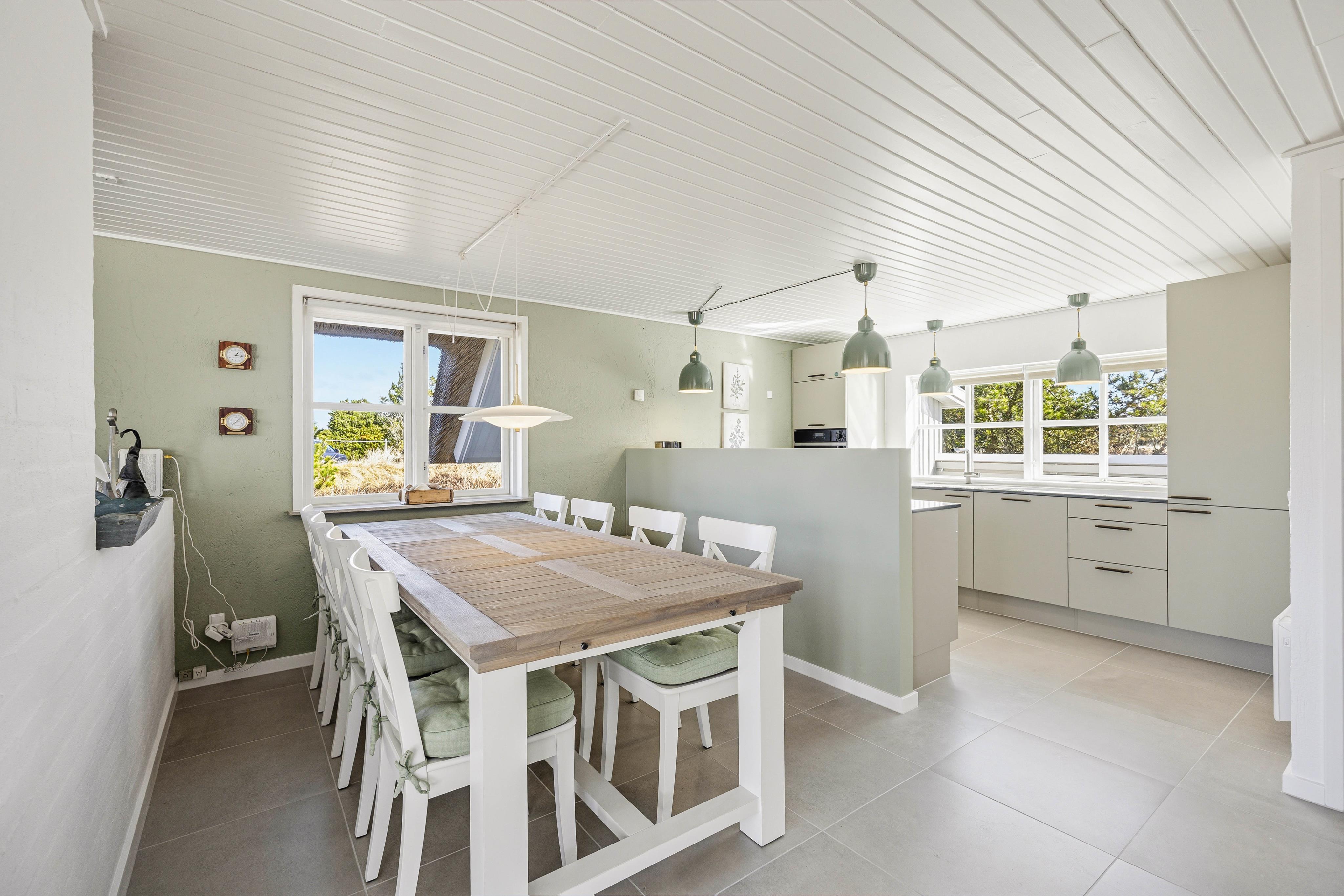 Die 143 m² von diesem Ferienhaus verteilen sich auf zwei Etagen. Die lichtdurchfluteten Räume, mit der hellen Einrichtung und dem Kaminofen, geben diesem Haus eine ganz besonders freundliche, und gemütliche Atmosphäre.