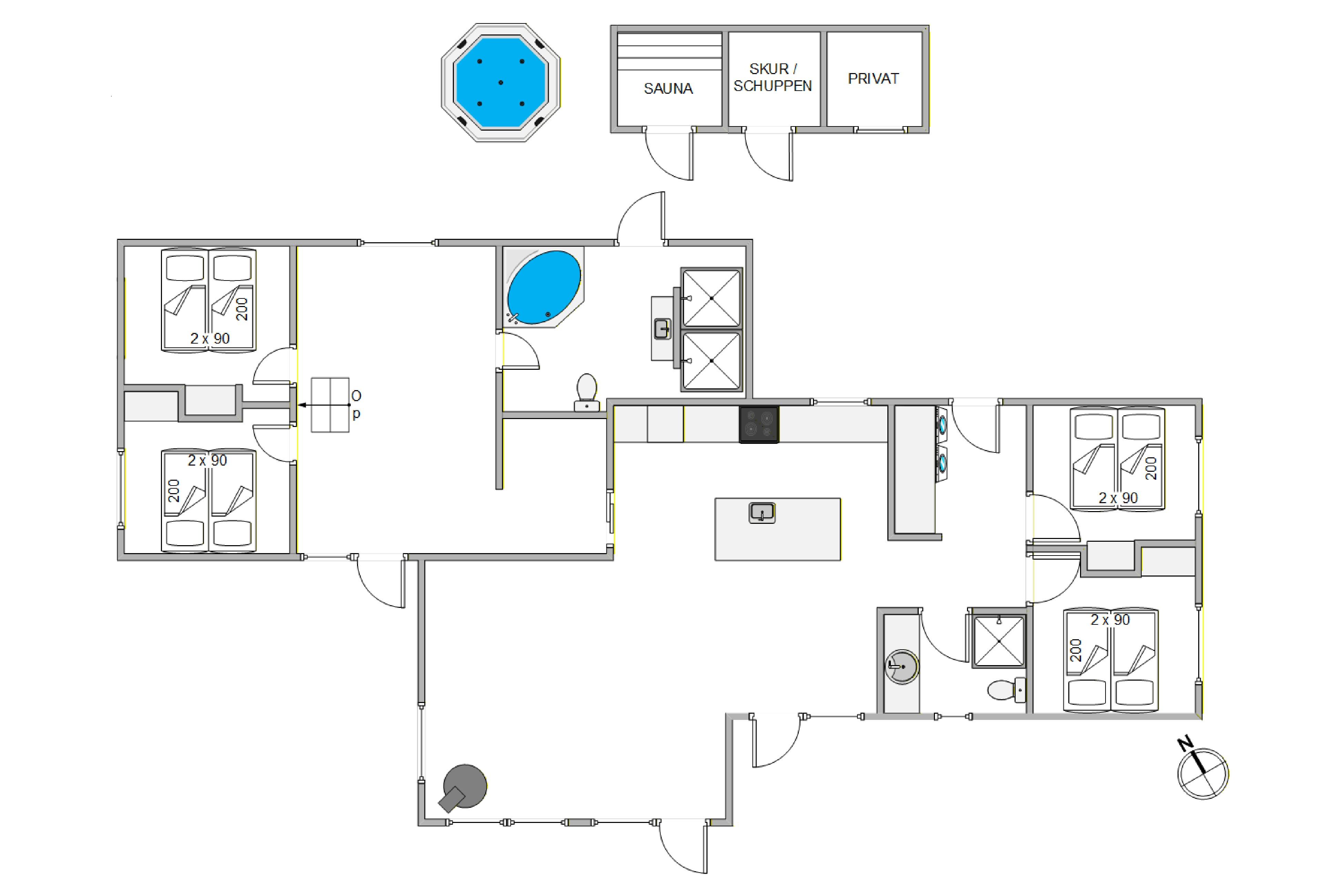 In diesem Ferienhaus jagt ein Highlight das andere. Das typisch skandinavisches Ambiente, und die Einrichtung der Räumlichkeiten werden euch sofort in die richtige Ferienstimmung bringen. Hier fühlt man sich sofort wohl, und kann sich auf eine tolle Zeit freuen. Auf den 164 m² ist Platz für bis zu 8 Personen. Es gibt insgesamt 4 Schlafzimmer, alle mit Doppelbetten, und 2 geräumige Badezimmer mit Fußbodenheizung. Da das Haus erst 2023 fertig gestellt wurde, erwartet euch in allen Räumen eine helle, angenehme und schöne Atmosphäre.