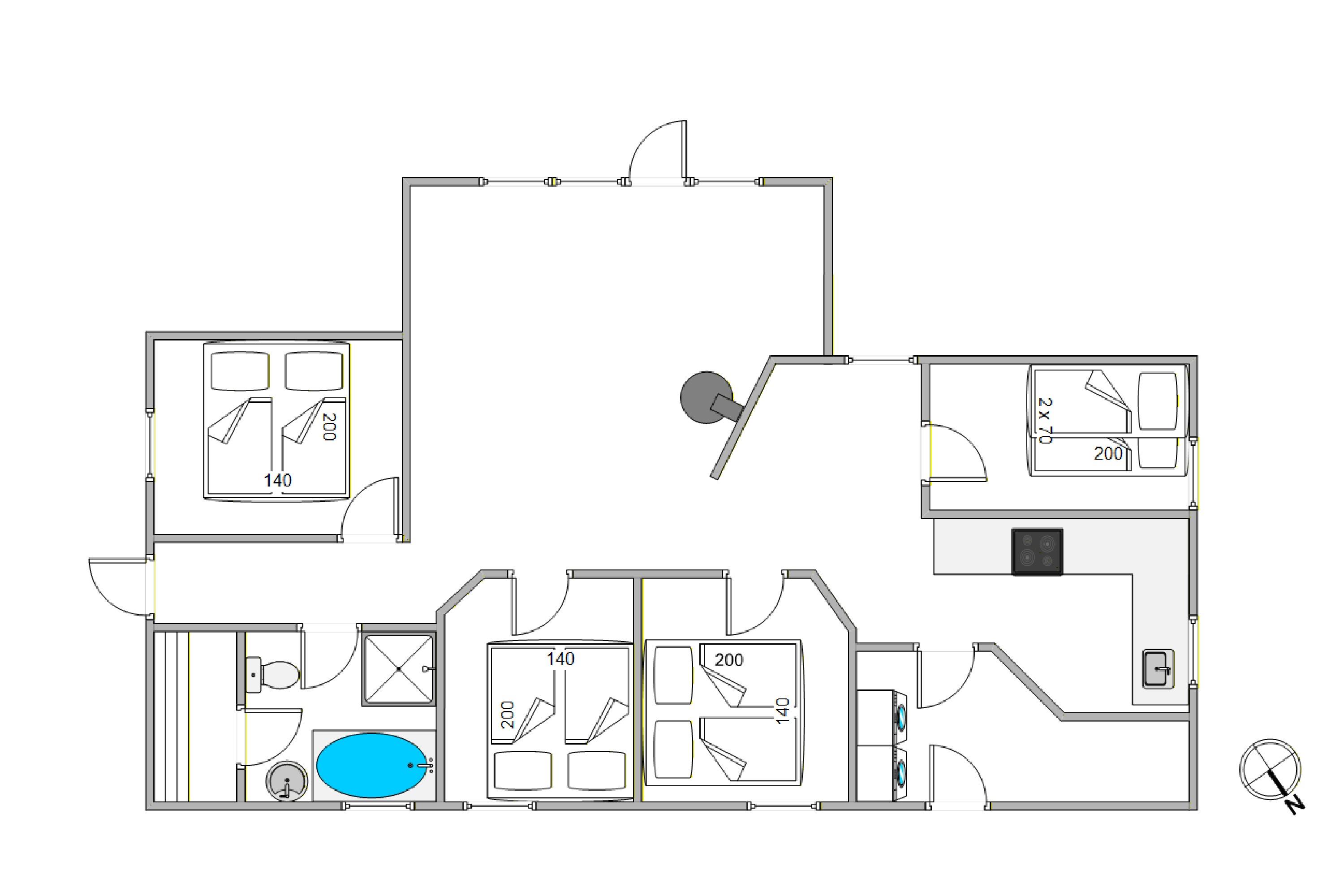 Dieses Ferienhaus in Blåvand ist ideal für einen Urlaub mit Familie oder Freunden. Mit 4 Schlafzimmern, ausgestattet mit einem Doppelbett, 2 Dreiviertelbetten und 1 Etagenbett bietet es Platz für ca. 6 Personen, die sich hier nach intensiven und spannenden Urlaubserlebnissen tagsüber ausruhen und erholen können. Die offene Küche und der einladende Essbereich ermöglichen es dir, gemeinsam zu kochen und gemütliche Abende zu verbringen.
