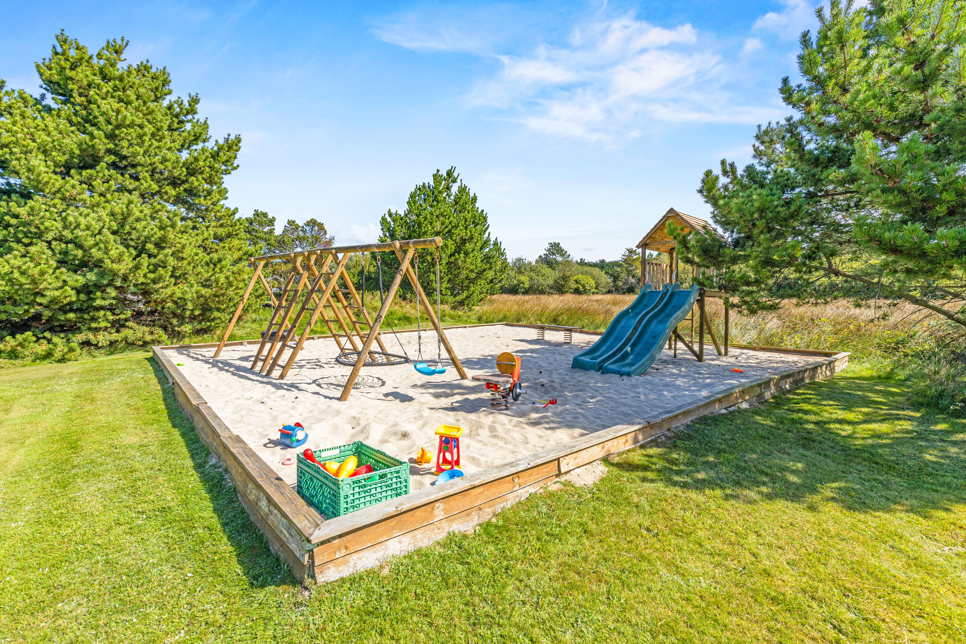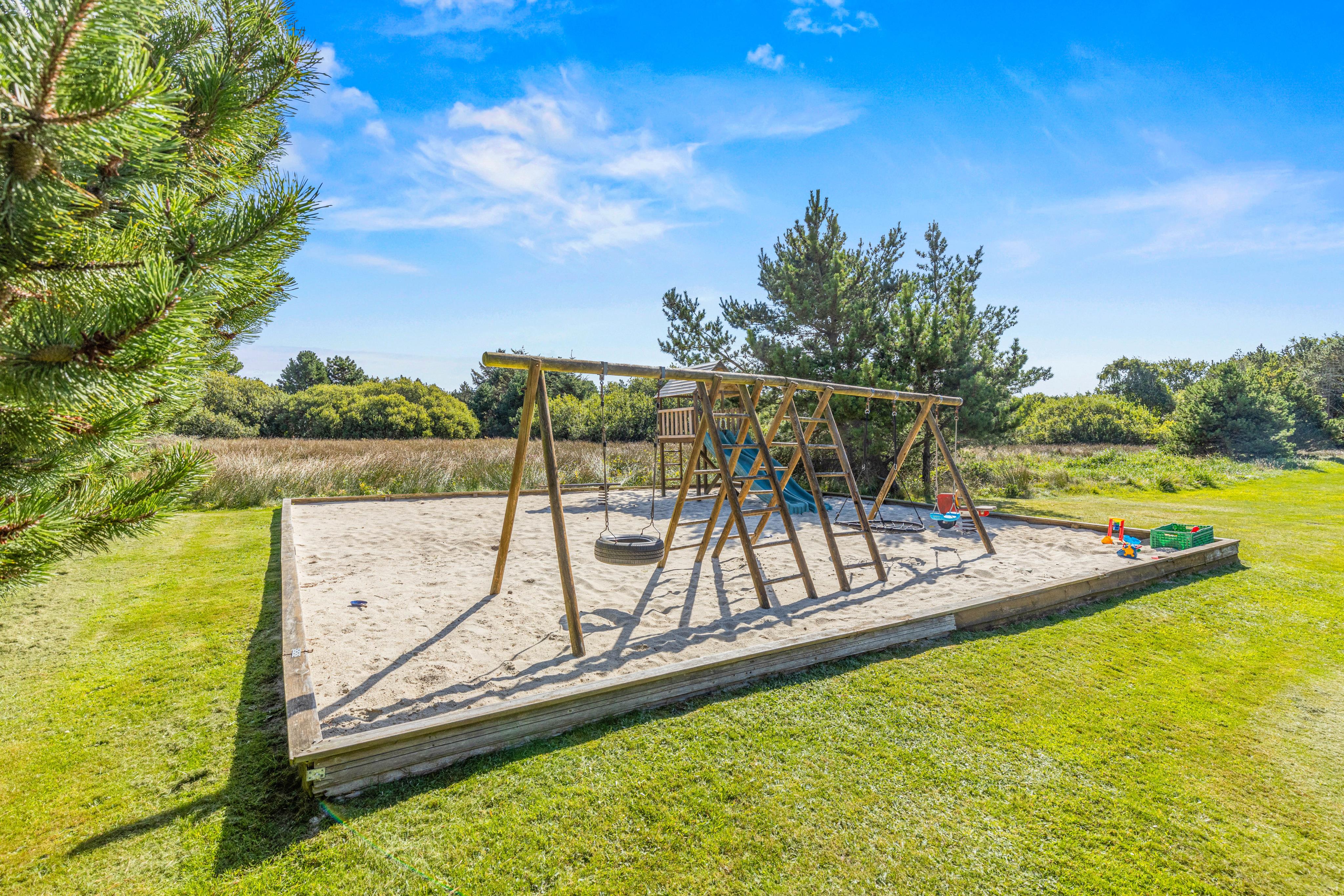 Auf einer beeindruckenden Rasenfläche von 2515 Quadratmetern gibt es viel Platz für Gäste jeden Alters, um sich draußen zu vergnügen. Kinder können sich auf der Schaukel und im Sandkasten stundenlang vergnügen, während die Erwachsenen auf der Terrasse rund um das Haus entspannen könnt. Schmeißt den Grill an, öffnet eine Flasche gekühlten Weißwein und genieße gemeinsam herrliche Ferienmahlzeiten im Freien. Mit dem Haus und seinen Einrichtungen habt ihr den besten Rahmen für unvergessliche Grillabende mit Familie und Freunden.
