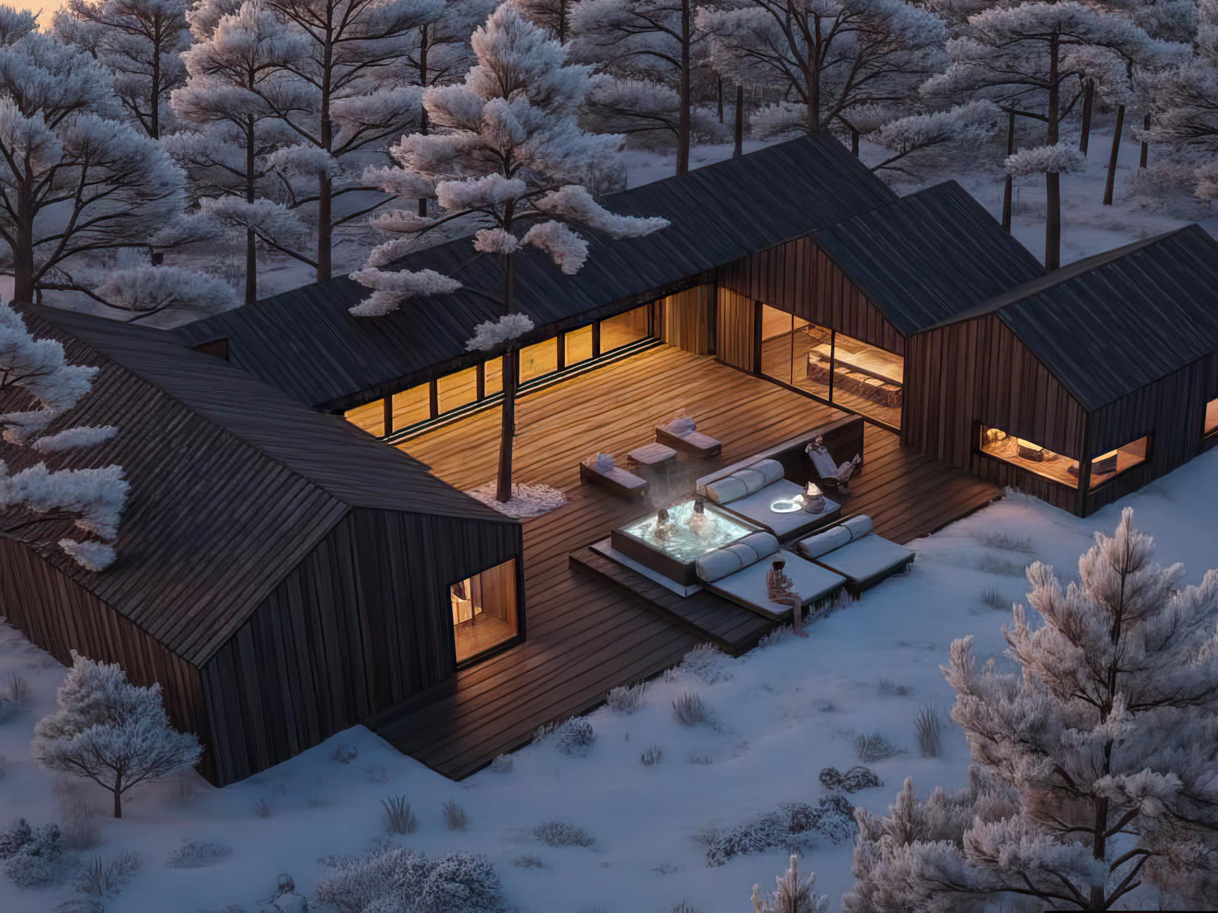Der 22 m² große Pool mit eingebautem Schwimmtrainer verleiht dem Erlebnis eine besondere Note und ermöglicht es euch, euch sportlich zu betätigen und ungestörte Momente im Wasser zu genießen. Nach einem Bad könnt ihr euch ins Wohnzimmer zurückziehen, wo ein stilvoller Gaskamin Wärme verbreitet und eine ruhige und einladende Atmosphäre schafft.