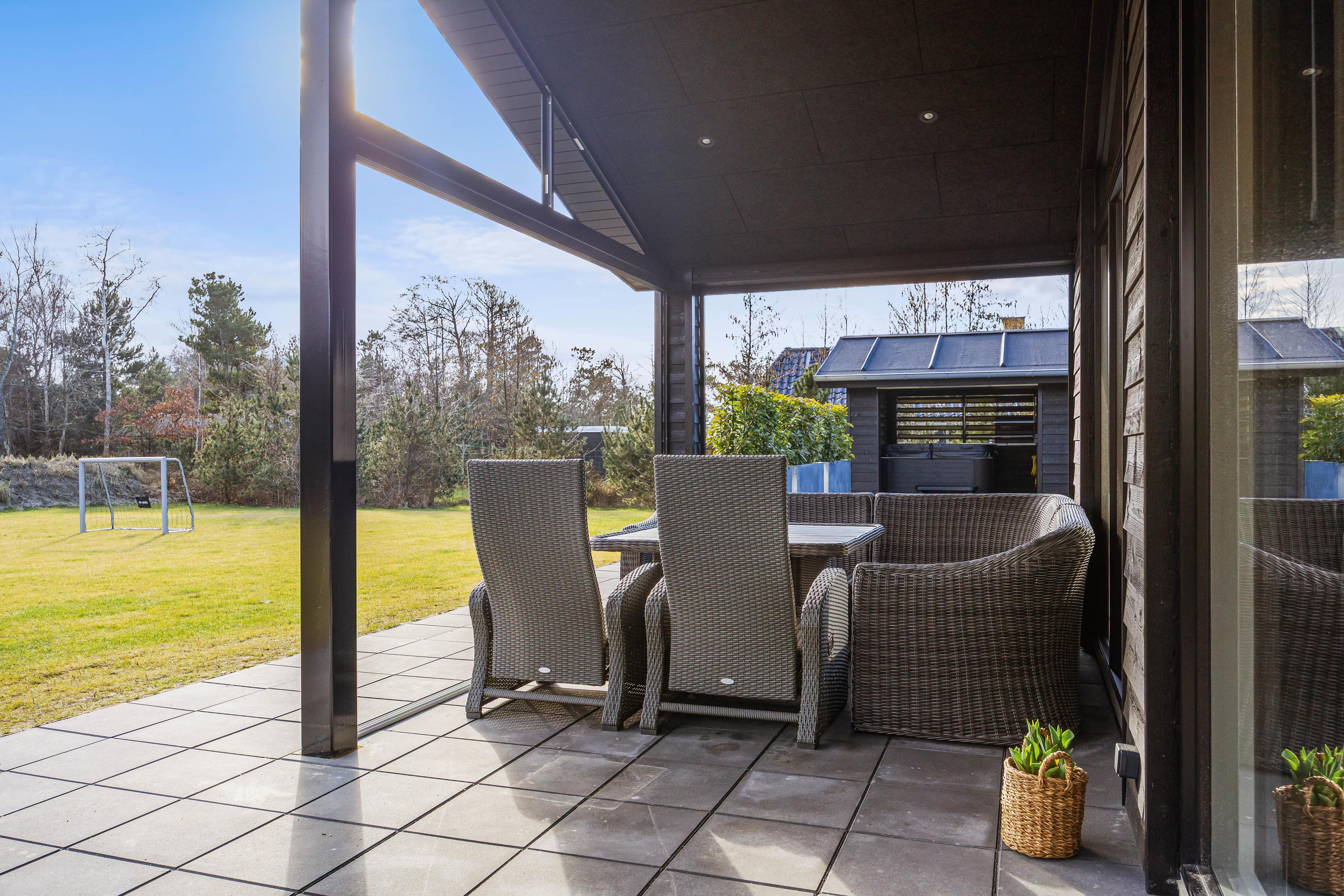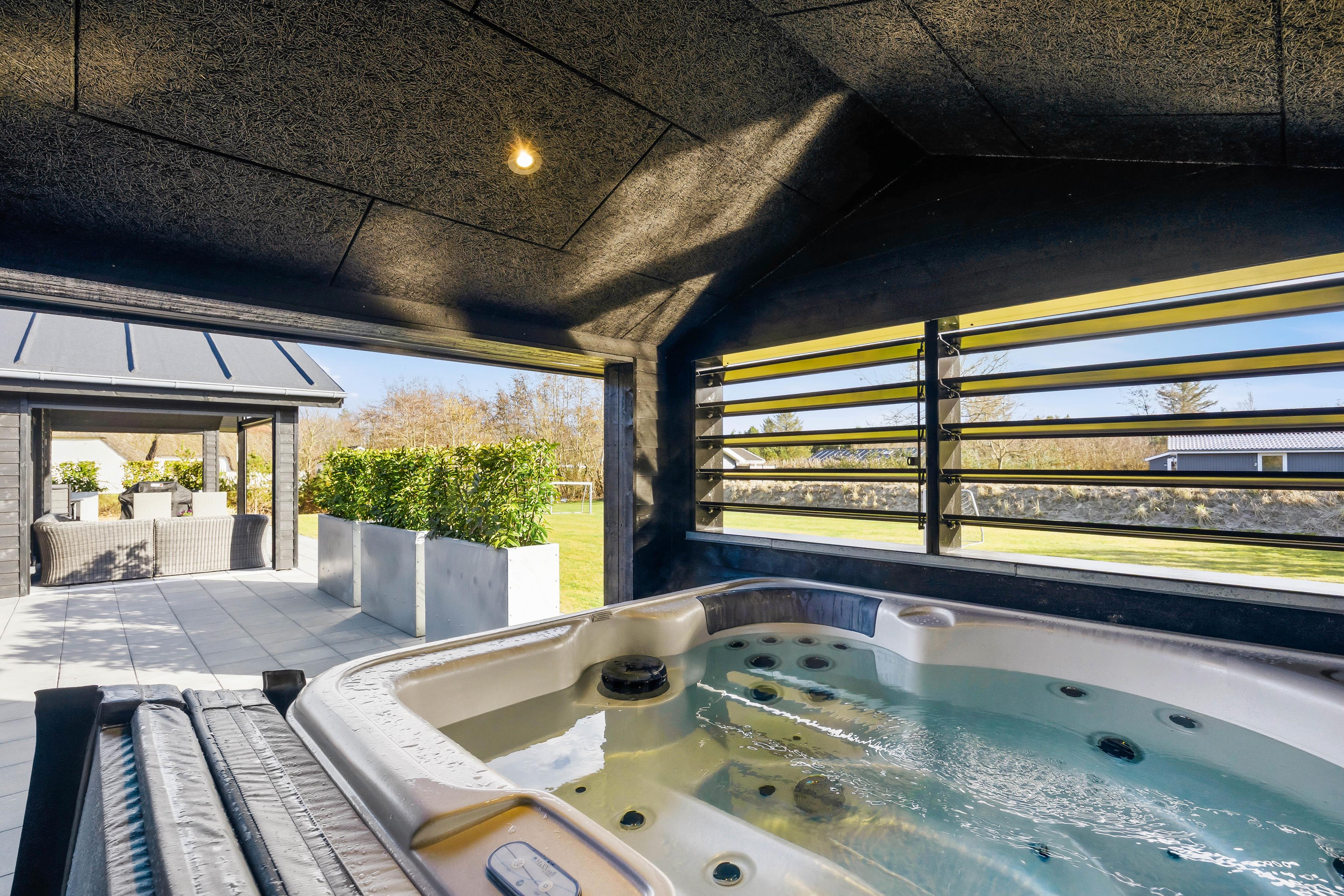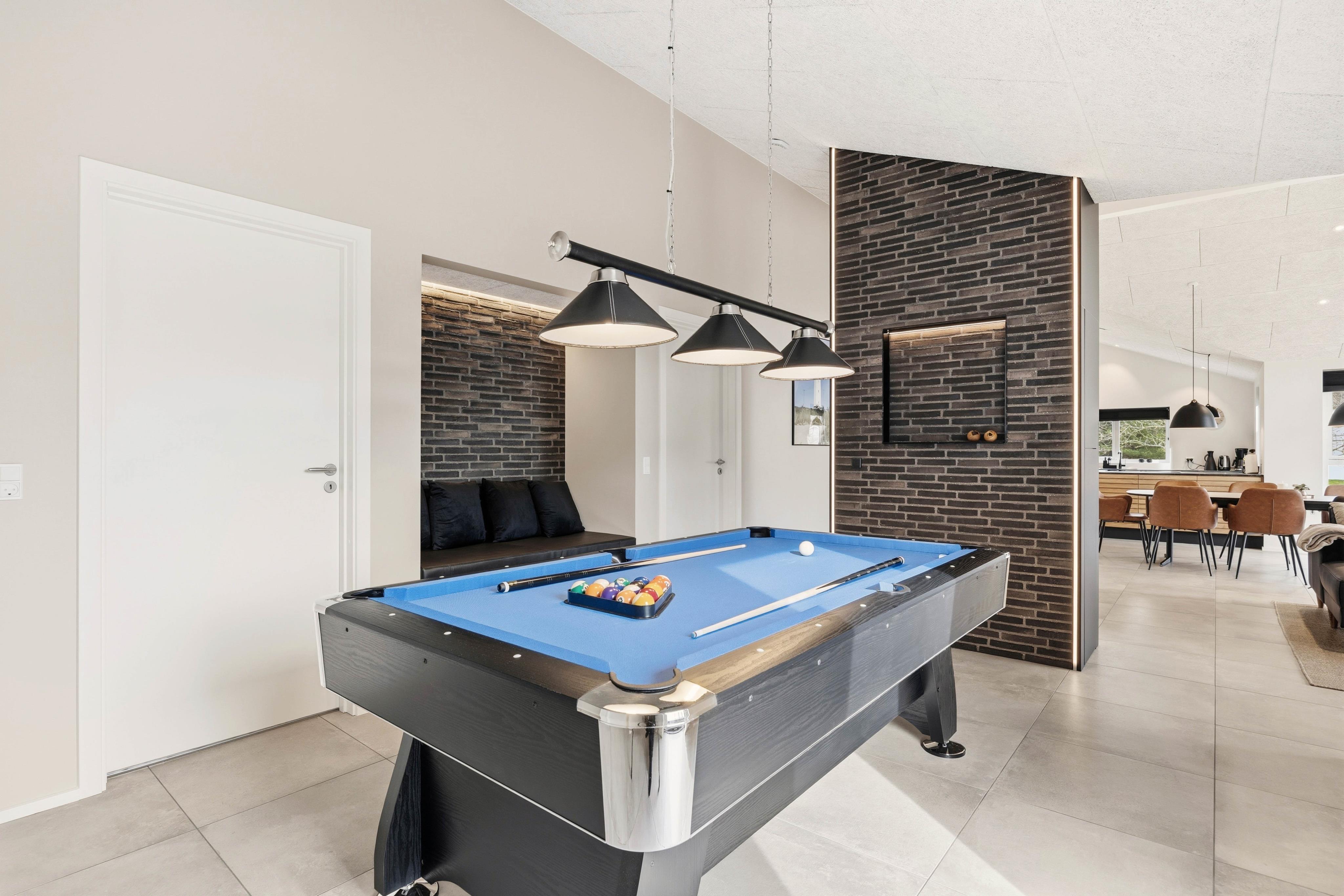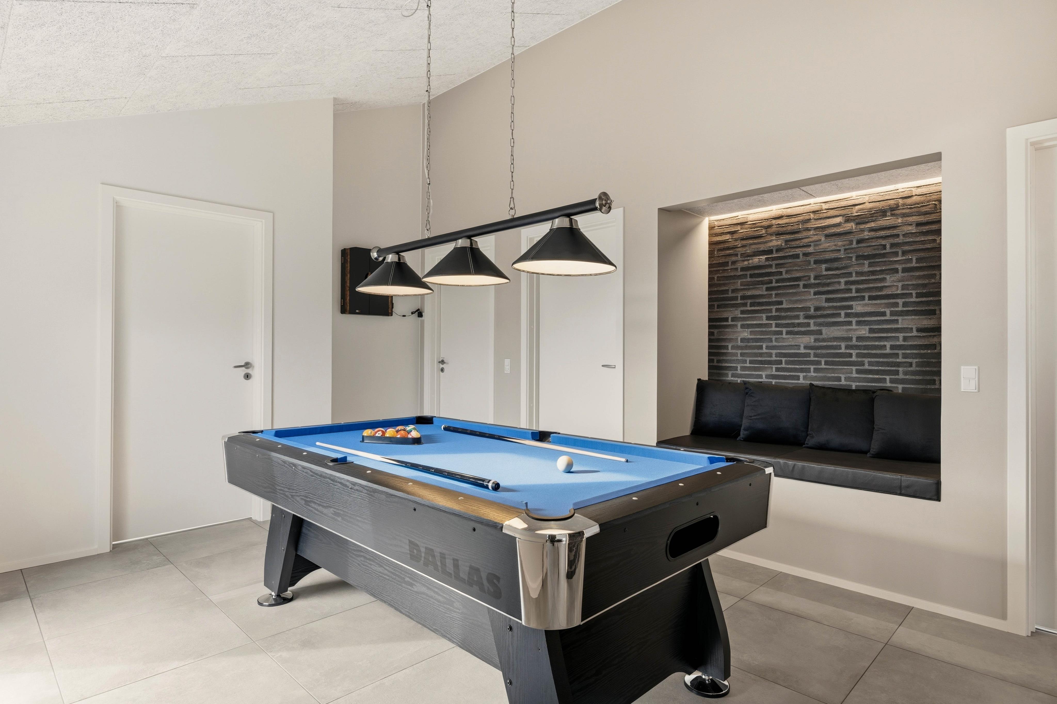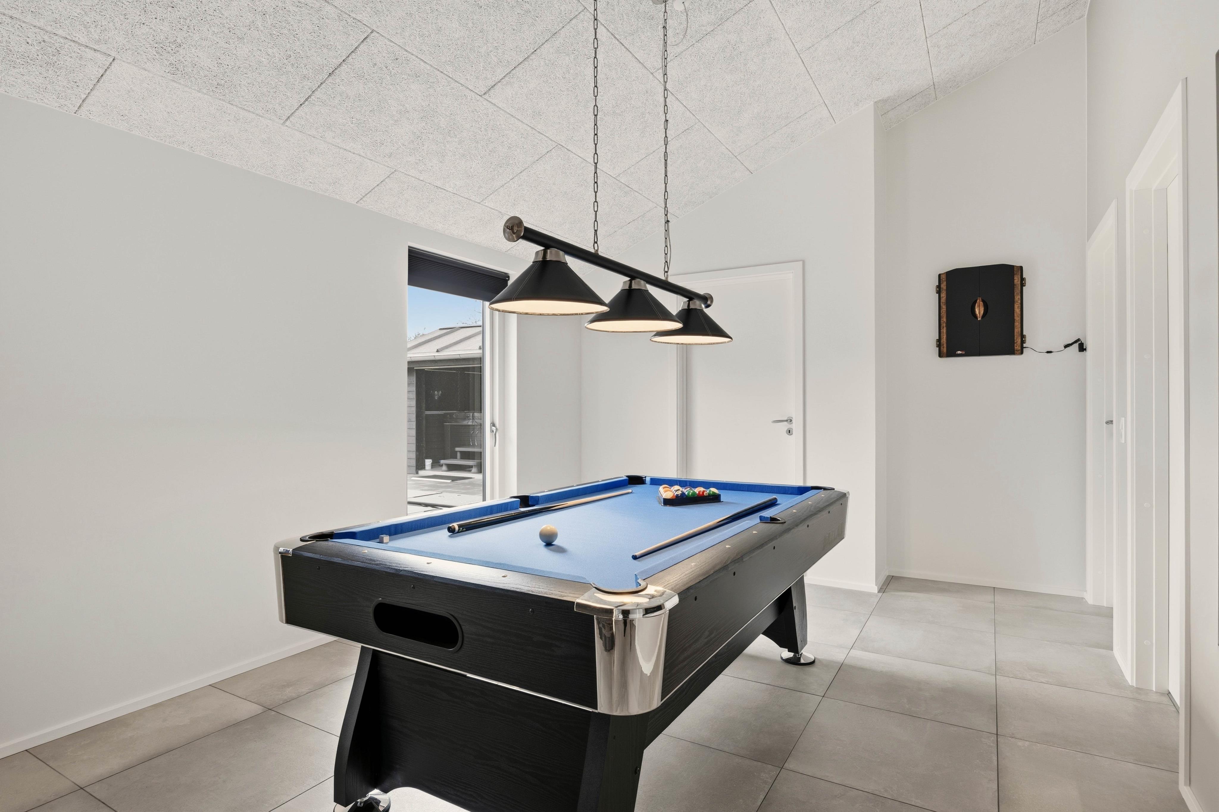 Dieses schöne Ferienhaus in Blåvand ist ein wahres Aktivitätshaus. Spiele eine Runde Poolbillard, um den Nachmittag aktiv zu gestalten, oder entspanne im luxuriösen Außenwhirlpool und der Sauna, um dem Alltagsstress zu entfliehen. Bei schönem Wetter laden die offene und die überdachte Terrasse mit bequemen Gartenmöbeln dazu ein, die frische Seeluft und die Sonne zu genießen, während das großzügige Rasengrundstück viel Raum für Spiele im Freien bietet.