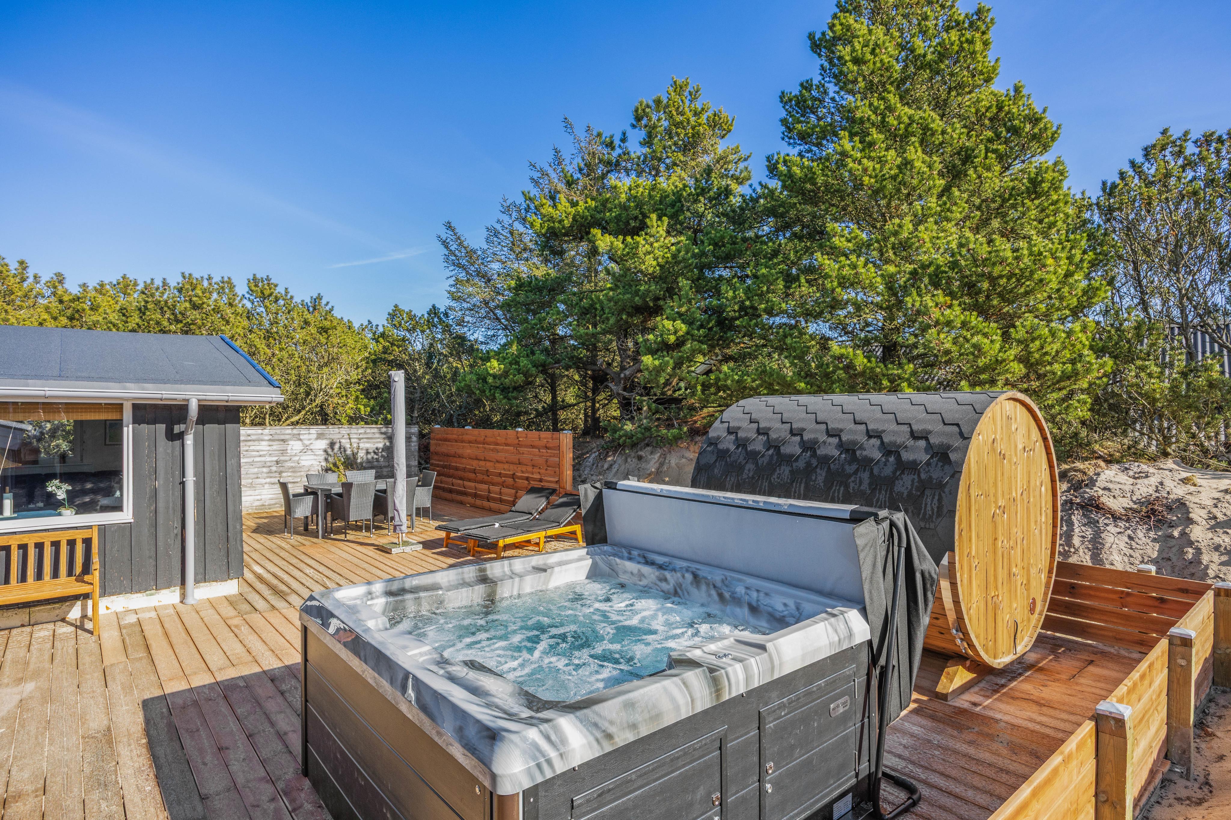Schönes Ferienhaus in Blåvand mit Außensauna, Außenwhirlpool und Brennofen