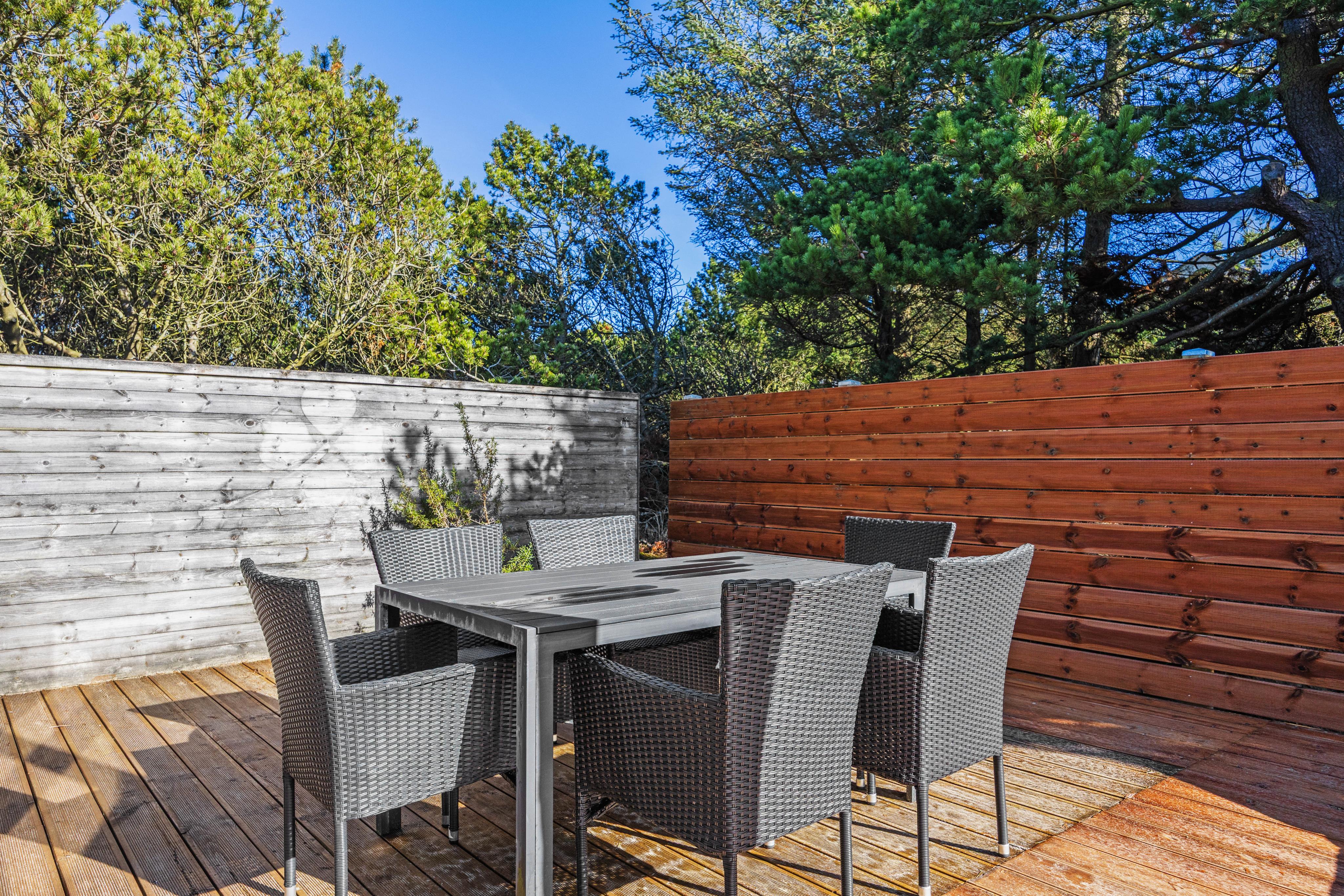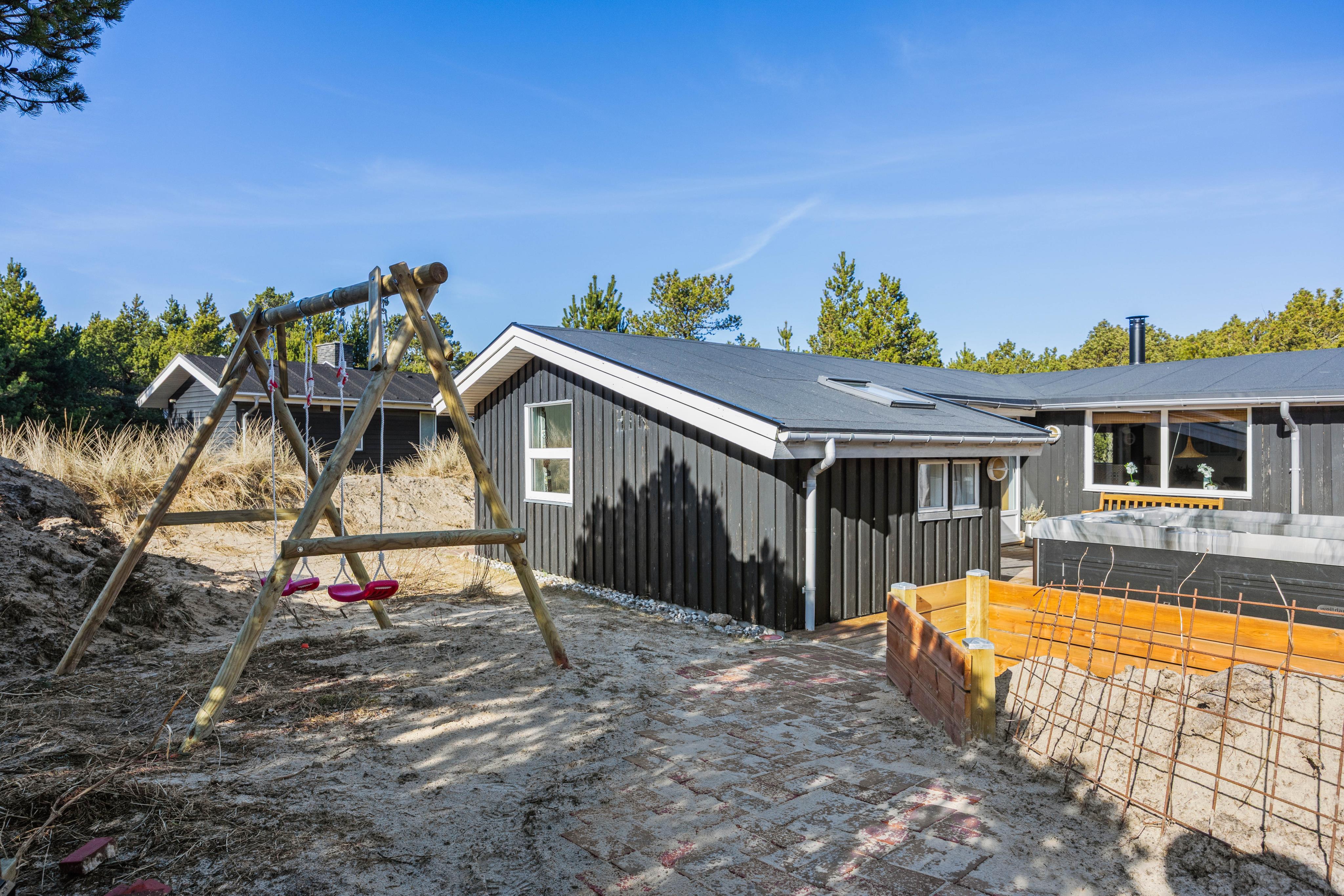 Das Ferienhaus in Blåvand liegt auf einem beeindruckenden 3000 m² großen Naturgrundstück, das zum Entdecken und Erholen einlädt. Auf der offenen Terrasse oder der abgeschirmten Variante könnt ihr die Sonne in vollen Zügen genießen und entspannte Stunden im Freien verbringen. Die Kinder können sich auf der Schaukel oder im Sandkasten austoben, während du die Ruhe und Entspannung auf den Gartenmöbeln genießt, und ihr könnt den Tag mit leckerem Urlaubsessen vom Gasgrill des Hauses ausklingen lassen.