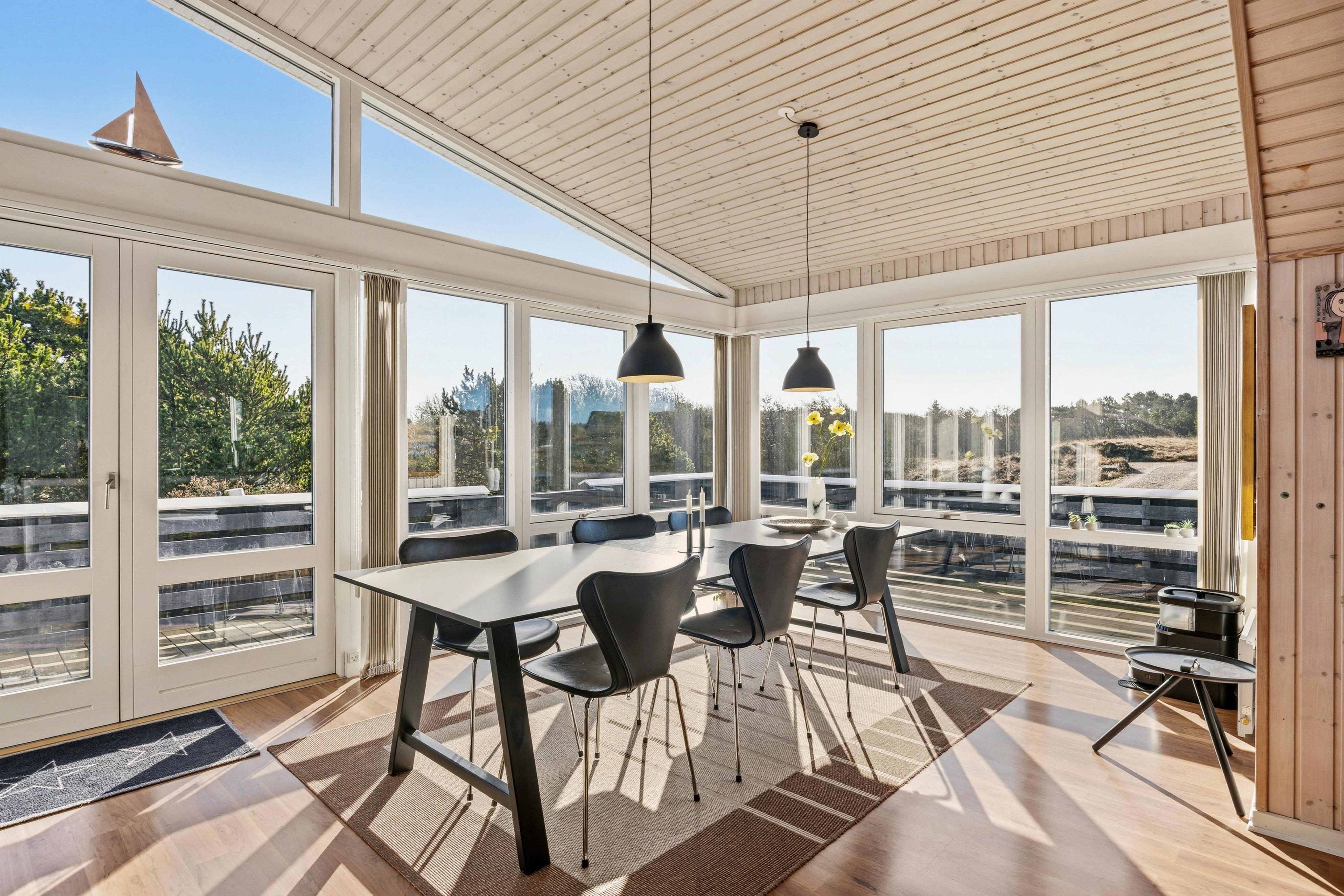 Auf einem wunderschönen Dünengrundstück, auf Nørre Meldbjergdal 11, liegt dieses gepflegte und mit Sauna, Kaminofen und Wärmepumpe gut ausgestattete Sommerhaus. Bis zu 6 Personen finden auf insgesamt 85 m² ausreichend Platz, um es sich gemütlich zu machen. Hervorzuheben ist auch der schöne und großzügige Terrassenbereich mit teilweise überdachter Fläche, sodass ihr hier viel Zeit an der frischen Luft verbringen könnt, unabhängig von der Witterung.