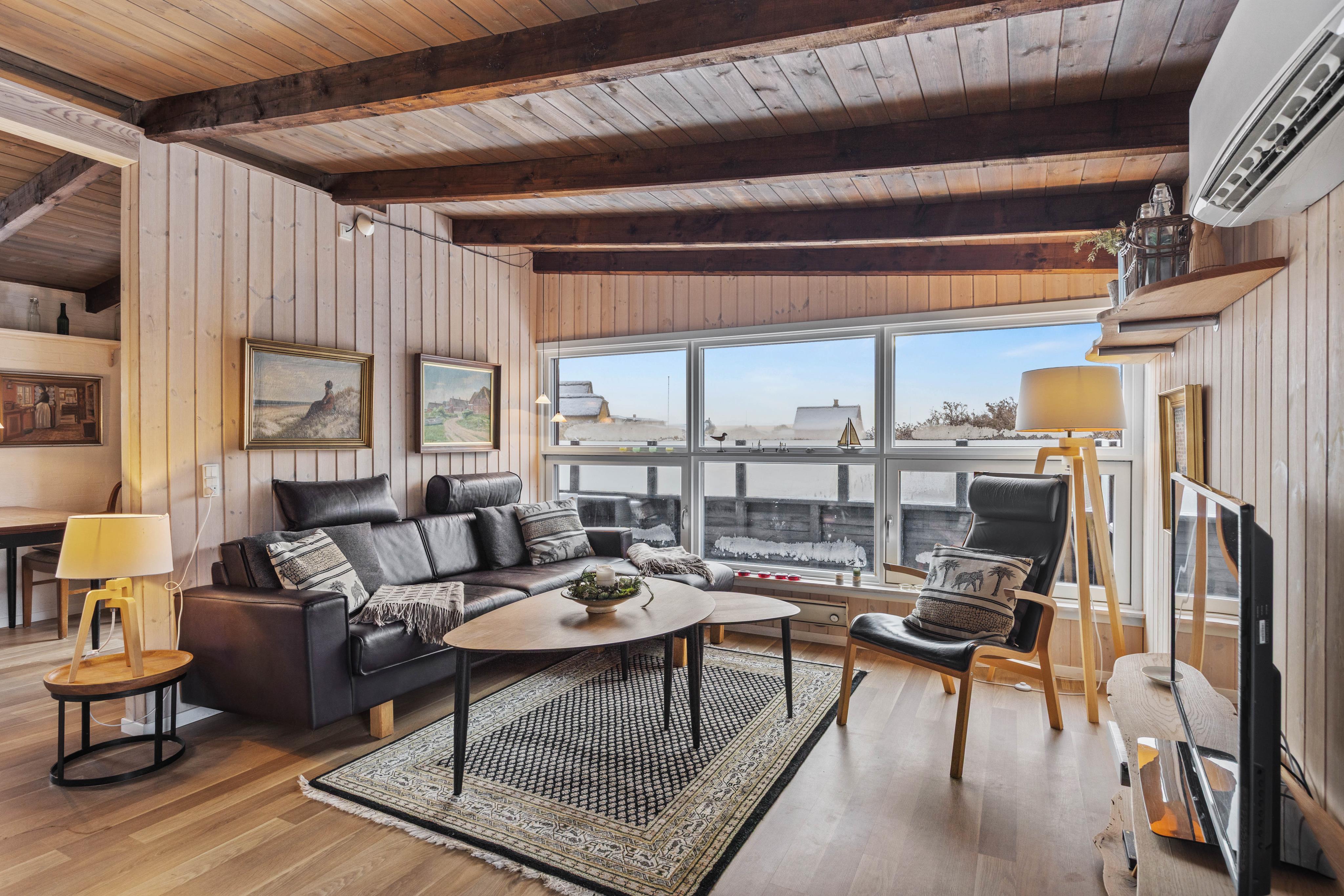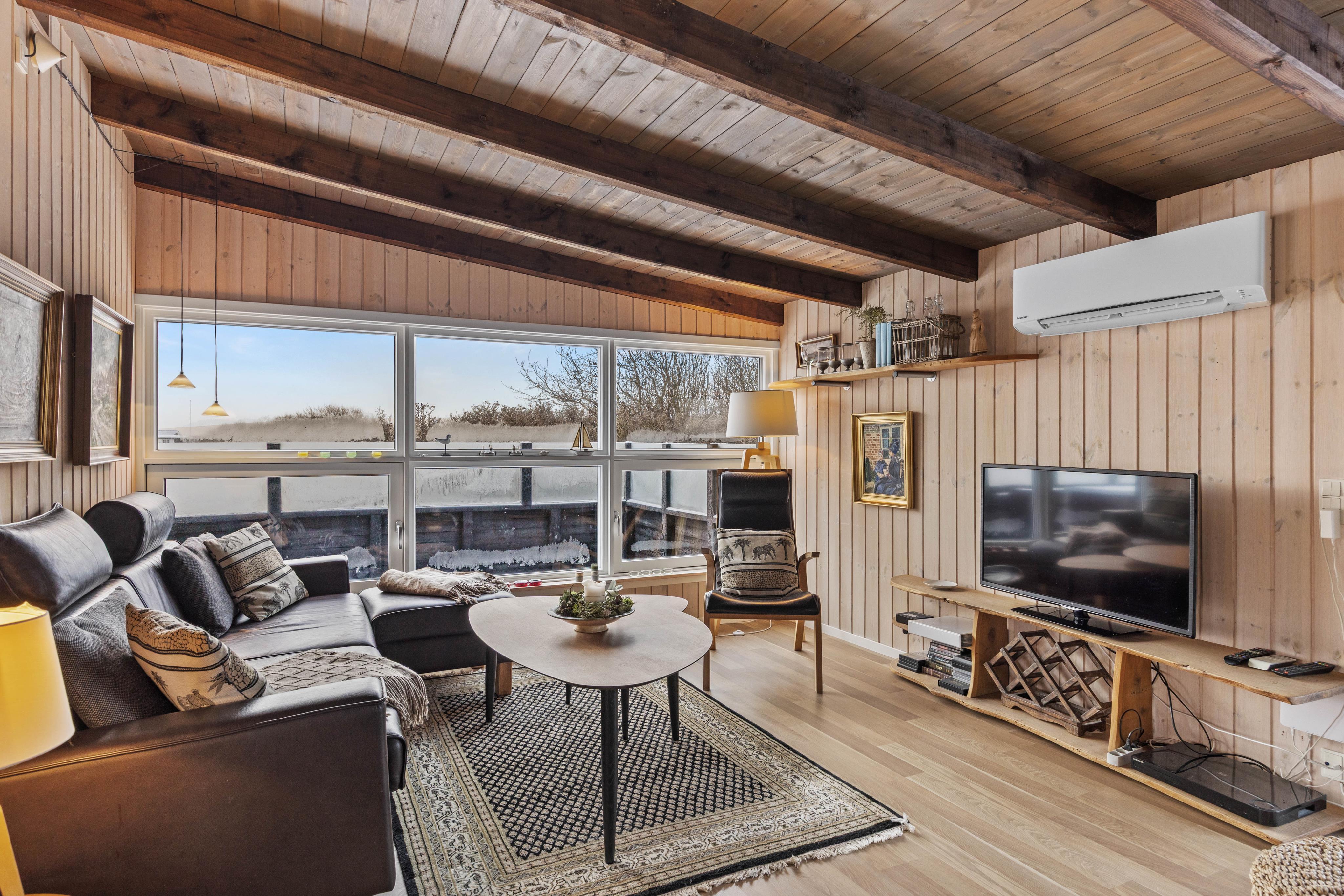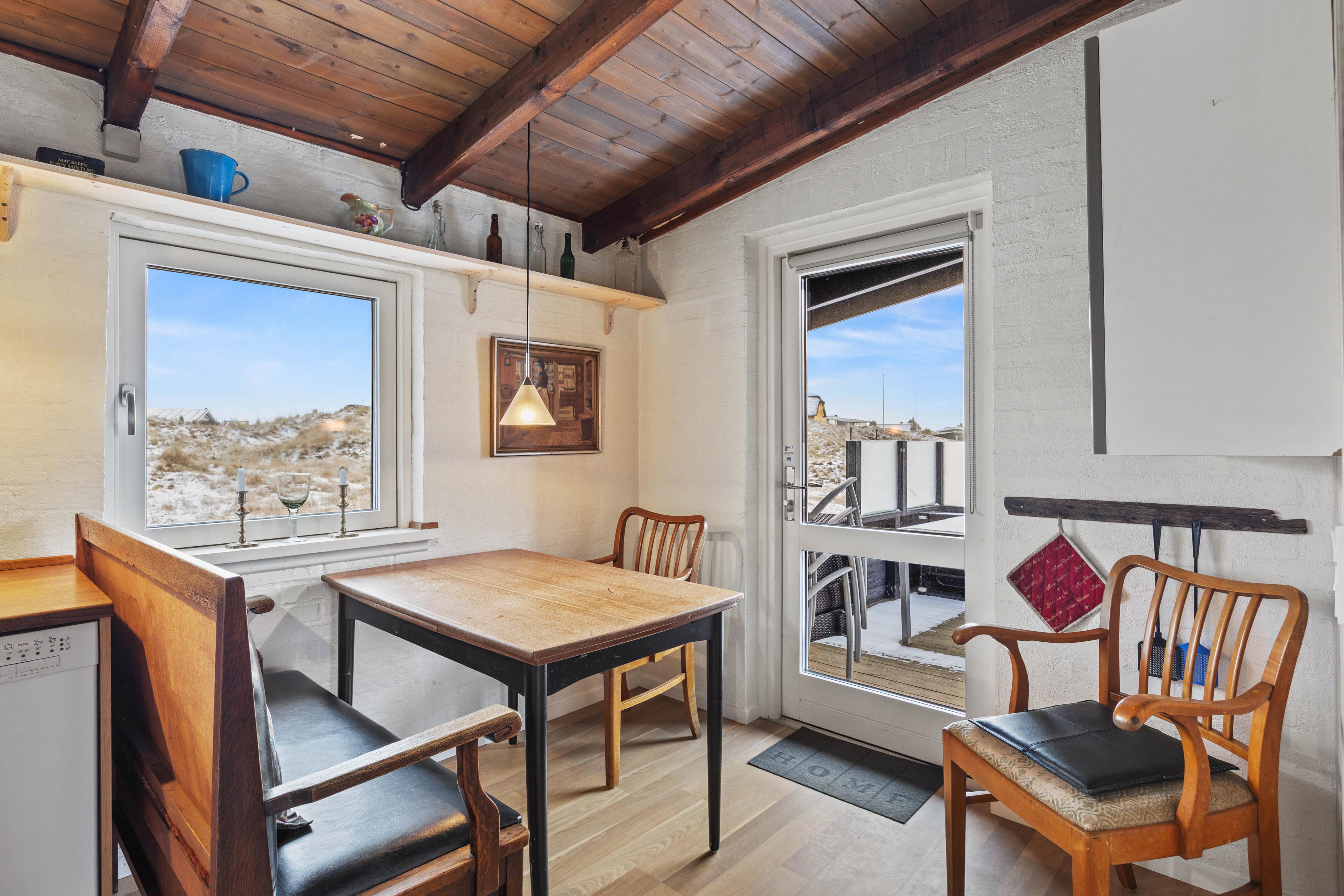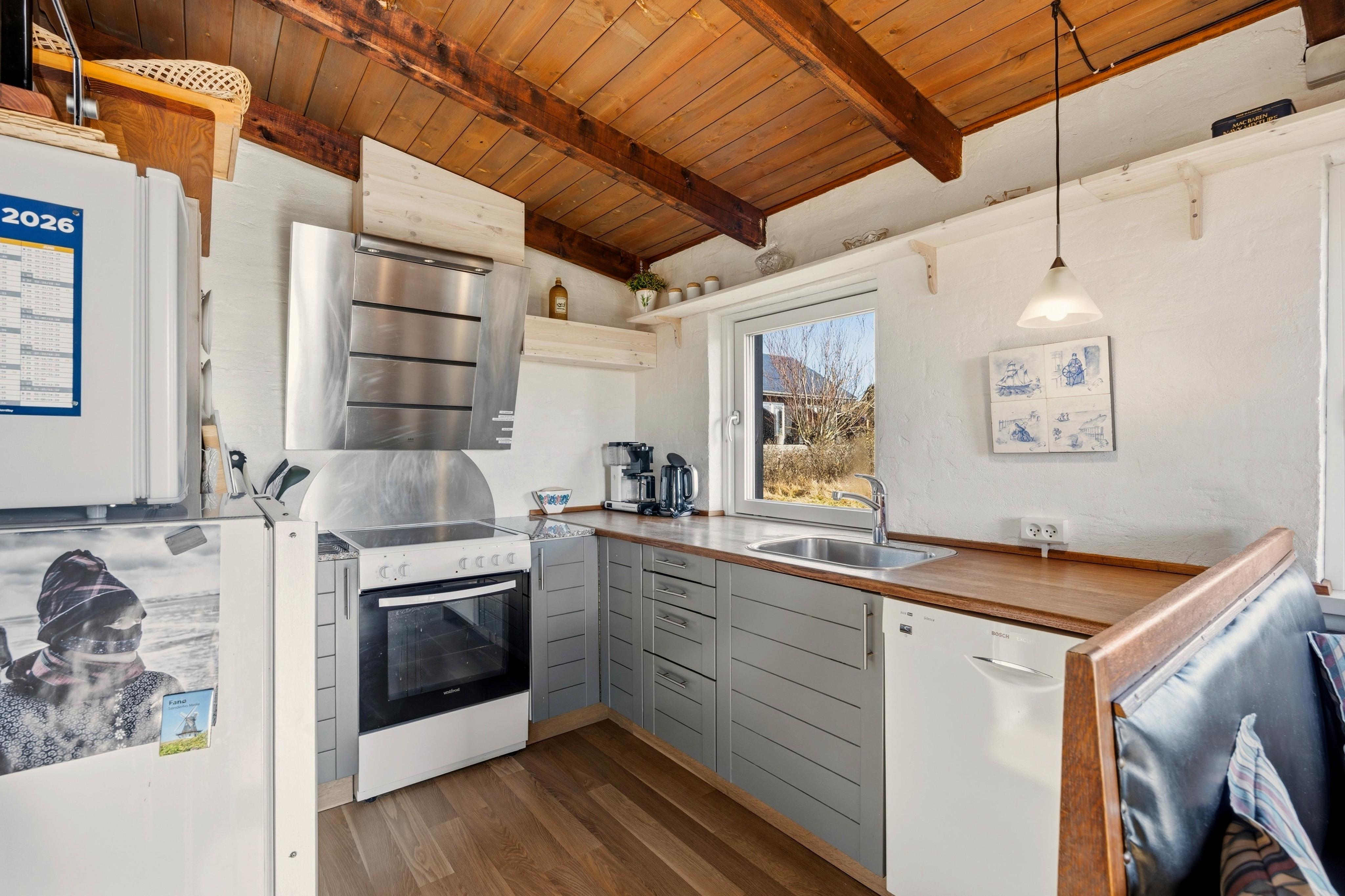 Der Küchenbereich umfasst eine gut ausgestattete Küche mit Essbereich, welche offen mit dem Wohnzimmer verbunden ist. Hier könnt ihr euch entspannt zurücklehnen und die Wärme sowie das leise Knistern des Holzofens im Hintergrund genießen. Das Ferienhaus auf Dalen 2 verfügt zusätzlich zum Kamin auch über eine moderne und energiesparende Wärmepumpe, die für eine schnelle und effiziente Beheizung der Räumlichkeiten sorgt.