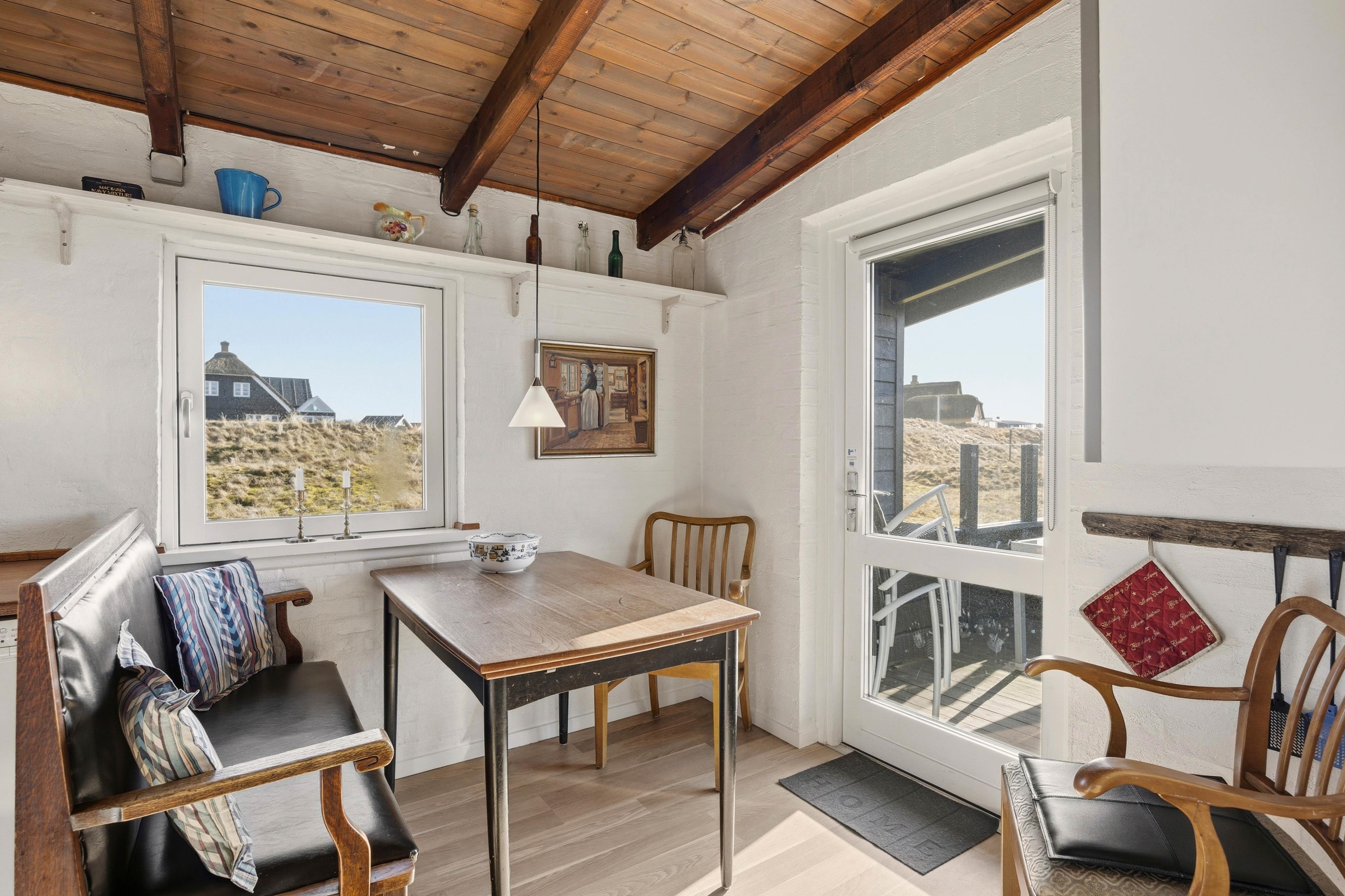 Vom Wohnzimmer aus gelangt ihr auf eine kleine, nach Westen ausgerichtete Terrasse, die gut hinter den Klitrosen versteckt ist, was euch eine schöne Privatsphäre bietet. Entspannt euch hier ganz ungestört und lasst euch vom Duft der Dünenrosen sowie der frischen Meeresluft empfangen. Von dieser Terrasse habt ihr Zugang zum Schuppen, in dem sich eine Waschmaschine sowie ein Trockner befinden.