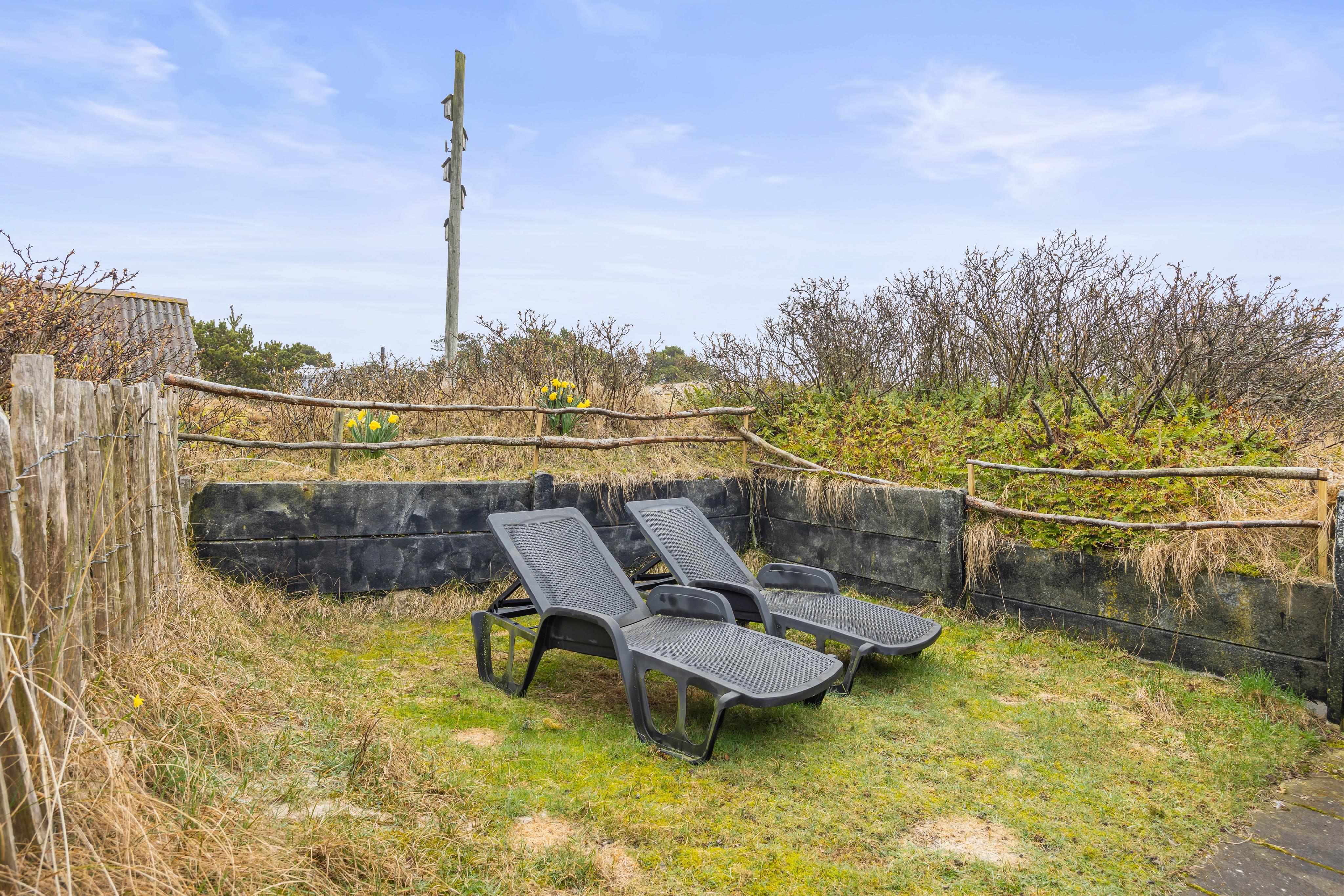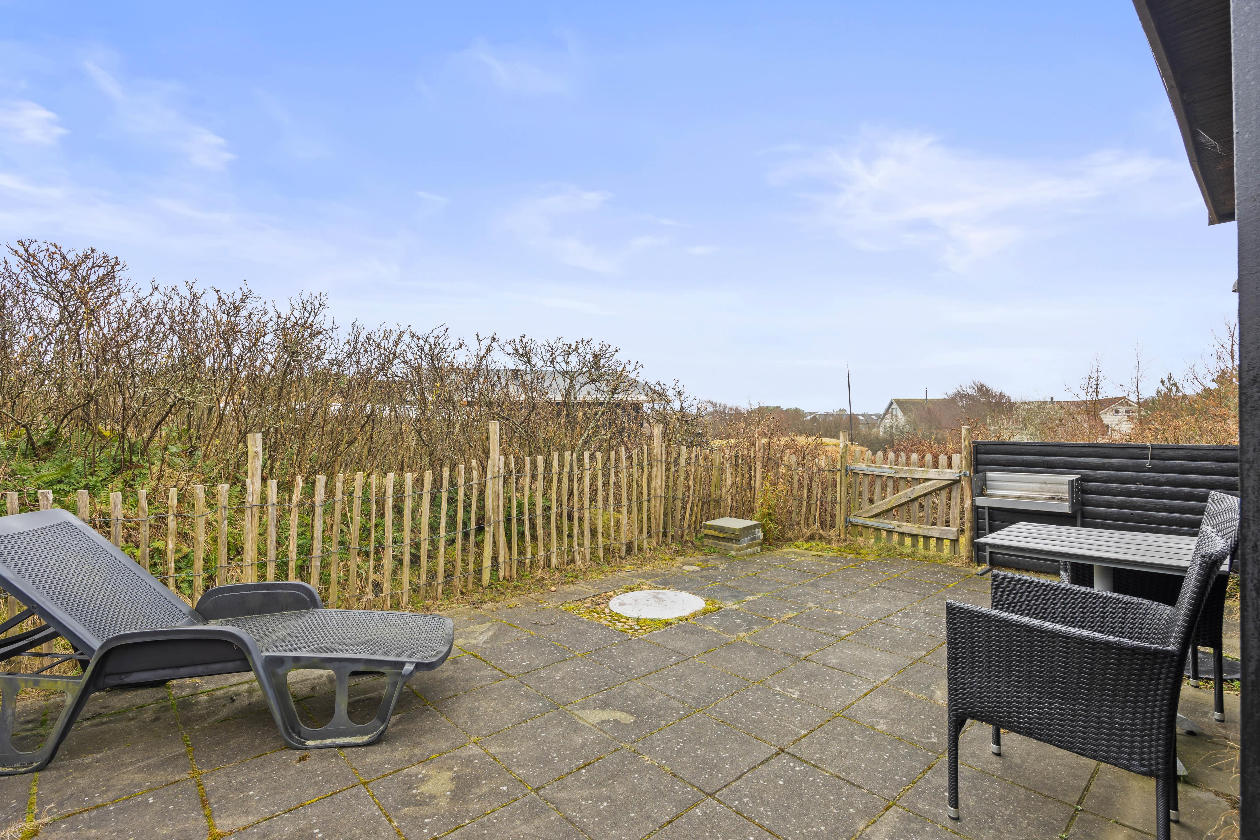 Draußen erwartet dich ein schönes Dünengrundstück, das sofort Urlaubsstimmung aufkommen lässt. Auf der abgeschirmten Terrasse kannst du dich windgeschützt zurücklehnen, lesen oder den Tag bei einem Essen im Freien ausklingen lassen. Besonders praktisch, wenn du gern ungestört sitzt: Die Terrasse kann rundum geschlossen werden. Für genussvolle Abende steht dir außerdem ein Grill zur Verfügung, damit du unkompliziert draußen kochen und die langen Sommerabende auskosten kannst.