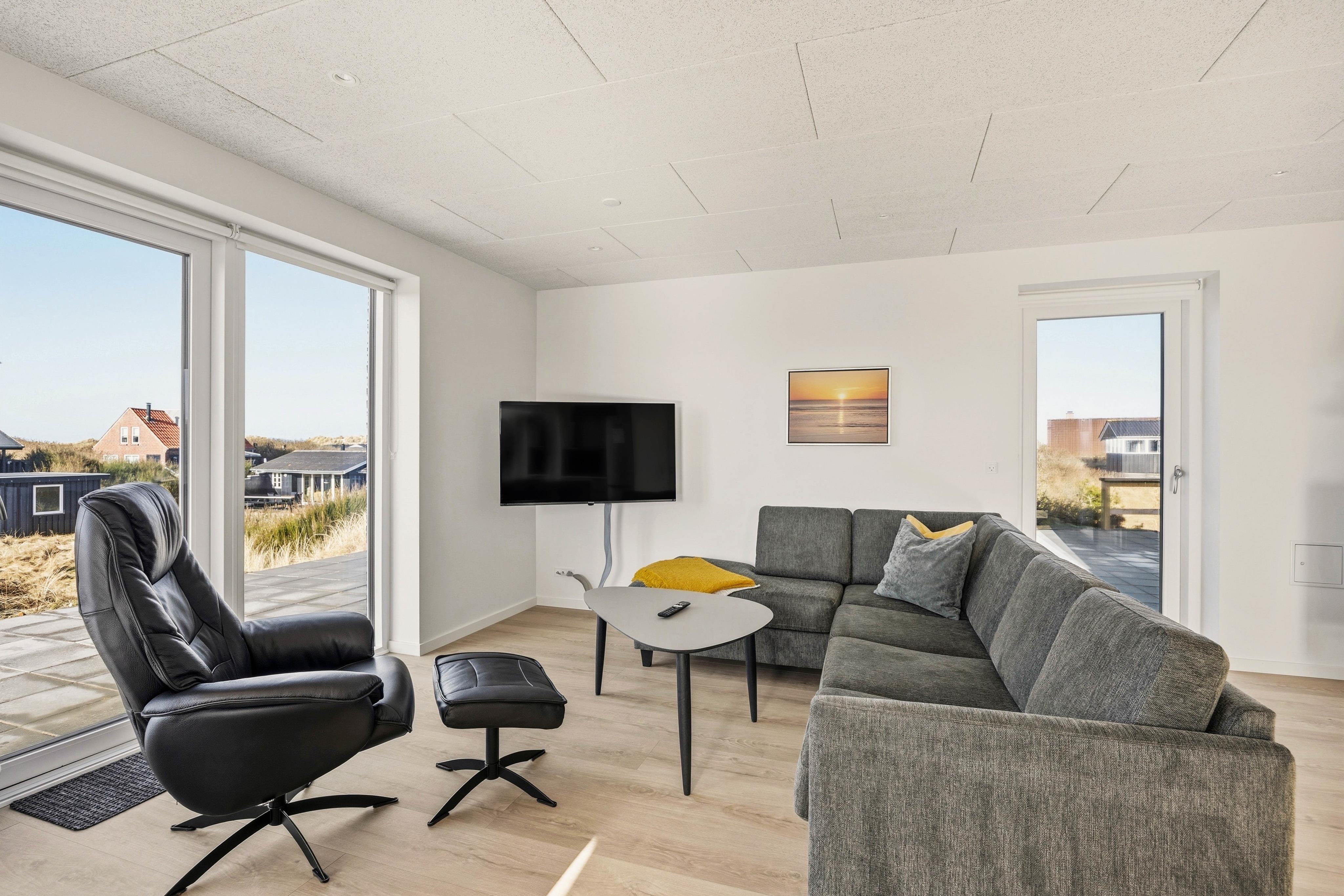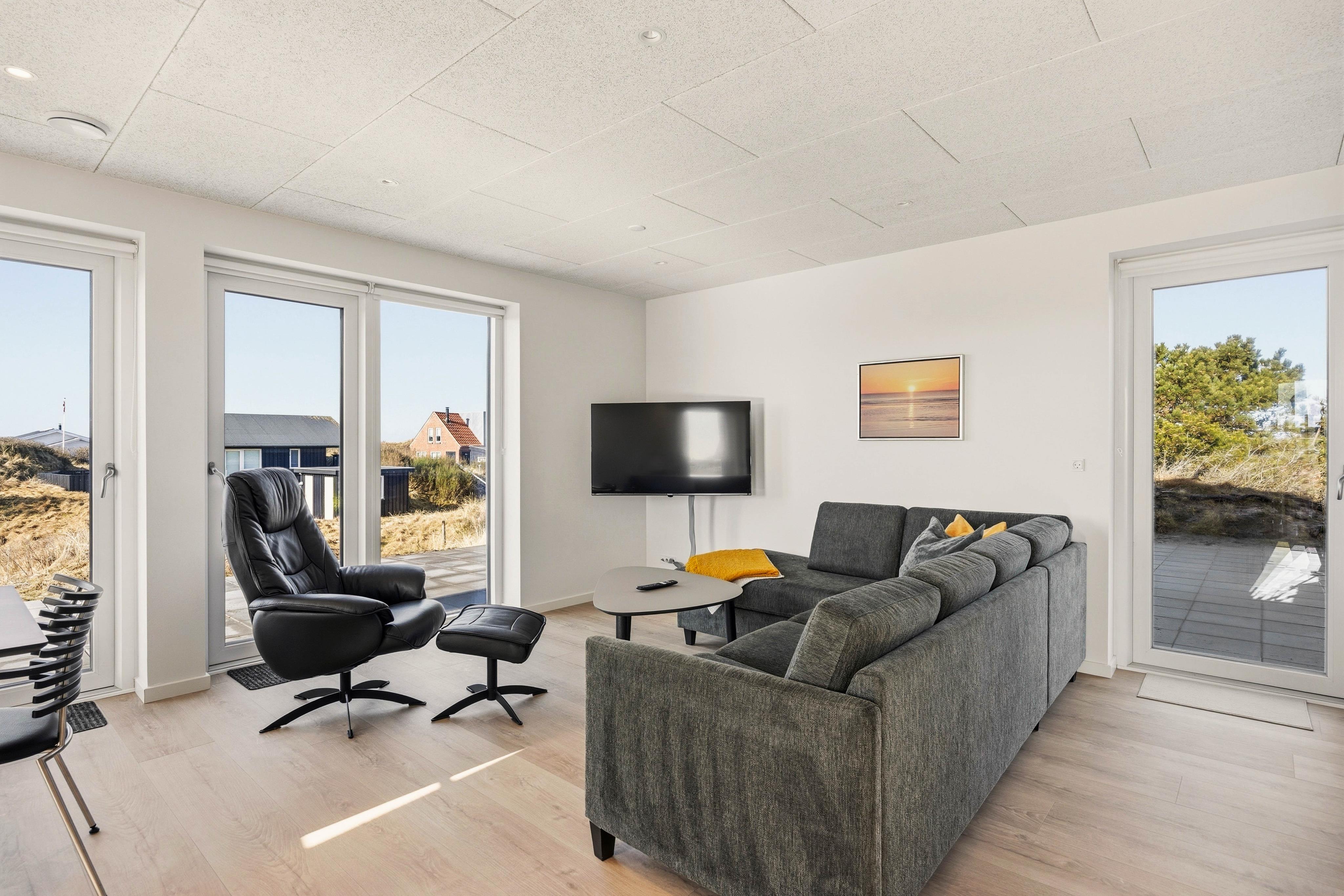 Rund um euer Ferienhaus lädt die offene Terrasse mit Gartenmöbeln und Liegestühlen zum Entspannen ein. Hier könnt ihr die frische Nordseeluft genießen, während euer Hund auf dem Grundstück sein Plätzchen findet. In nur 200 Metern erreicht ihr den breiten Sandstrand von Rindby, der zu Spaziergängen, Badespaß und erholsamen Stunden am Meer einlädt.
