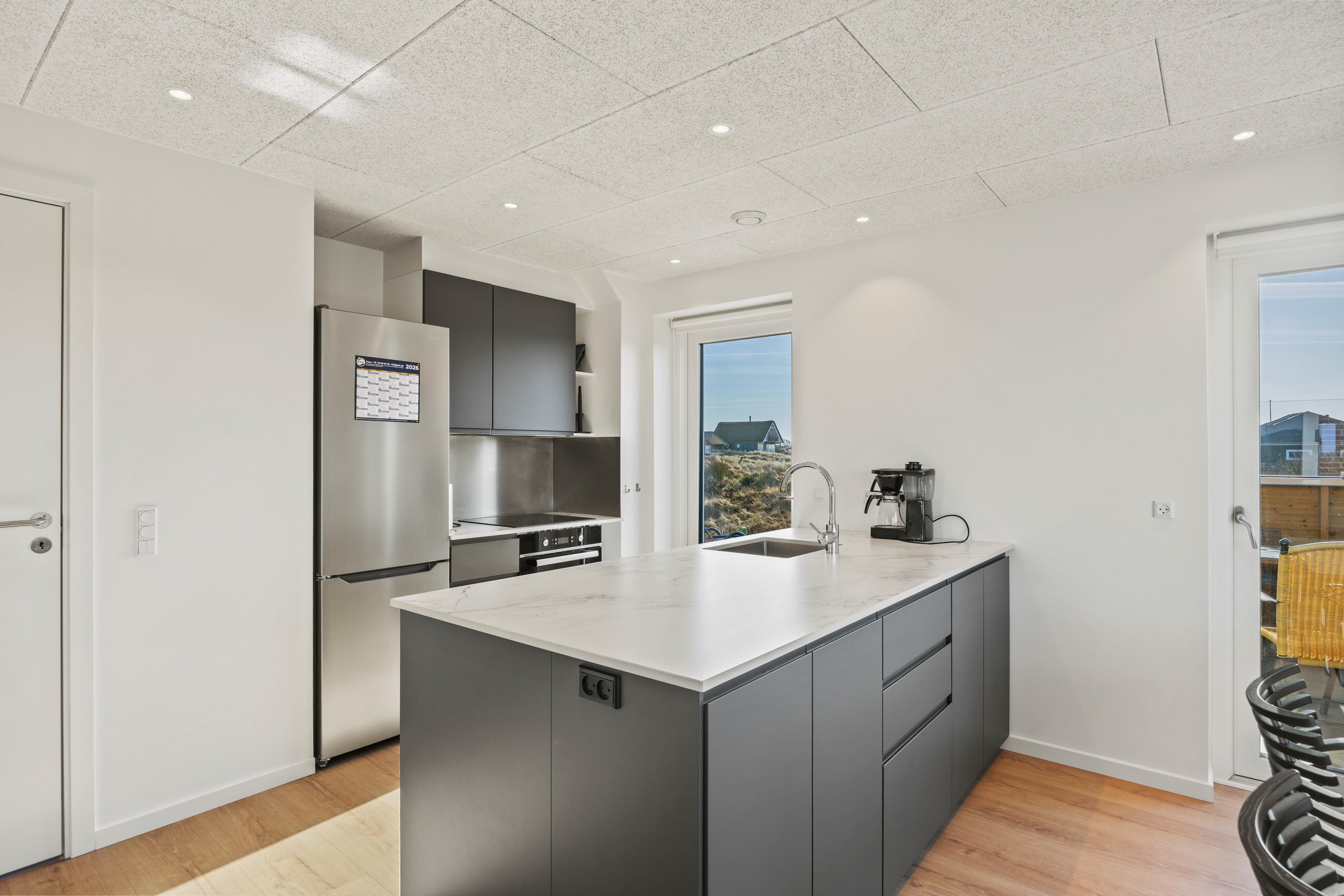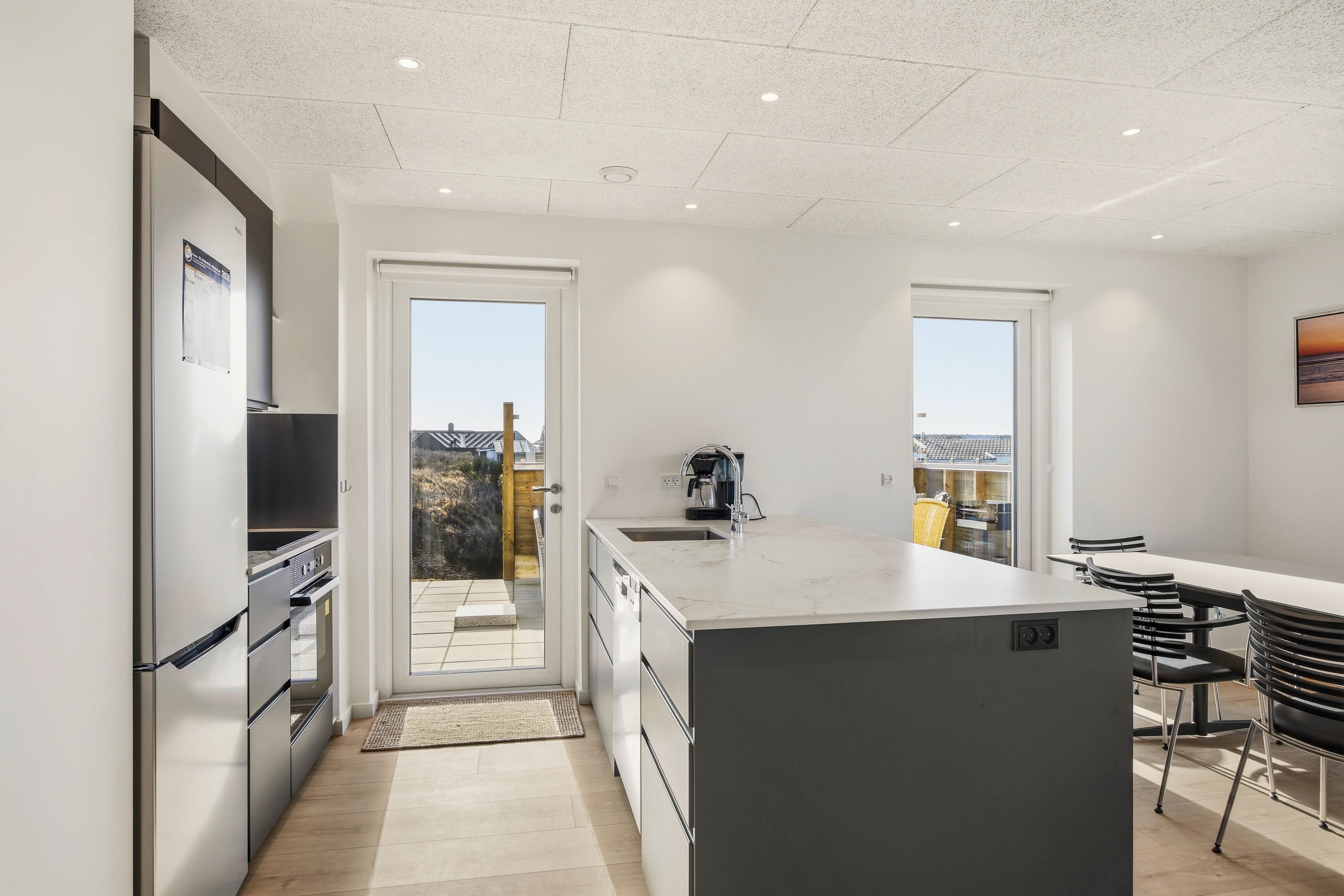 Die offene Küche ist bestens ausgestattet und macht das Zubereiten eurer Mahlzeiten zu einem leichten Vergnügen. Eine Spülmaschine sorgt dafür, dass der Abwasch schnell erledigt ist, und mit drei Badezimmern gibt es auch bei voller Belegung immer genügend Raum. Für noch mehr Erholung stehen euch eine private Sauna und ein Whirlpool zur Verfügung, in denen ihr euch nach einem langen Strandtag entspannen könnt.