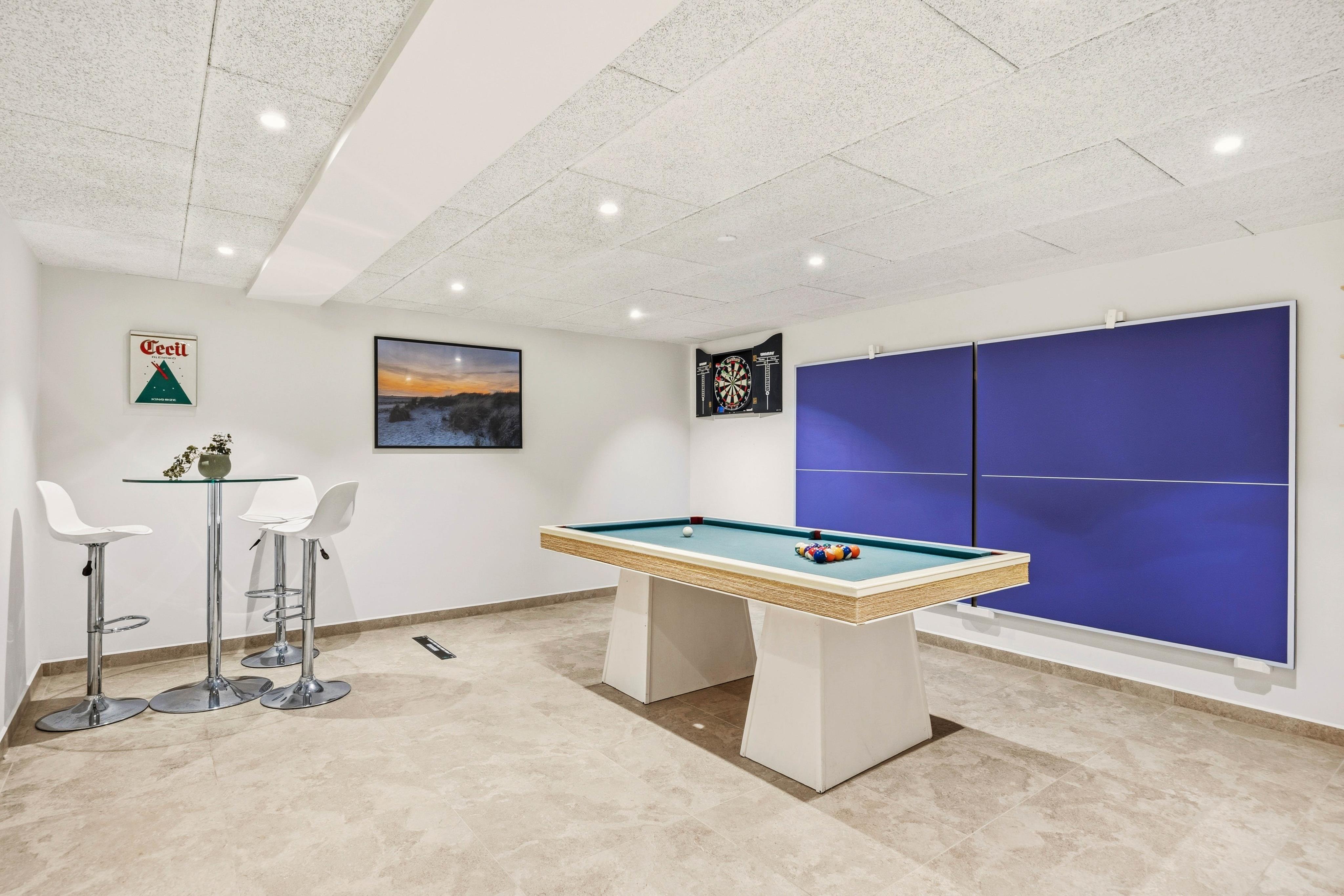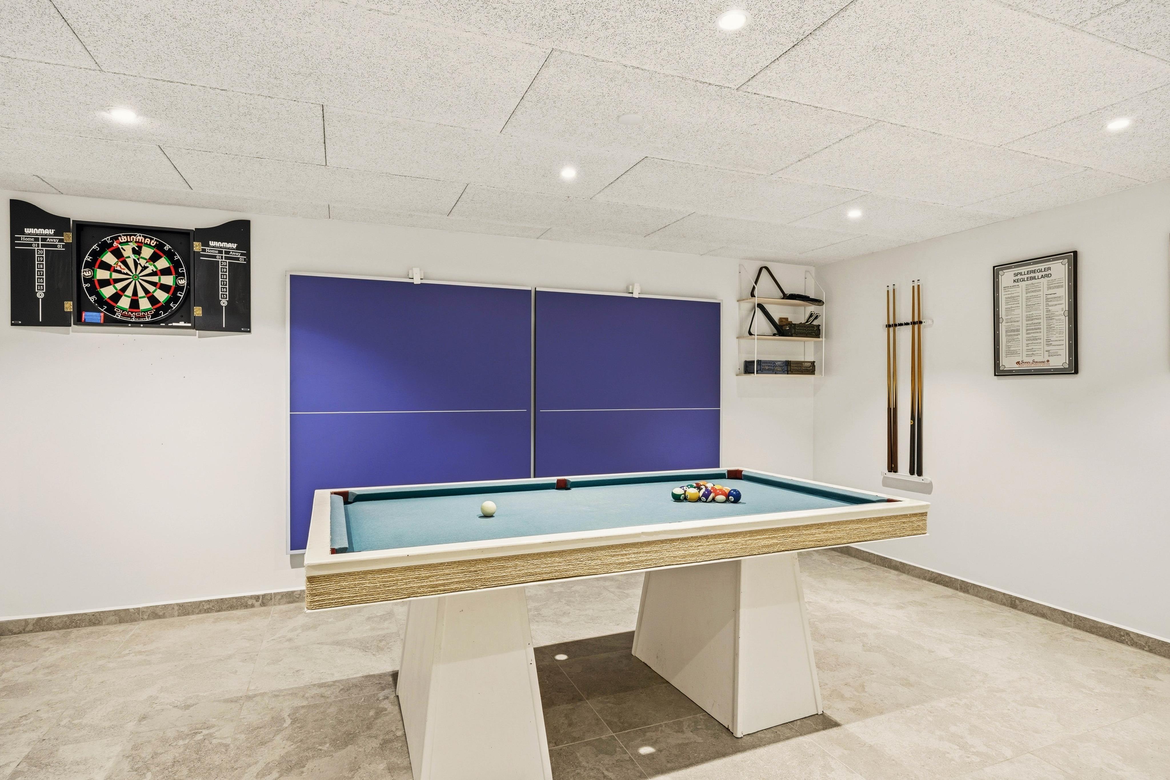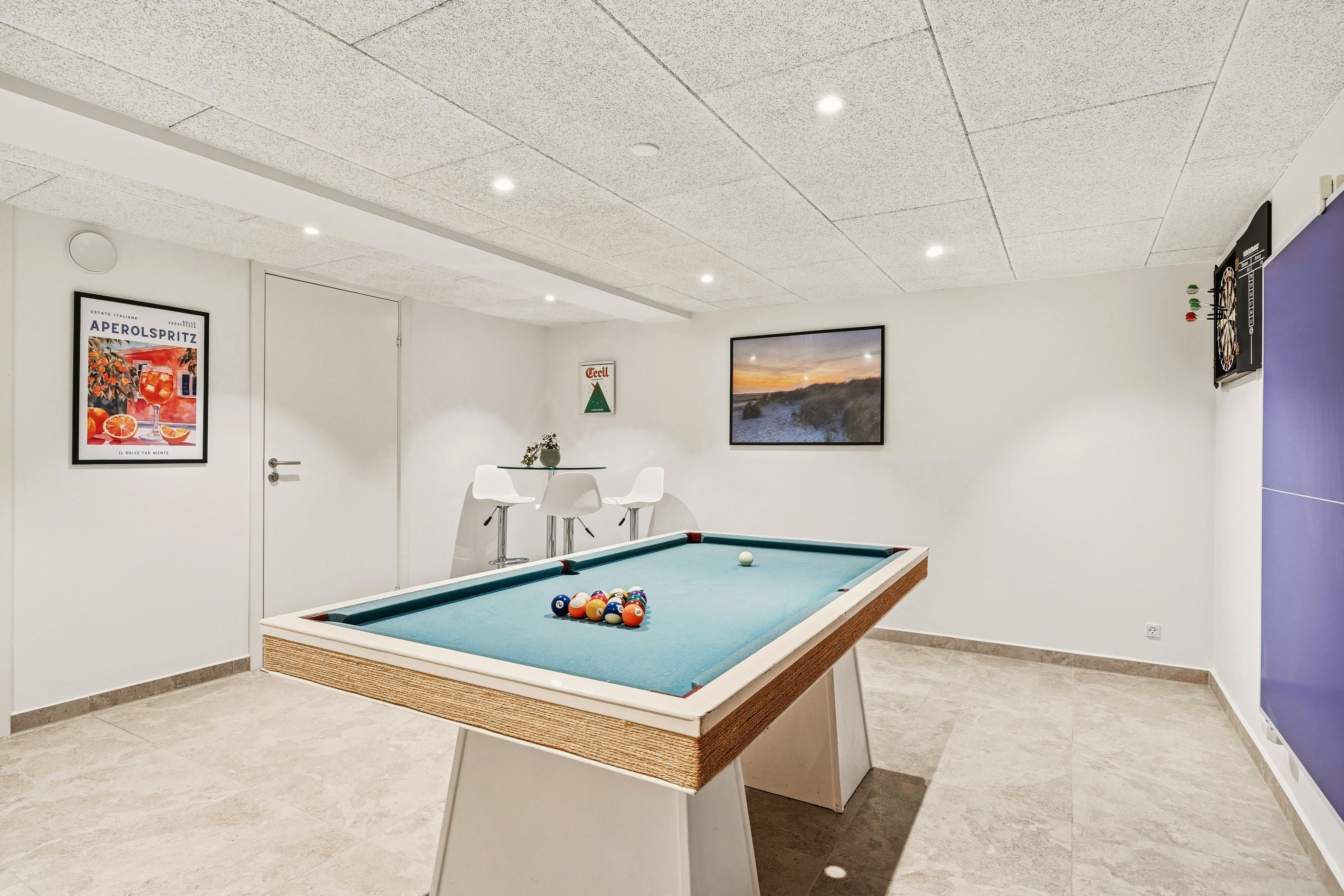 Ein echtes Highlight ist der Aktivitätsraum, in dem ihr Billard spielen und viele unterhaltsame Stunden miteinander verbringen könnt – ideal für Tage, an denen das Wetter einmal nicht zum Draußensein einlädt. Zusätzlich sorgen Waschmaschine und Trockner für praktischen Komfort, gerade wenn ihr länger bleibt.
