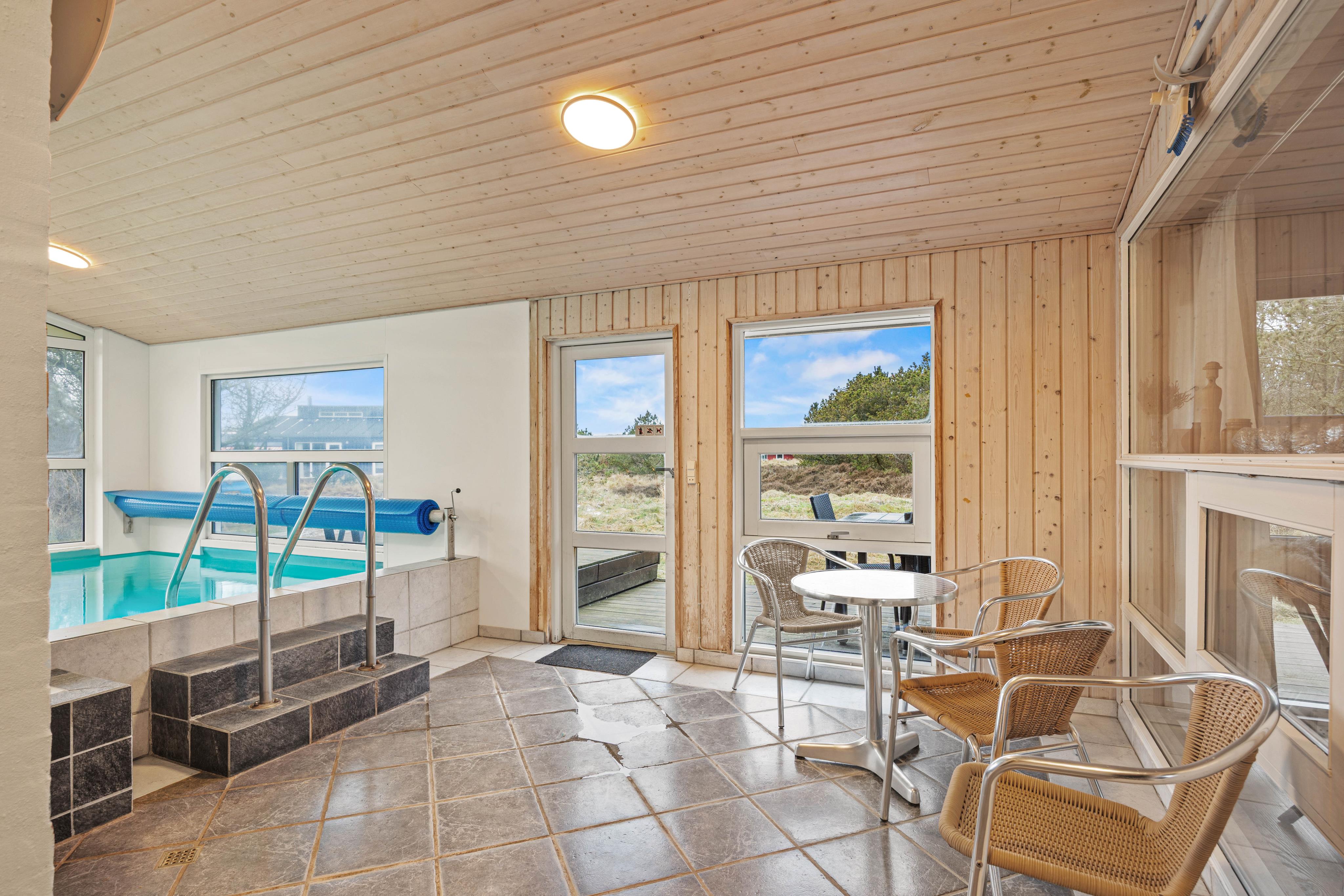 Im 18 m2 großen Swimmingpool könnt ihr den ganzen Tag lang planschen. Mit Zugang zu einem Whirlpool und einer Sauna habt ihr auch die Möglichkeit für Entspannung und Wellness. Im Ferienhaus gibt es zwei schöne Badezimmer mit Fußbodenheizung sowie eine Waschmaschine und einen Wäschetrockner, damit ihr eure Handtücher während eures Urlaubs auffrischen könnt.