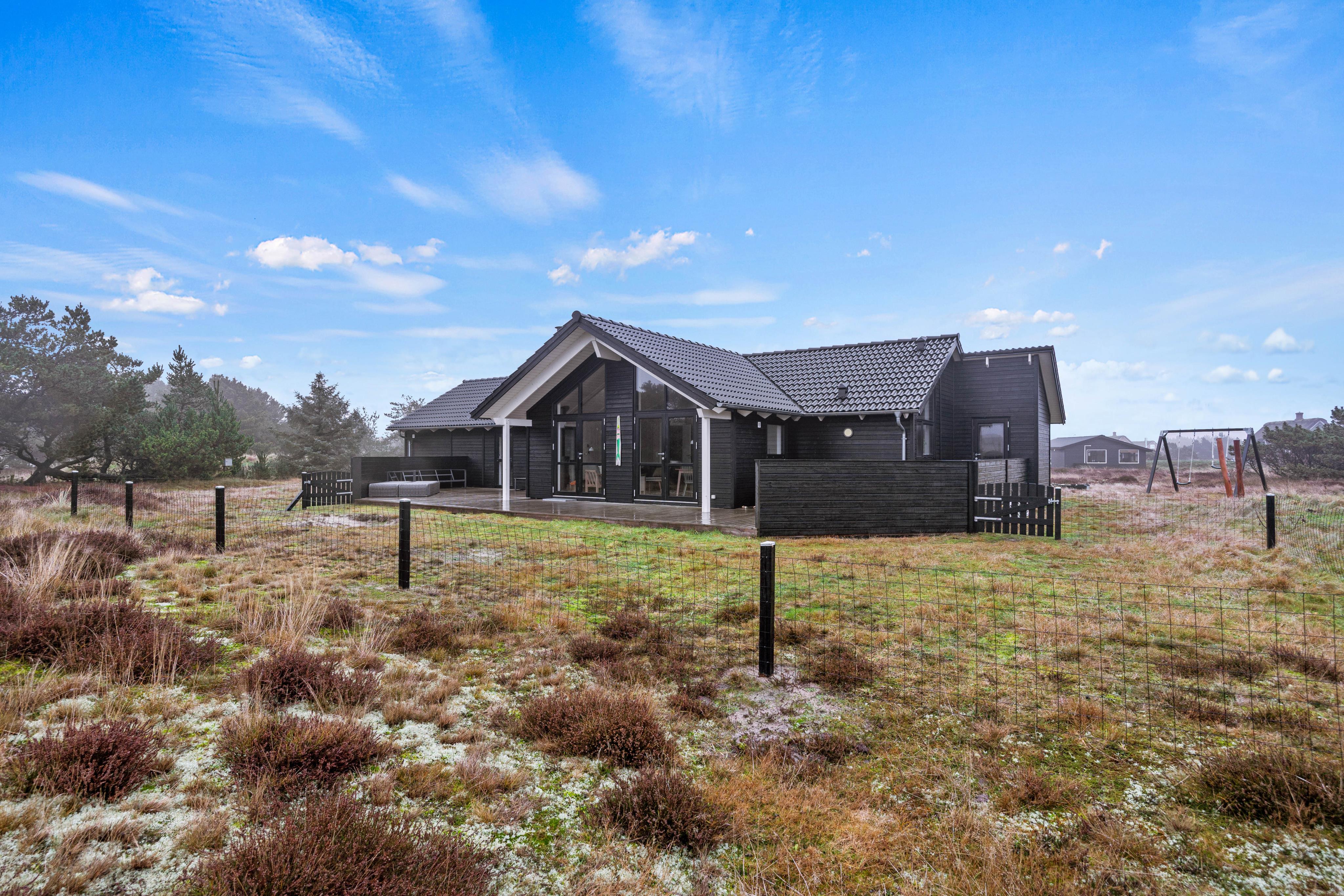 Das Ferienhaus liegt auf einem weitläufigen Naturgrundstück, das euch viel Platz zum Spielen, Entspannen und Erkunden bietet. Für Familien ist besonders der Außenbereich ein Pluspunkt, denn mit Schaukel und Sandkasten kommen auch die jüngsten Personen voll auf ihre Kosten. Mehrere Terrassenbereiche ermöglichen euch, jede Tageszeit optimal zu genießen. Die offene Terrasse lädt zu sonnigen Stunden ein, während die geschlossene Terrasse windgeschützte Momente bietet. Der Strand ist nur 900 Meter entfernt, sodass ihr jederzeit spontan dorthin aufbrechen könnt. Einkäufe erledigt ihr bequem nach 700 Metern.