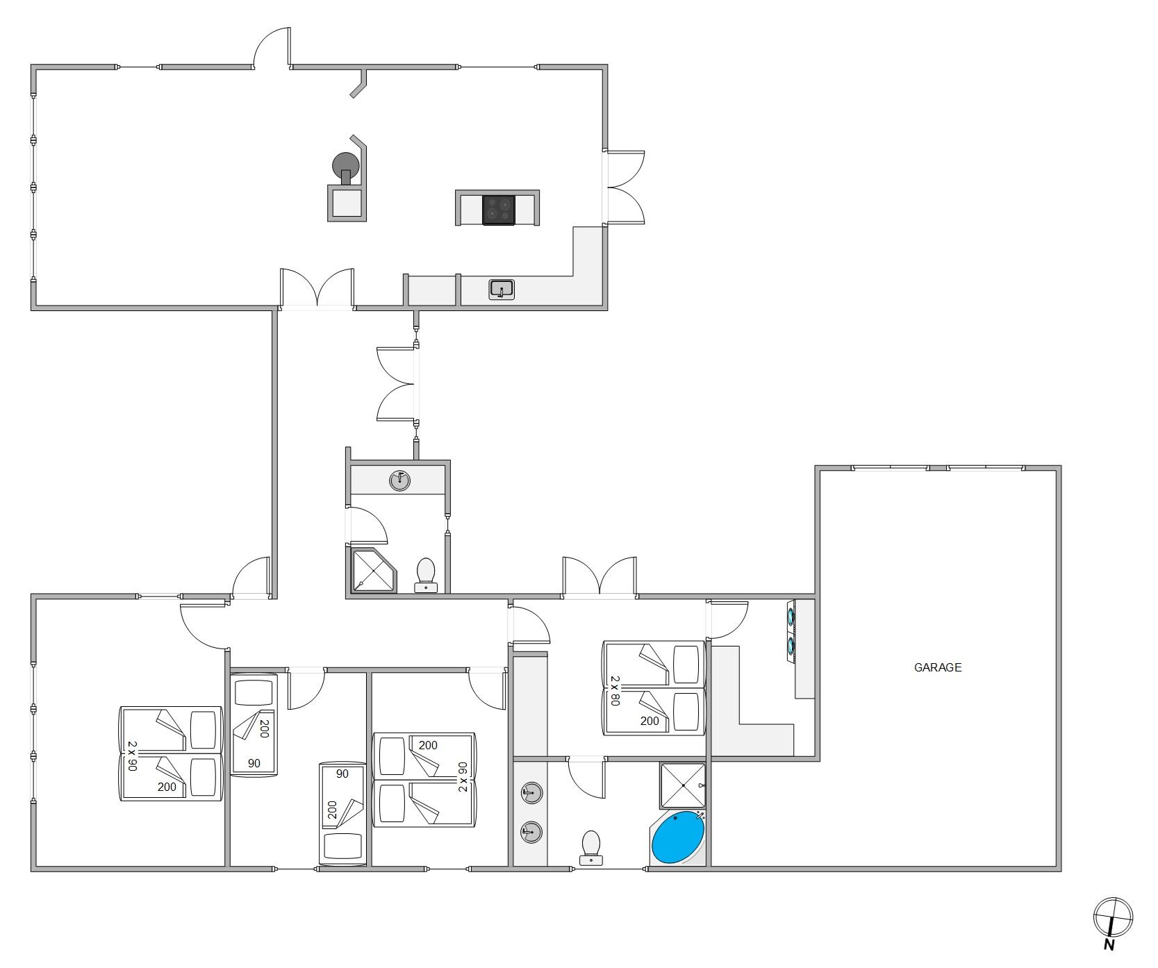 Auf der offenen Terrasse könnt ihr die Sonne und frische Meeresluft genießen, während die Gartenmöbel und Sonneliegen nur darauf warten benutzt zu werden. Der Garten ist ein Naturgrundstück und verfügt über Sandkasten und Schaukeln für die kleinen Gäste. Es sind vom Haus aus nur 200 m zum Meer. Europas größten Sandstrände findet ihr in Lakolk 5000 m entfernt und Sønderstrand 4550 m Entfernung zum Ferienhaus. Einkaufsmöglichkeiten erreicht ihr auch zu Fuß nach nur 2500 m.