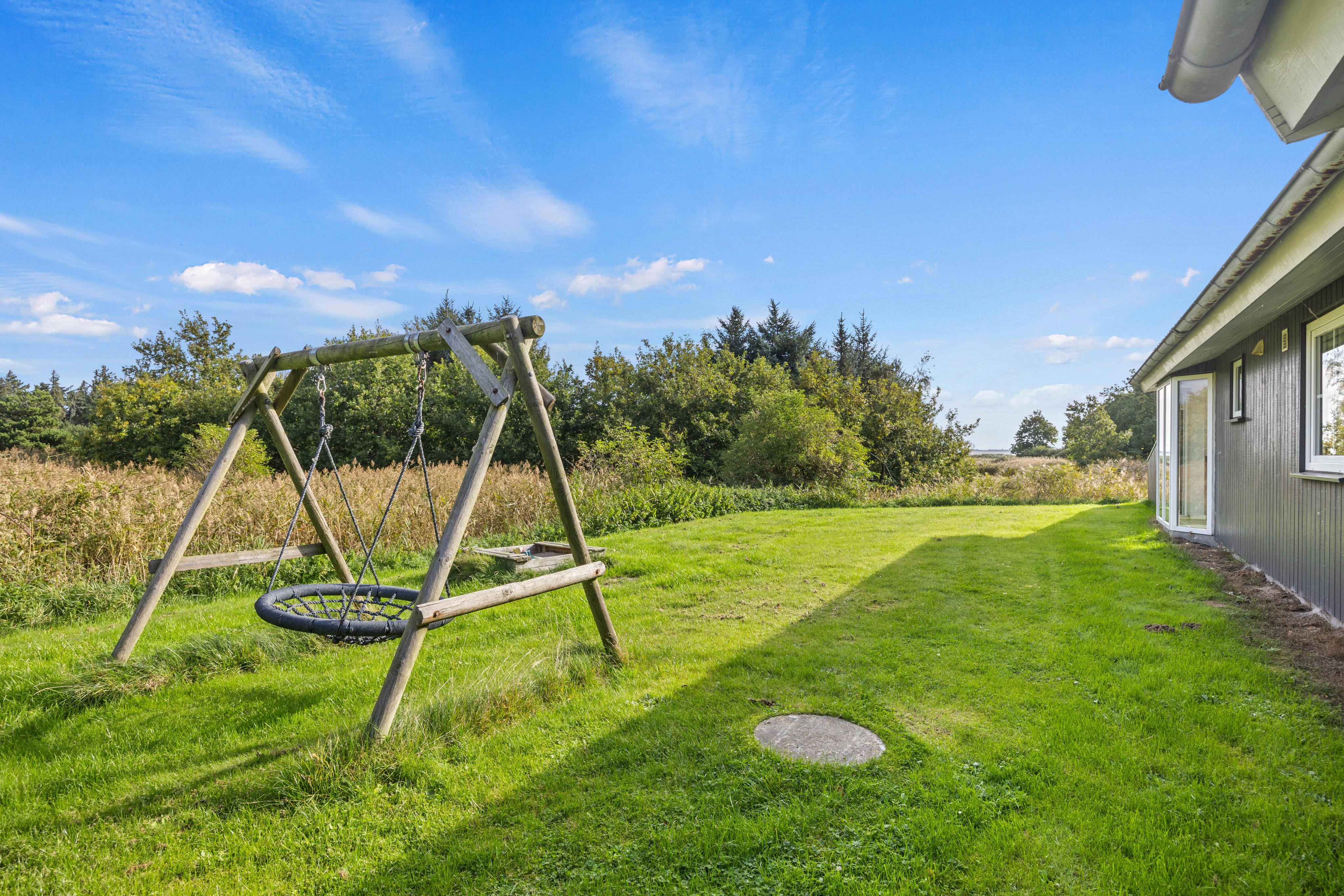 Auf dem 2500 m² großen Naturgrundstück erwartet euch ein wahres Paradies für Kinder: eine Schaukel und ein Sandkasten bieten Spiel und Spaß. Genießt den Panoramablick, während ihr im Freien die frische Luft einatmet. Der nur 250 Meter entfernte Strand des Wattenmeeres lässt die Herzen von Wasserliebhabern höher schlagen. Ein Spaziergang entlang des Wassers oder ein Ausflug in die Natur sorgt für Erholung pur. Die mit dem Auto befahrbaren Strandabschnitte Lakolk (5500 Meter) sowie Sonderstrand (3500 Meter) sind immer einen Ausflug an die tosende Nordsee der dänischen Westküste wert.
