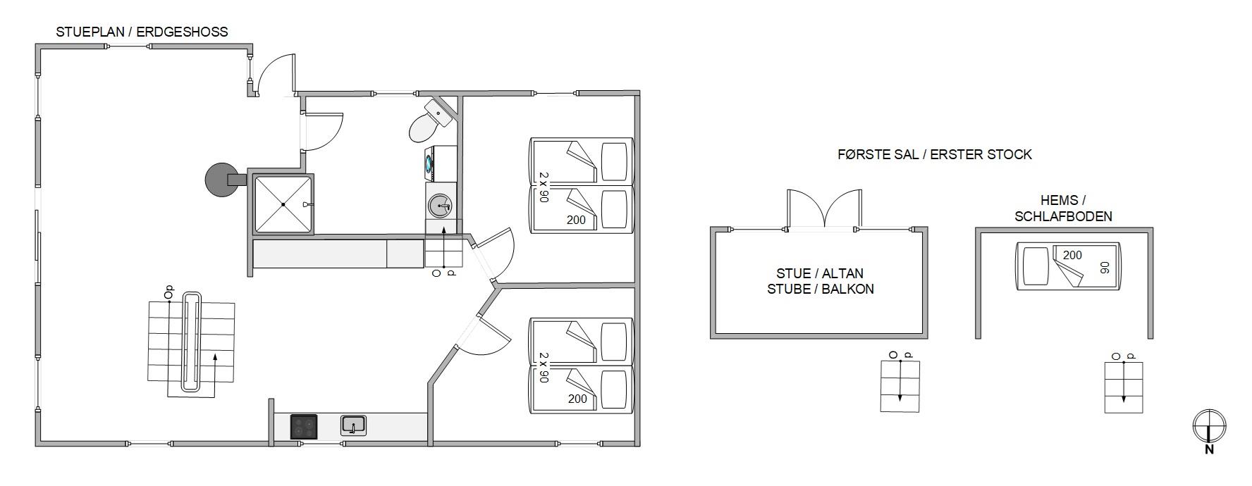 In der unteren Etage ist ein schönes, gepflegtes Badezimmer mit Waschmaschine, zwei geräumigen Schlafzimmer und ein gemütliches Wohnzimmer mit offener und funktioneller Küche. In dieser wird das Kochen zu einem Kinderspiel, vor allem weil die Geschirrspülmaschine den langweiligen Abwasch übernimmt. Macht es euch bequem auf der qualitativen Sofagarnitur, die direkt vor dem Kaminofen platziert wurde. Hier könnt ihr ein Spieleabend machen, einen guten Krimi lesen und den Gedanken freien lauf lassen. An kühleren tagen sorgt die Kosten und Energiesparende Wärmepumpe neben den Kaminofen für behagliche Temperaturen. Die Treppe im Wohnzimmer führt zum Schlafboden, indem ihr einen der 5 Schlafmöglichkeiten vorfindet und sogar eine zusätzliche kleine Stube mit dazugehörigem Balkon gibt es in der zweiten Etage zu entdecken.