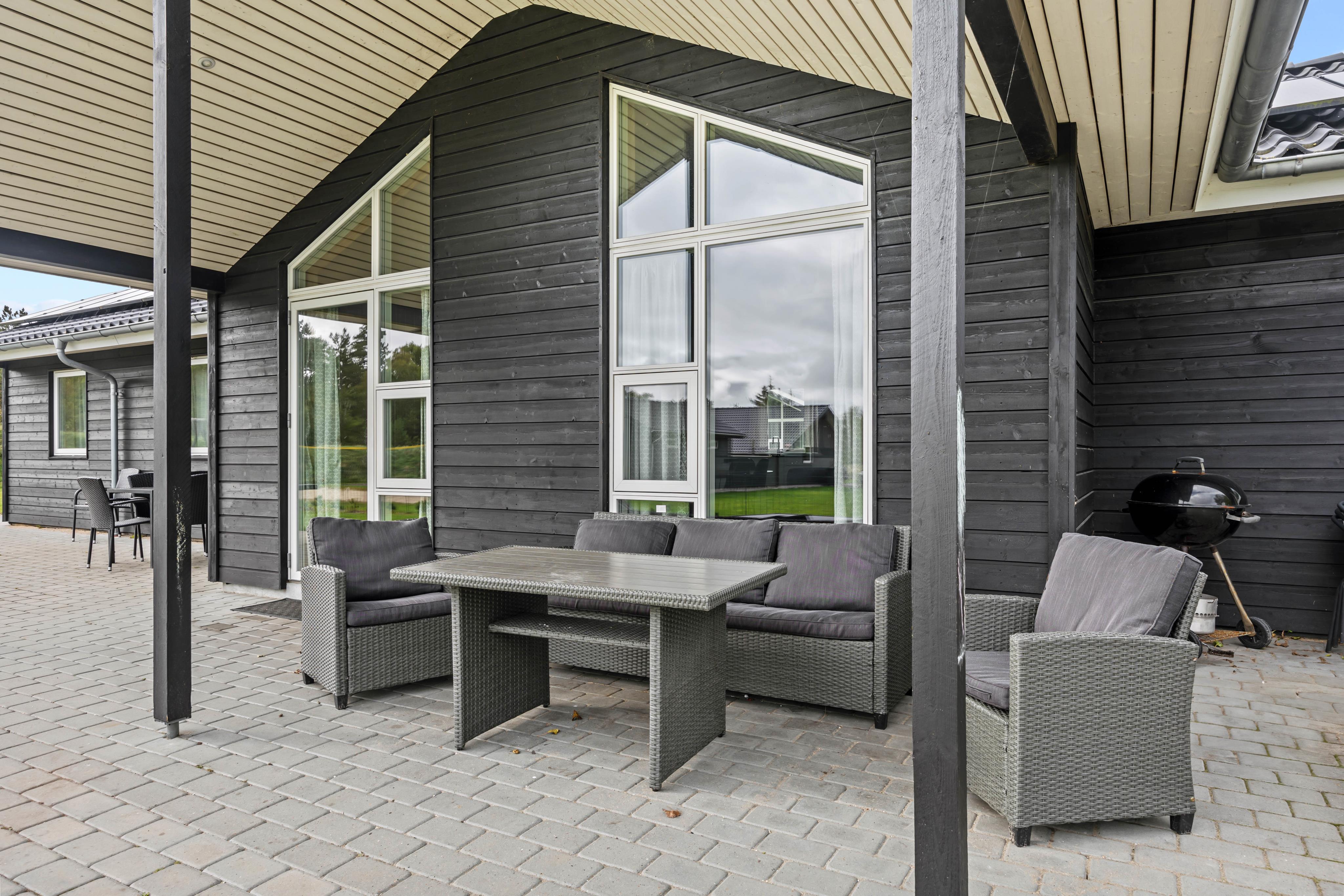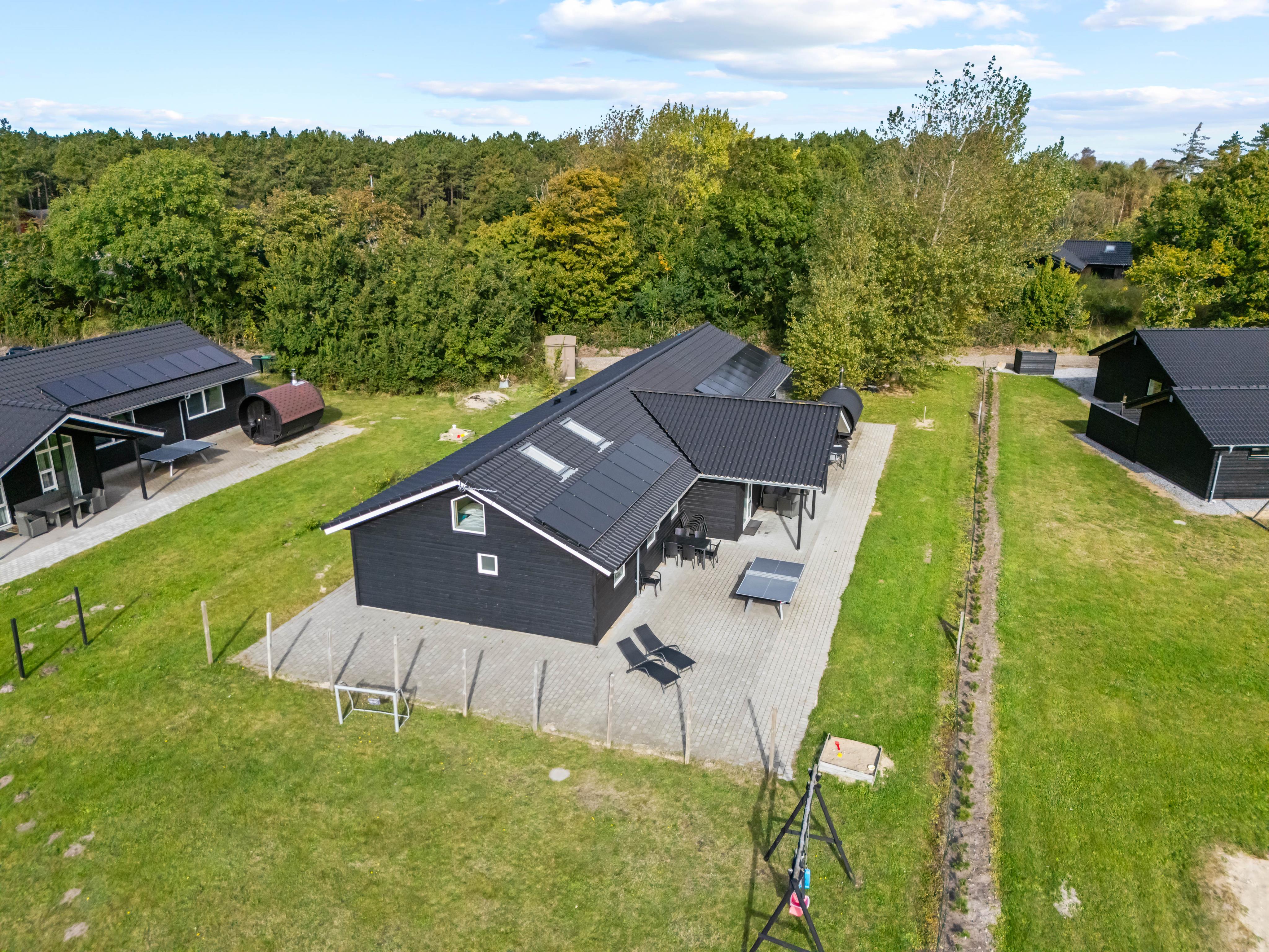 Das Ferienhaus liegt auf einem 1400m² großen Naturgrundstück, das reichlich Platz für Outdoor-Aktivitäten bietet. Eine Schaukel und ein Sandkasten sorgen für strahlende Kinderaugen, während ihr euch auf der offenen oder überdachten Terrasse entspannen könnt. Die Gartenmöbel laden zu einem gemeinsamen Grillabend unter freiem Himmel ein. Für Einkäufe müsst ihr kaum 500 Meter zurücklegen, sodass ihr jederzeit spontan für Nachschub sorgen könnt. Zum Badestrand sind es nur 2,5 Km Luftlinje - ideal für spontane Ausflüge ans Meer. Es gibt im Garten außerdem Fußballtore und Boule.